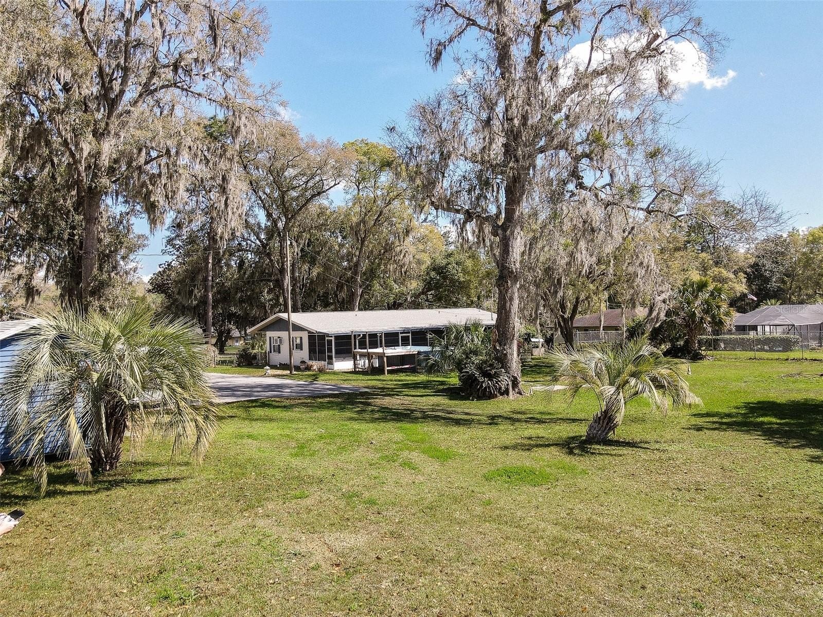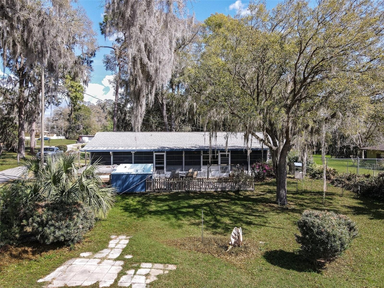 This single-story residence in Belleview, FL offers 1440 sq. ft. of versatile living space on one acre of land with A1 zoning , back yard is completly fenced in . The home boasts three bedrooms, including a large primary bedroom, and two full bathrooms. The layout includes a large living room and dining area, providing ample space for both relaxation and entertainment. The interior is characterized by warm wood flooring throughout much of the house, creating a cohesive and inviting atmosphere. Ceiling fans with decorative light fixtures are featured in several rooms, enhancing both comfort and ambiance. The kitchen, while compact, offers modern appliances and contoured-edge countertops, maximizing functionality in this space. A standout feature is the expansive Lanai, filled with natural light from large windows on three sides. The bathrooms showcase a mix of modern and traditional elements, with one featuring a stylish vanity and tiled walls. Just outside is a relaxing patio area with a large swim spa to relax. The Roof,water heater and well pump were replaced in 2025.The home's neutral color palette, punctuated by occasional warm tones, allows for easy personalization. Built-in storage solutions and closet space are evident throughout, adding to the home's practicality. With its combination of open areas and private spaces, this property offers a comfortable and adaptable living environment. There are 2 sheds and a carport that will fit 3 vehicles. Close to shopping and restaurants but on a private road with only 15 homes in this peaceful development. Schedule your private tour today.