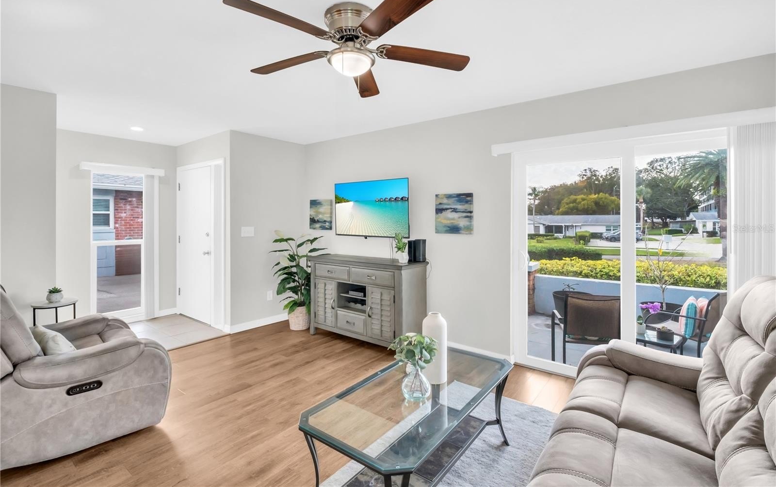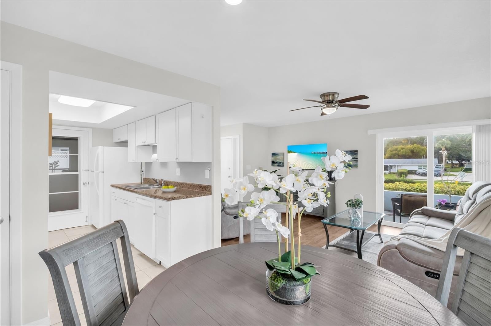 The most ADORABLE Highland Lakes condo with UNBEATBALE VALUE! Beautifully RENOVATED and spacious villa in Palm Harbor’s premier 55+ golf community, Highland Lakes, offering true maintenance-free Florida living. A thoughtfully designed floor plan lives large, enhanced by oversized hurricane-impact windows that flood the home with natural light. Enjoy smooth ceilings (no popcorn), recessed lighting, luxury vinyl plank flooring, and a fully updated kitchen and bath. The spacious living and dining areas are open and versatile. The efficient galley kitchen features wood shaker cabinetry, stone-look countertops, a closet pantry, raised tray ceiling, and newer appliances. The expansive primary bedroom impresses with TWO walk-in closets plus a dedicated dressing/vanity area. Hurricane-impact sliders lead to a private garden patio with privacy walls, while the sunny front patio sits just off the living room—perfect for relaxing or entertaining. Additional storage includes a foyer coat closet and hallway linen closet. The oversized, immaculate garage offers a climate-controlled space with an insulated hurricane-impact door, laundry station with utility sink, and abundant storage—providing flexible BONUS space not included in the square footage. Major improvements since 2017 include: new HVAC and water heater, hurricane-rated dual-pane windows and sliding doors, a fully renovated kitchen, and an updated bathroom with a walk-in shower, glass doors, new vanity, lighting, and fixtures. The reasonable monthly condo fee includes cable, internet, water, sewer, trash, lawn care, exterior pest control, insurance, and building & roof maintenance. Highland Lakes membership conveys with purchase, offering unlimited FREE golf on three private executive courses, tennis, pickleball, bocce, shuffleboard, an active clubhouse with fitness classes and entertainment, and a lakeside lodge on Lake Tarpon with private boat ramp, fishing pier, and community pontoon boats. Additional perks include RV or boat storage and a golf-cart-friendly neighborhood. Ideally located near award-winning beaches, shopping, dining, top medical facilities, sports venues, and international airports. Furniture is negotiable, making this home truly move-in ready and turn-key. If you love “new,” this one is for you—don’t wait!