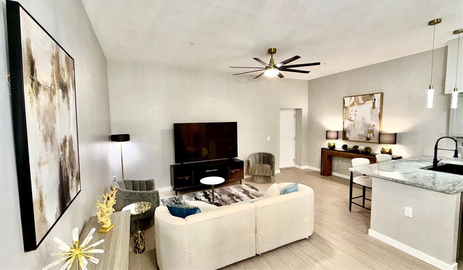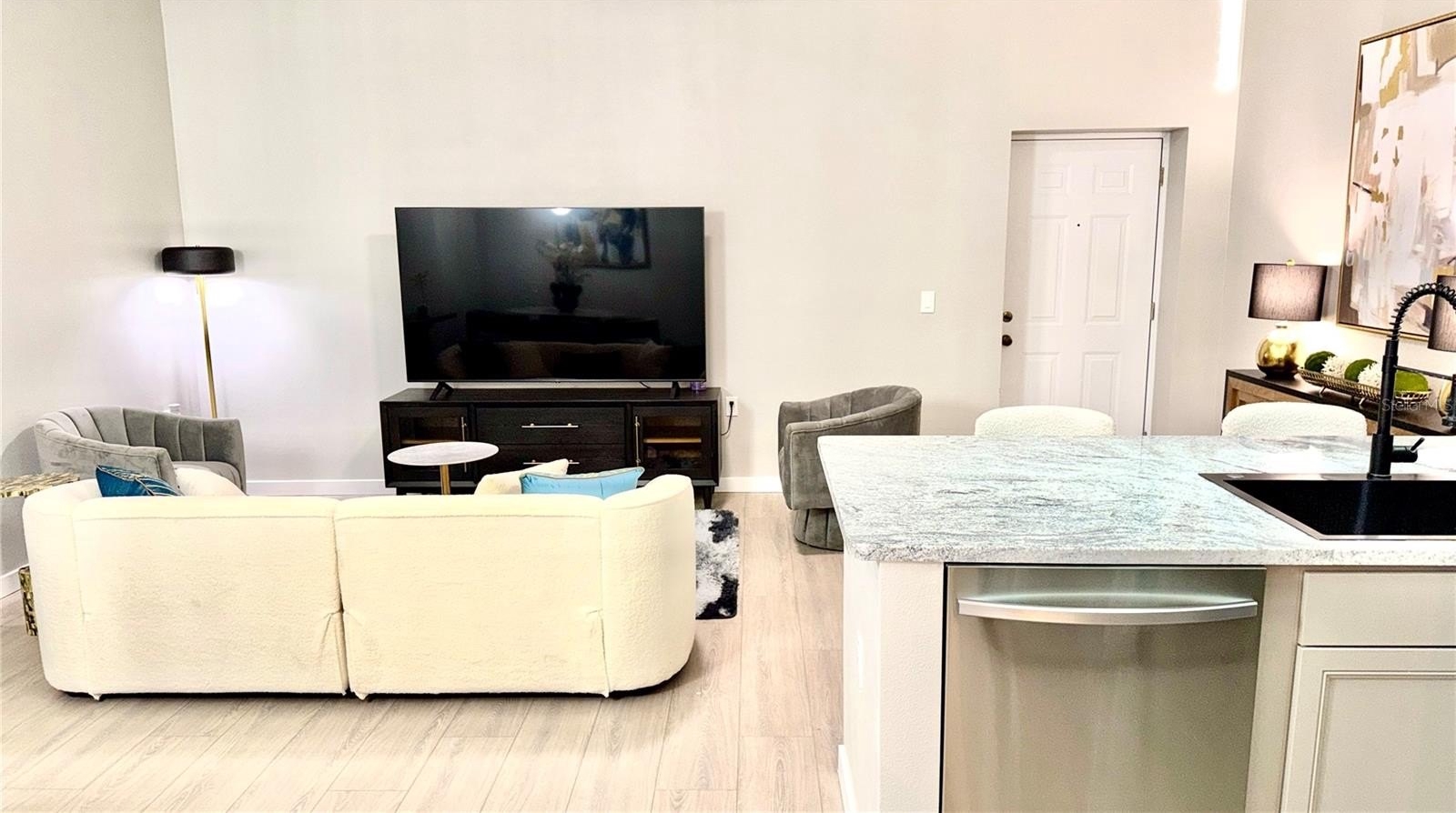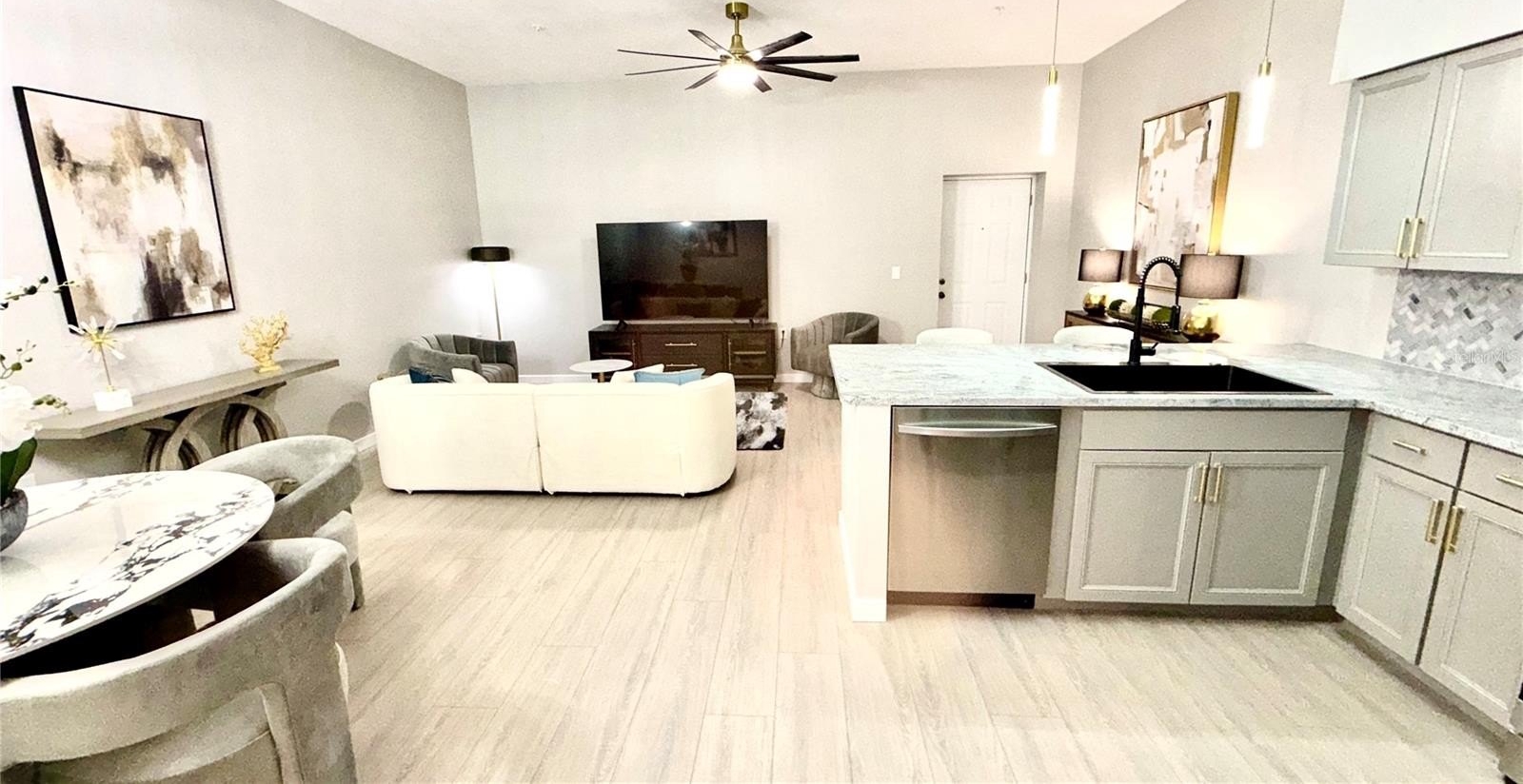 This spacious 875-square-foot condo, one of the larger units, features soaring ceilings and a complete renovation blending modern luxury with historic charm. Nestled in the iconic 1915 St. Petersburg High School building, this Mirror Lake gem boasts brand-new Samsung appliances, a GE washer/dryer, elegant new cabinets, granite counters, and a striking chevron marble backsplash. Both bathrooms have gleaming new cabinets, granite countertops, and fresh marble flooring, complemented by new bathtub tiles. Luxury vinyl floors, crisp paint, and all-new fixtures, blinds, chandeliers, fans, and trim complete the transformation. Just steps from downtown St. Pete, relish easy access to restaurants, USF, museums, theatres, and more. The community also offers a pool and library, where history and modern comfort truly come together. Mirror Lake is out front, with the neighbouring historic Coliseum and the St Petersburg Shuffleboard Club.
