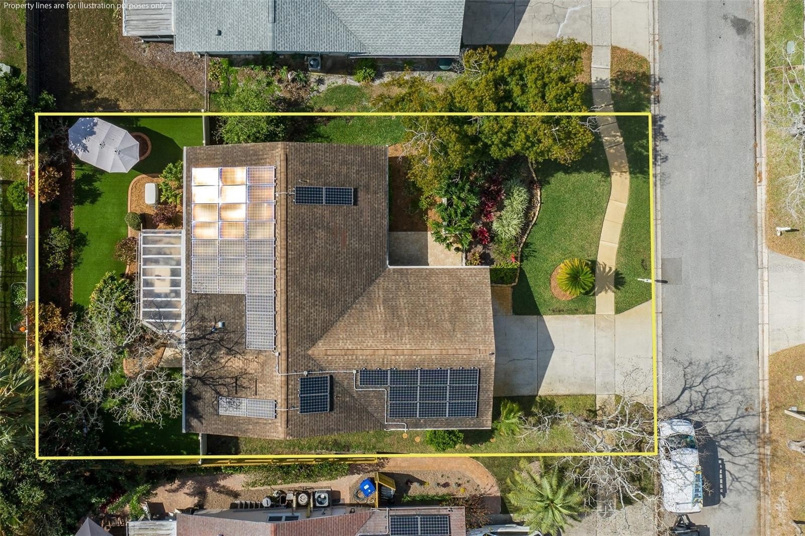Experience the quintessential Florida lifestyle in this meticulously maintained 3-bedroom, 2-bathroom home located in the highly sought-after, golf-cart-friendly district of Dunedin. Perfectly positioned just minutes from the pristine sands of Honeymoon Island and Clearwater Beach, the vibrant energy of Downtown Dunedin, and the scenic Pinellas Trail, this residence offers the perfect blend of city convenience and peaceful tranquility. This home has unmatched peace of mind and was designed for comfort and resilience. You can rest easy knowing the property remained flood-free during recent hurricanes. It is fully equipped with hurricane impact windows throughout and a top-of-the-line whole-house Generac generator, ensuring you stay cool in the AC and entertained while the neighborhood waits for the grid to return. Say goodbye to high utility bills. This home features a robust solar panel system, bringing your power costs down to approximately $36 per month year-round. Additionally, the lush front landscaping is serviced by a sprinkler system on a private well, providing significant savings on your water bill. The functional split plan allows everyone to enjoy maximum privacy with a layout that separates the primary suite from the guest bedrooms. The two distinct living spaces offer the flexibility for a formal sitting room and a cozy family media hub. The kitchen offers ample cabinet space and a seamless flow overlooking the dining area and family room-perfect for entertaining. The primary suite features generous closet space and a completely remodeled en-suite bath boasting elegant granite counters and a modern walk-in shower. The outdoor space is a true showstopper. The backyard features a custom pergola with remote-controlled screens, allowing you to toggle between an open-air patio and a screened-in lanai at the touch of a button. The fully fenced, maintenance-free yard is outfitted with pet-friendly turf, providing a safe, "no-mow" play zone for kids and furry friends alike.