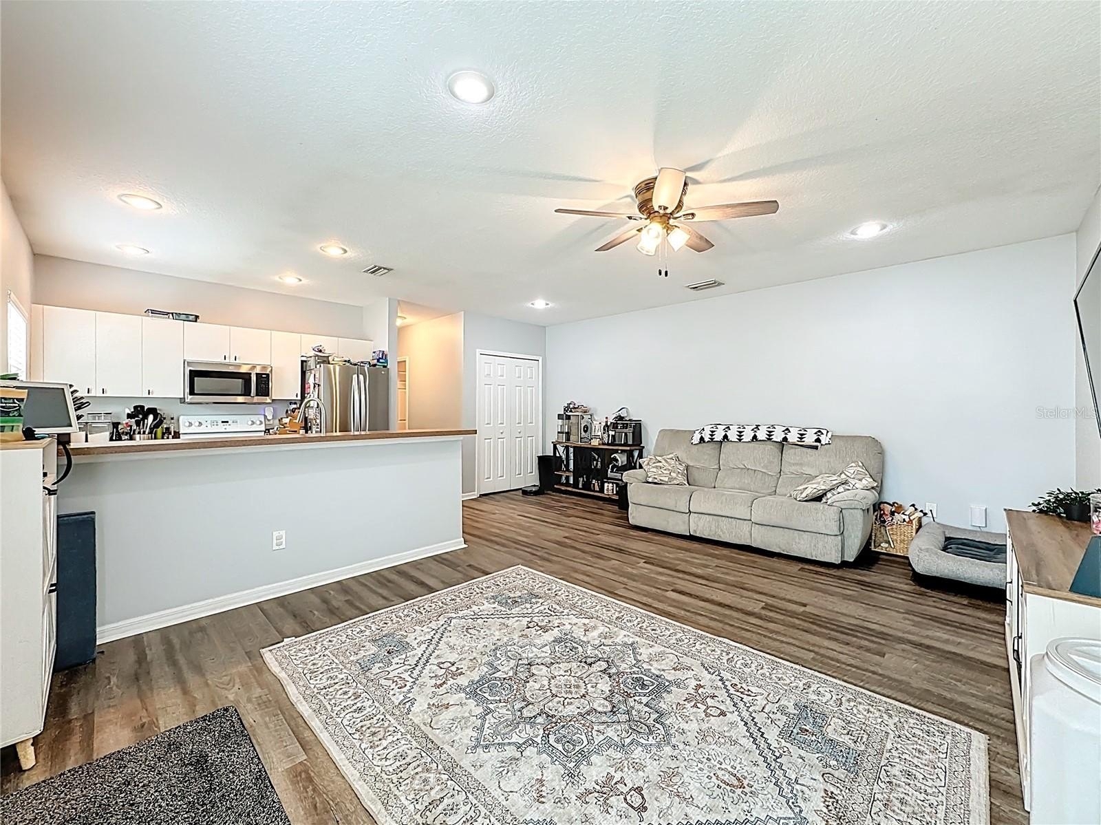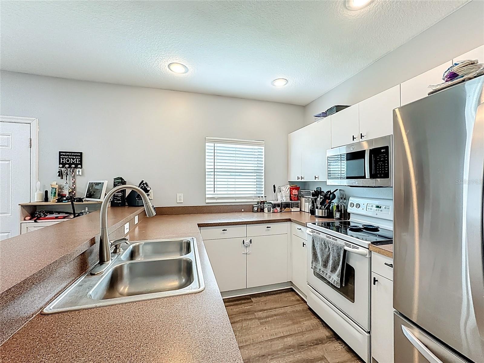 Enjoy total peace of mind with a brand-new 2024 roof and 2024 high-impact windows, both featuring transferable warranties. The interior shines with new 2025 flooring throughout and a dedicated laundry room with 2025 custom cabinetry. While the kitchen and baths retain their original, impeccably clean cabinetry and countertops, they are complemented by a 2024 stainless appliance package and 2025 washer/dryer.