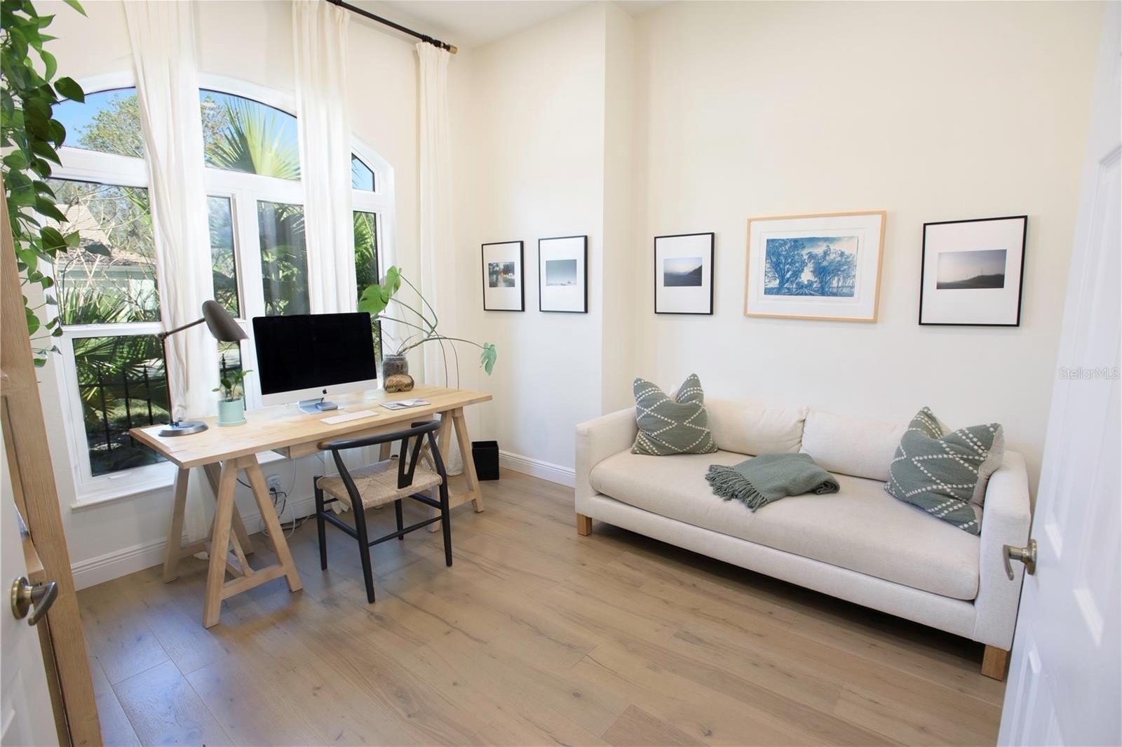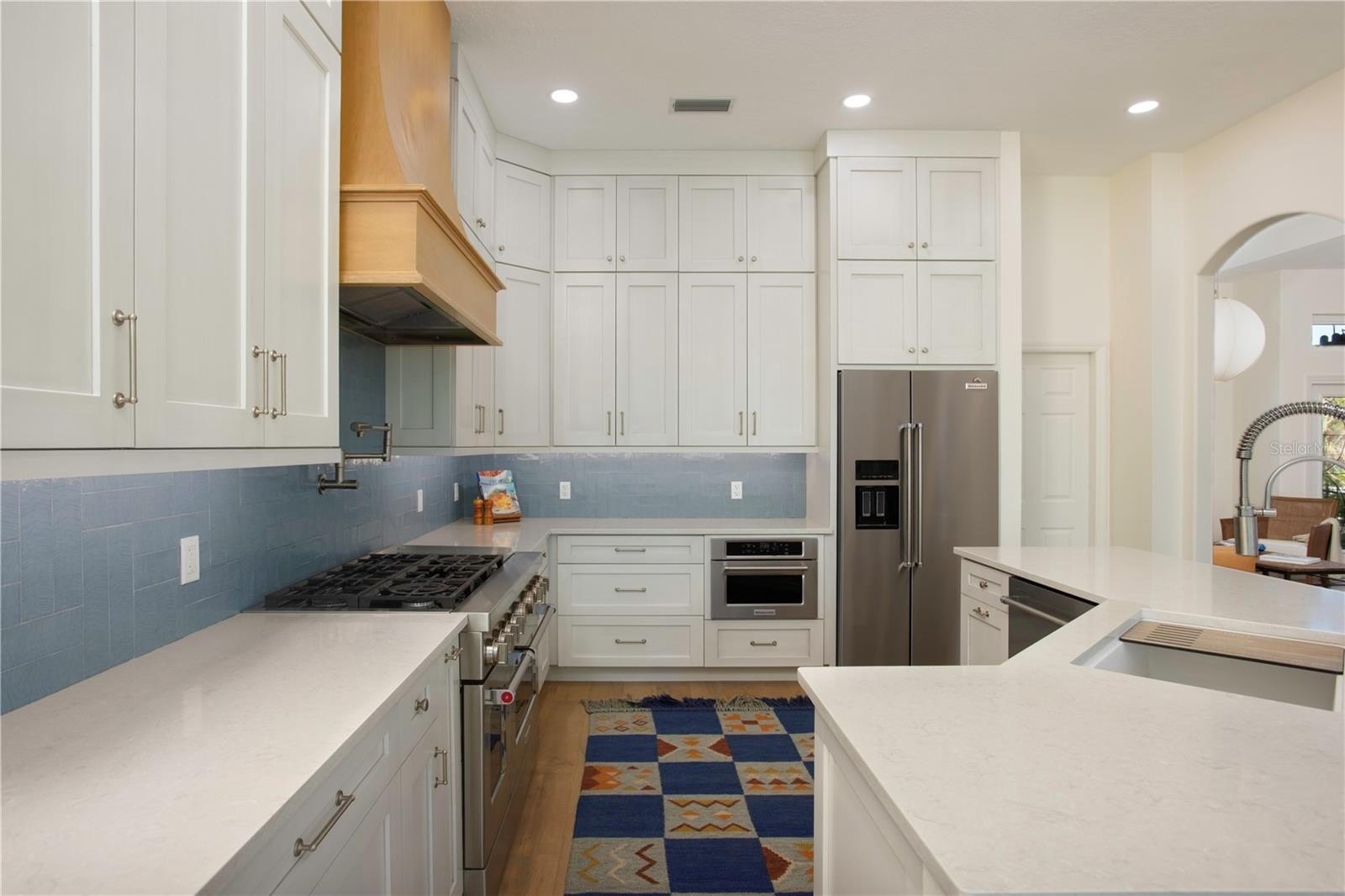 Embrace the best of Florida living in this beautifully renovated Griffon Woods home in Longwood Run, offering over 2,700 square feet of thoughtfully planned space. Every main room opens to the expansive covered lanai with heated pool—perfect for relaxing or entertaining outdoors. The lanai features a pool cage with custom lighting. A bonus extra paved area just outside the screened lanai, ideal for a cozy fire pit, grilling, or simply sitting and watching all the Florida wildlife. Durable engineered hardwood floors flow throughout the entire home, while shellstone tile in the bathrooms and lanai creates a cohesive, sophisticated look. This home features 3 spacious bedrooms, 2 1/2 baths, and a flexible den that can easily be converted into a fourth bedroom. A culinary kitchen featuring a 48” pro-range perfect for any home chef. Walls of windows bathe the interior in natural light. This home was recently updated with impact-rated windows, 3 massive sliding glass doors, a double front door, and a garage door, adding peace of mind. Enjoy tranquil pond and canal views, lush landscaping, a fenced backyard for pets, and landscape lighting that enhances curb appeal. With its prime location near the beach, golf courses, pickleball or tennis at Longwood Run Park, and shopping at UTC, this exceptional home puts you in the heart of everything Sarasota has to offer. Don't miss your chance to make it yours!