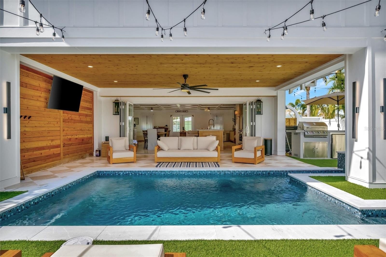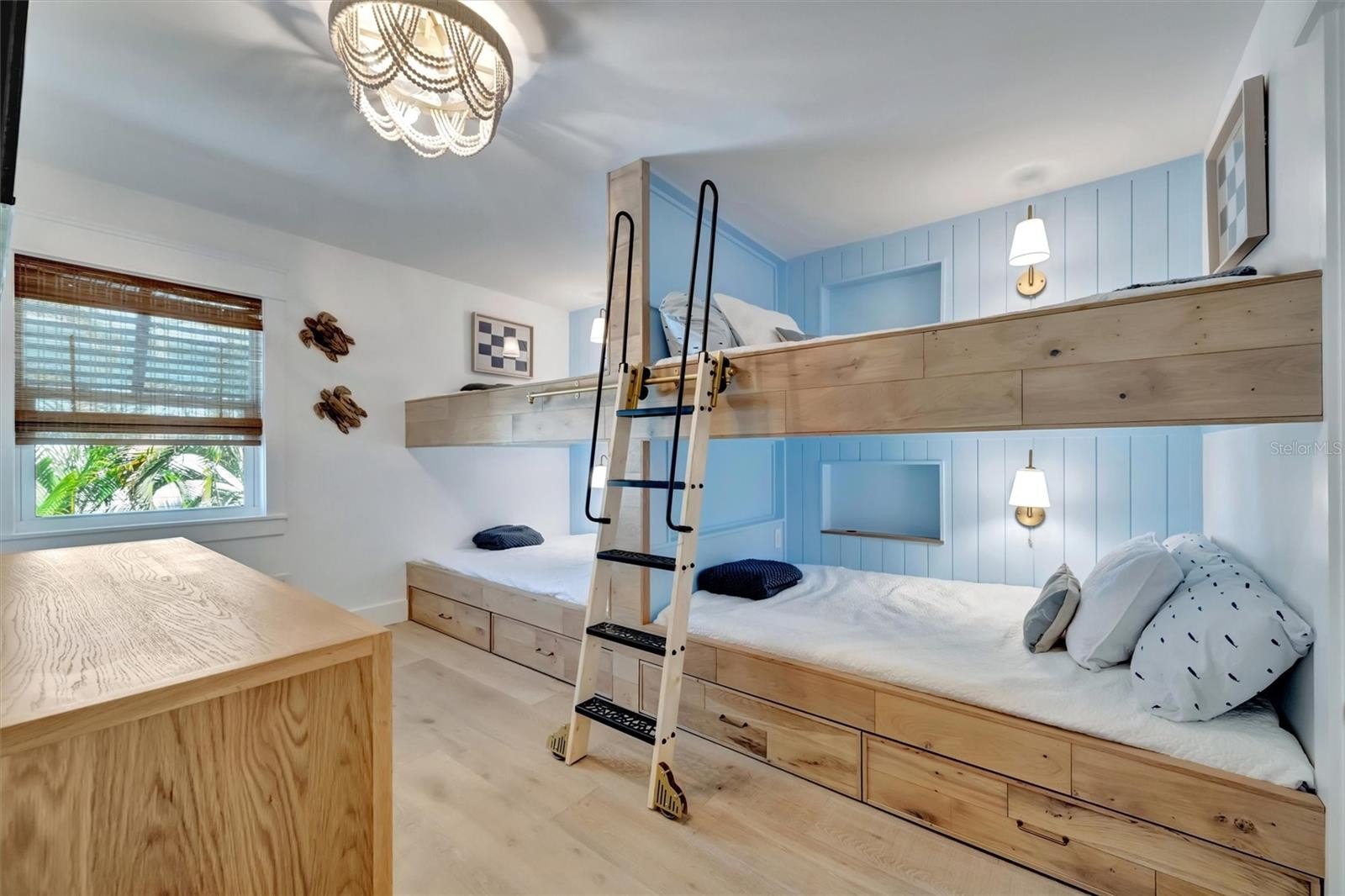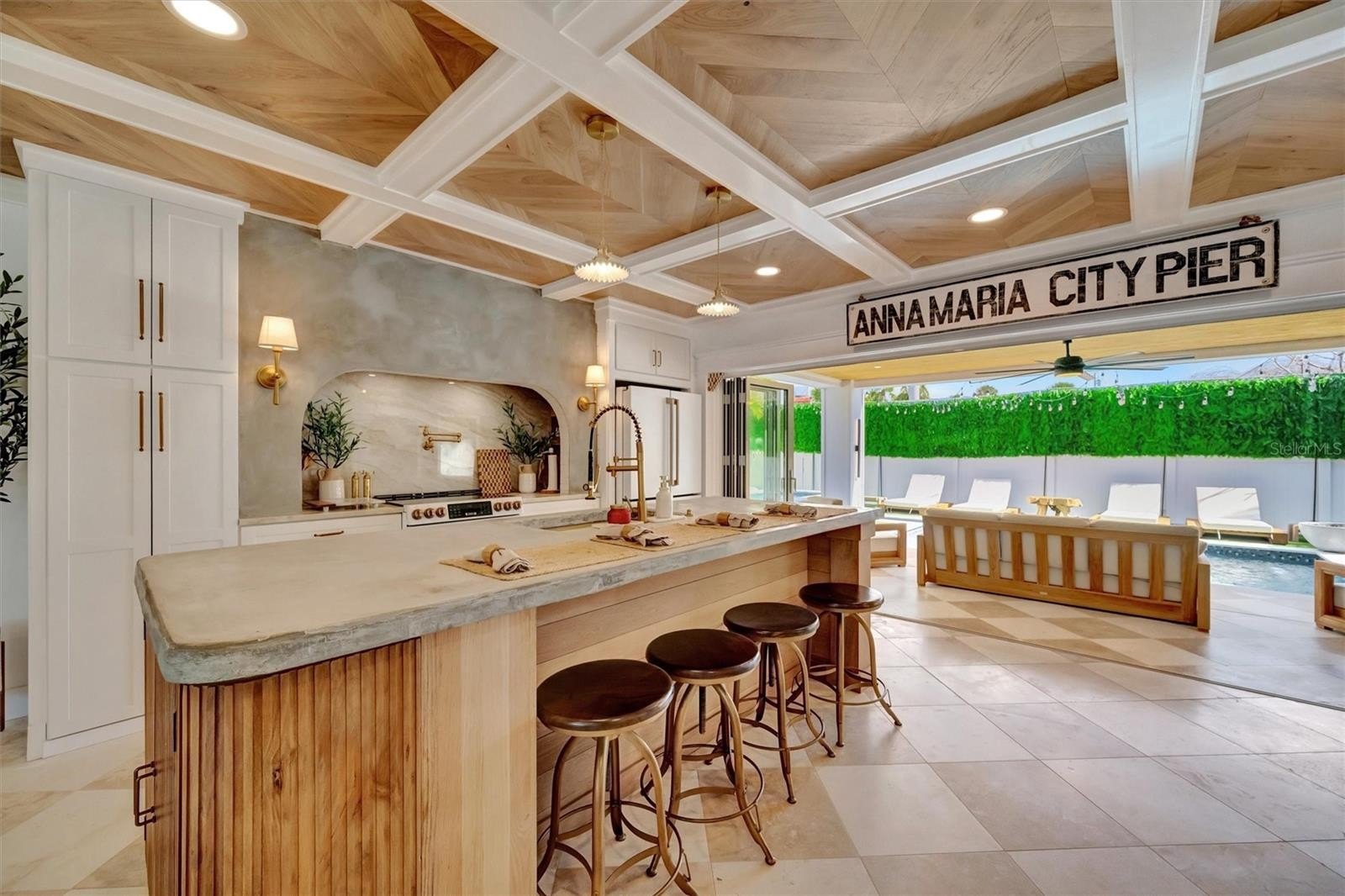 Welcome to 117 81st Street in Holmes Beach, a custom-designed coastal retreat steps to the beach that has been completely renovated inside and out, offering the perfect blend of modern luxury and effortless island living. This beautifully updated 4-bedroom, 3.5-bath home is being sold turnkey furnished, making it move-in ready or immediately available as a high-performing rental investment. The first-floor open layout is designed for both entertaining and everyday comfort, featuring a spacious living area that flows seamlessly into the gourmet kitchen and dining space. The kitchen is a true centerpiece of the home, showcasing a large island with custom concrete countertops, distinctive range accents, and ample space for gathering. Adjacent to the kitchen, the dining room features a built-in bar with open shelving, creating the perfect setting for hosting guests or enjoying relaxed island evenings. A conveniently located half bath is also situated on the main living level. All four bedrooms are located on the upper level, offering privacy and a well-designed layout for families and guests. The spacious primary suite serves as a relaxing retreat and features a beautifully designed bathroom with an oversized walk-in shower. A fun and functional bunk room with its own en suite bathroom provides the perfect space for kids or visiting guests, while two additional bedrooms share a Jack-and-Jill bathroom, creating a comfortable and efficient layout for larger groups. Step outside to your private backyard oasis featuring a brand-new heated pool and spa, a covered patio with warm wood ceilings, outdoor grill area, multiple lounge spaces, and two inviting fire pits—perfect for entertaining or unwinding after a day at the beach. Additional upgrades include a brand-new metal roof, along with extensive renovations throughout the home that make this property feel completely refreshed and modern. Located just steps from the white sand beaches of Anna Maria Island, the home is also conveniently close to the island’s best restaurants, shops, and local attractions. Whether you’re looking for a high-revenue producing short-term rental, a primary residence, or a private Florida retreat, this exceptional property offers incredible versatility in one of the island’s most desirable locations.