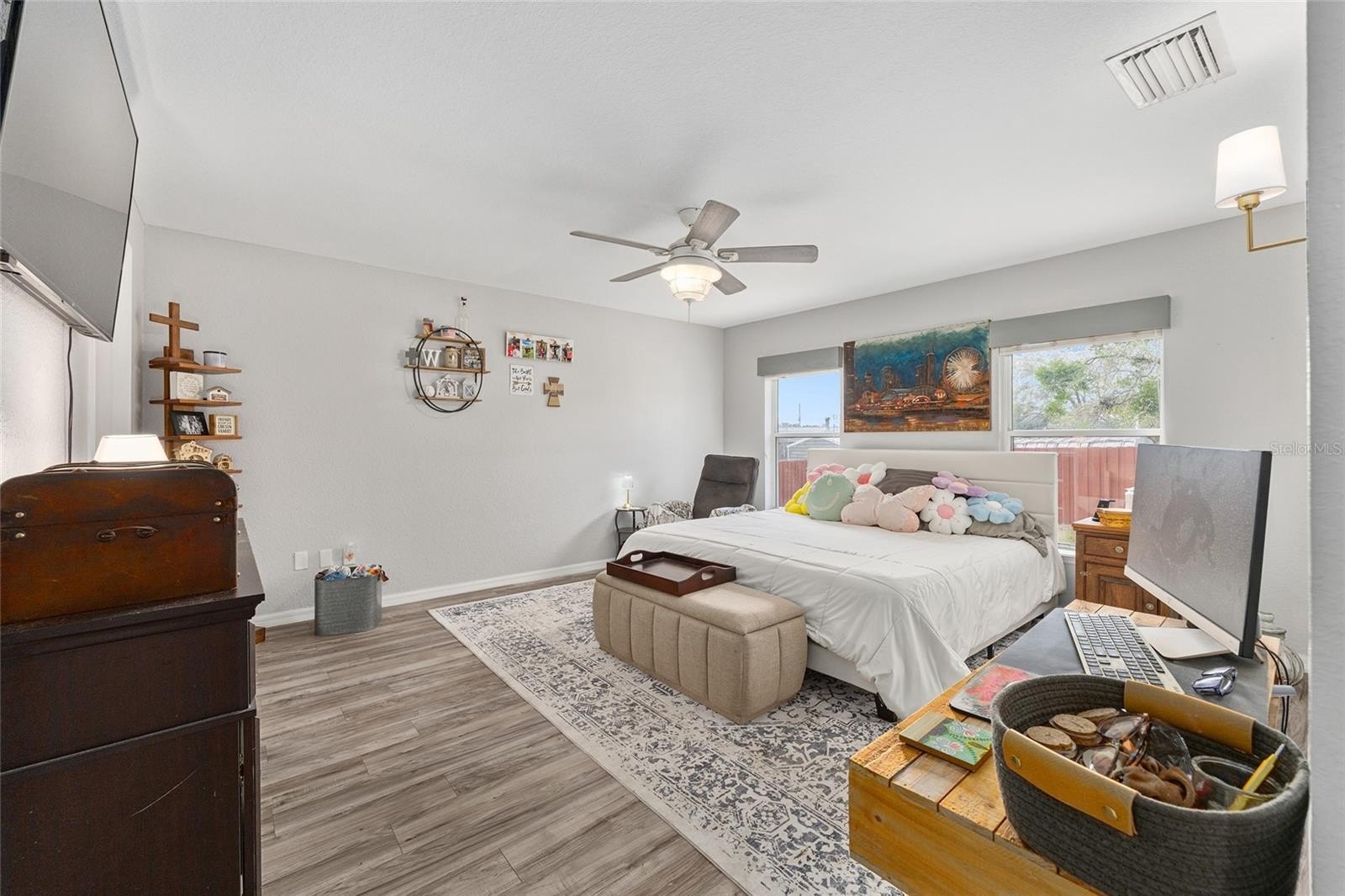 Three-bedroom, two-bath, two-car garage home built in 2006 offering 1,594 sq ft of living space with very large rooms throughout—because nobody ever said, “I wish this room was smaller.” The home features vinyl plank flooring throughout with tile in the kitchen and bathrooms, stainless steel appliances, a spacious primary suite with a large walk-in closet, and inside utilities with extra shelving so everything actually has a place.