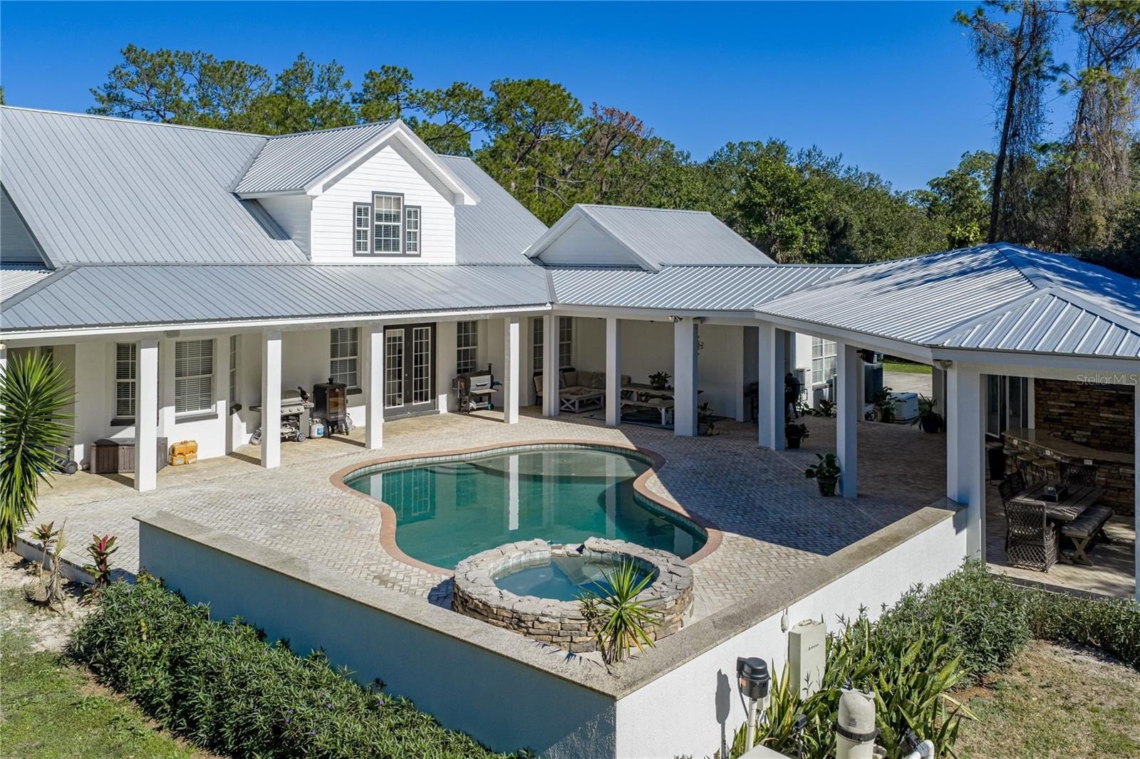 Welcome to 209 Frenchmans Creek Way, a rare find in one of Winter Havens most desirable neighborhoods. Set on over 2.6 acres in an exclusive and gated neighborhood, this exceptional estate offers the perfect blend of refined living and outdoor freedom ready for your hosting and equestrian adventures. This expansive residence features 5 generously sized bedrooms and 4 bathrooms, with over 4,000 square feet of thoughtfully designed living space. The open-concept layout is ideal for entertaining, showcasing a spacious great room with a fireplace, abundant natural light, and seamless flow into the heart of the home, the chef’s kitchen. Complete with ample counter space, extensive cabinetry, and room for gatherings, the kitchen is perfectly suited for both everyday living and hosting. Step outside to your private resort-style oasis, where a sparkling pool invites year-round enjoyment. Whether relaxing poolside, hosting summer gatherings, or enjoying peaceful evenings under the stars, the outdoor space offers endless possibilities and total privacy. One of the home’s standout features is the dedicated man cave, including a golf simulator. This flexible space adds incredible value and personality to the home. Equestrian and hobby enthusiasts will appreciate the on-site horse barn, complete with stalls and room to roam, an increasingly rare feature in such a desirable location. Additional detached structures include a space for guest suite, studio, or workshop, making this property ideal for multi-generational living or creative use. A 780 sq ft apartment/loft is located above the horse barn. Surrounded by mature oak trees and lush landscaping, the estate delivers a tranquil, country feel while remaining conveniently close to shopping, dining, and major roadways. This is more than a home, it’s a lifestyle. Rarely does a property of this level of space, amenities, and flexibility come available in Winter Haven. Schedule your private showing today!