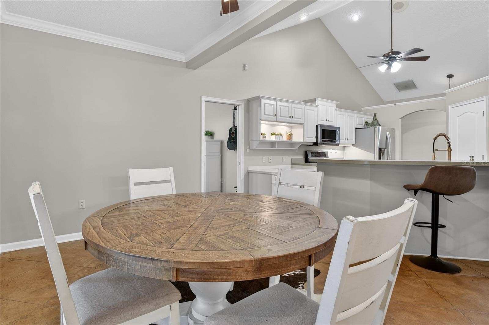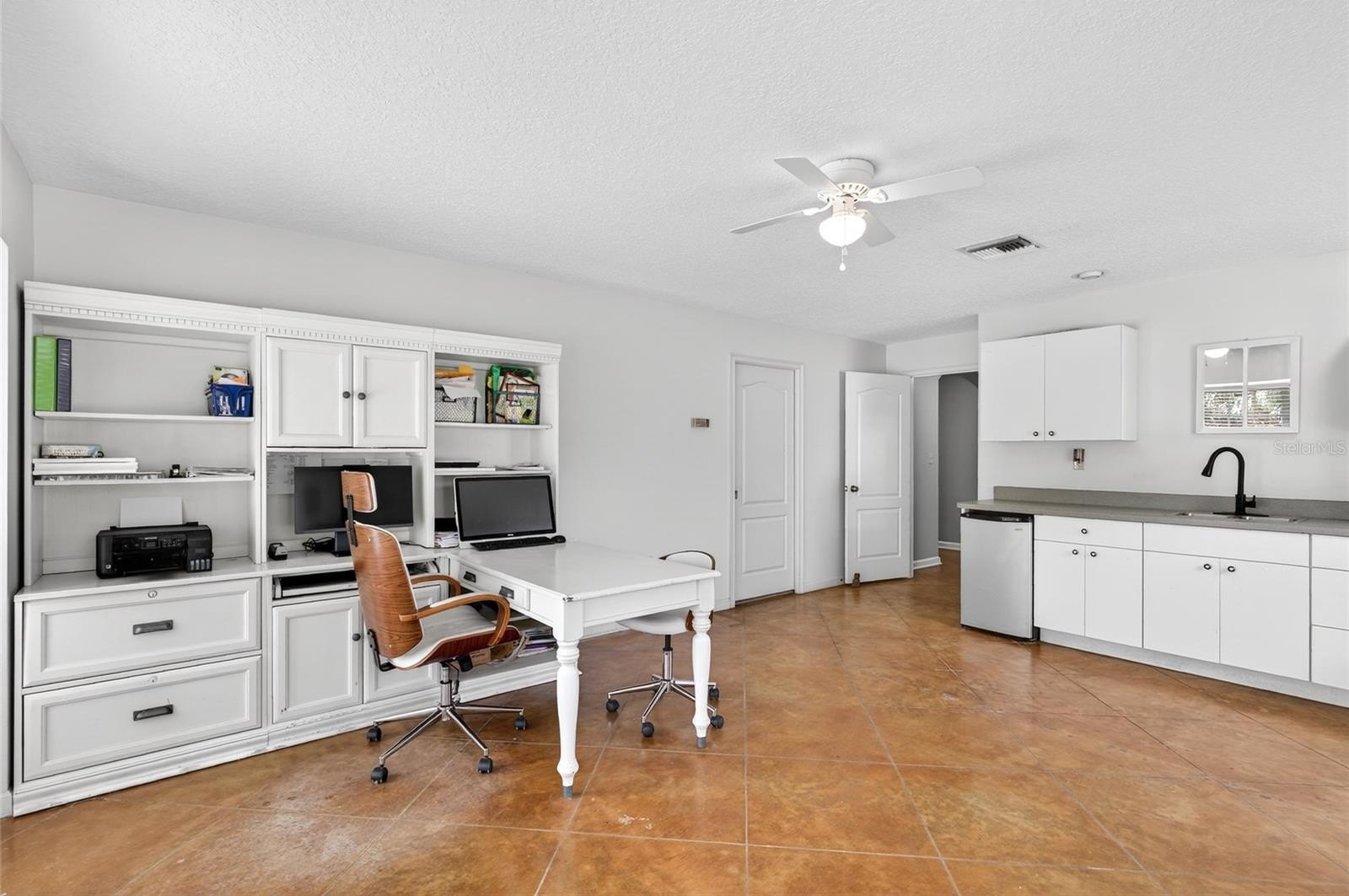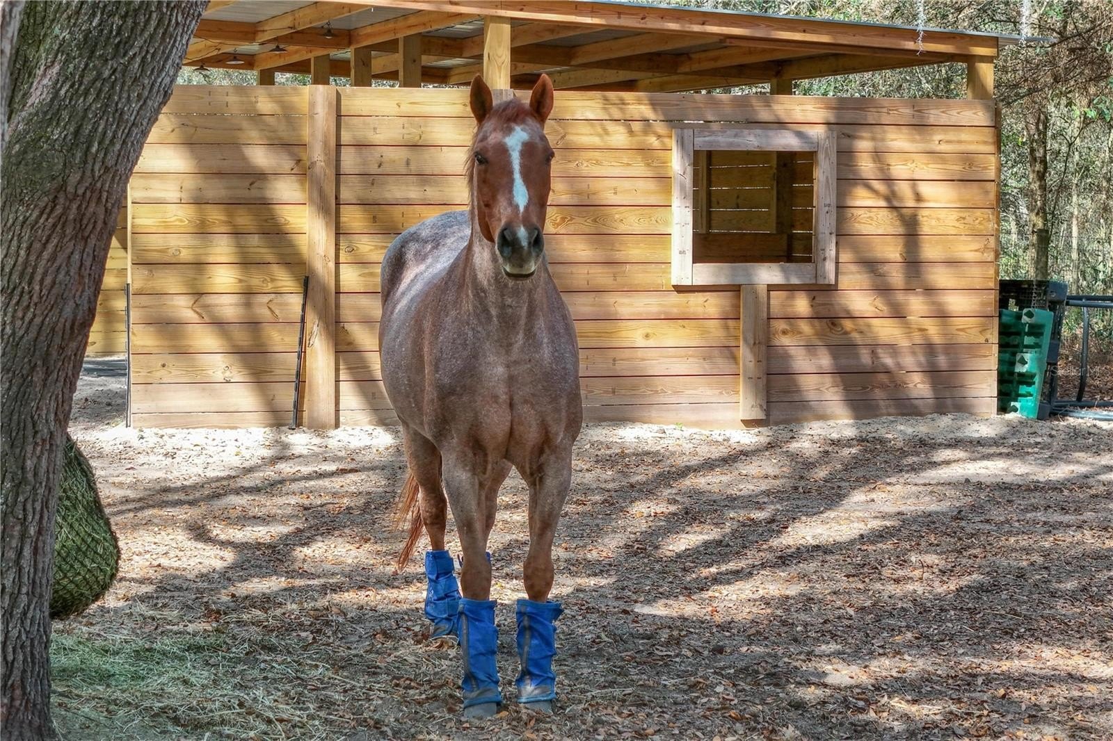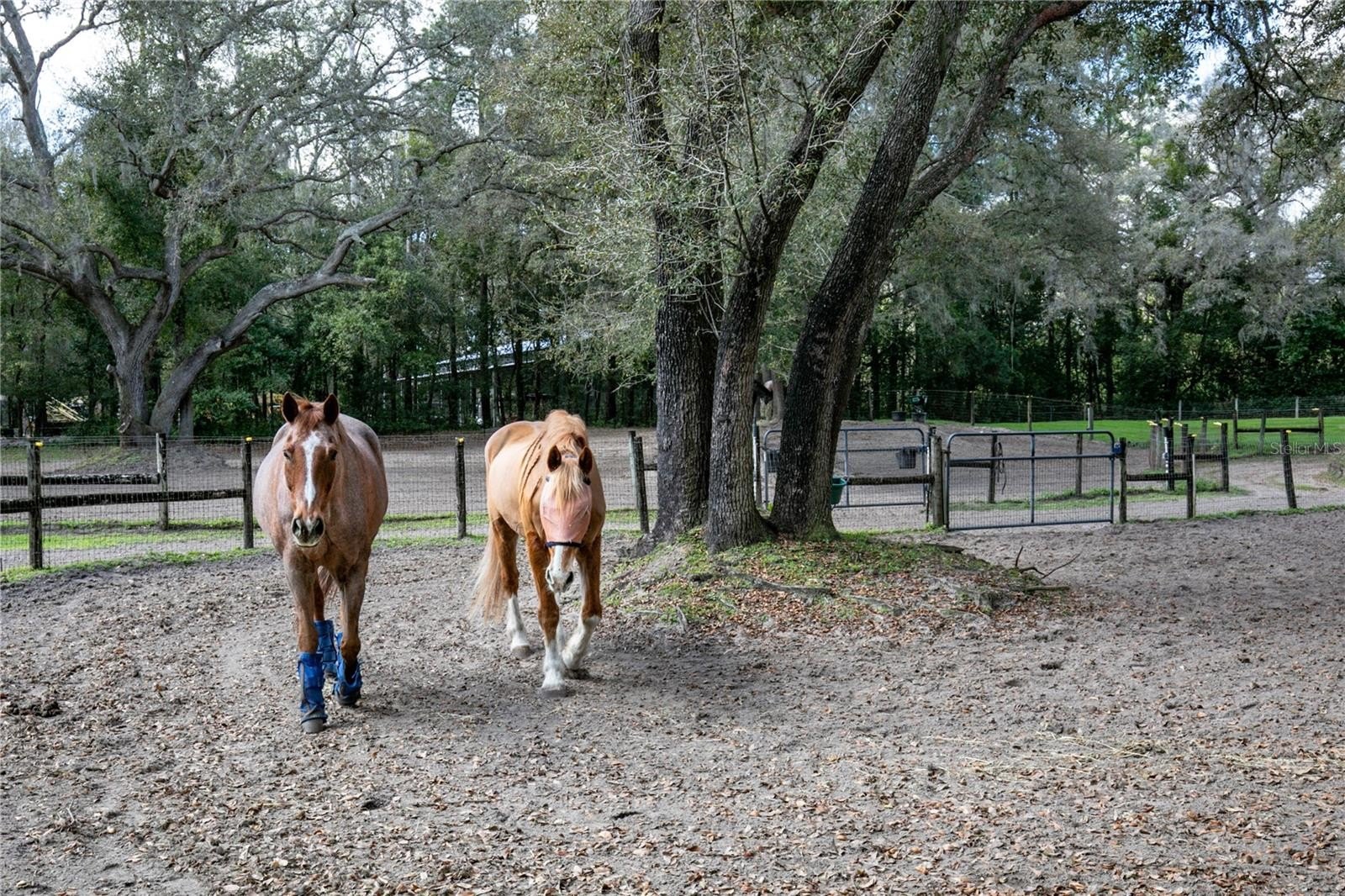 The riding facilities are equally impressive. A full-size 100' x 200' laser-leveled competition dressage arena with fiber footing and irrigation provides a consistent surface ideal for schooling and training. A viewing stand with additional deck space overlooks the arena, offering a comfortable place to observe riding activity. Five shady paddocks with irrigation and no-climb fencing provide generous turnout space. A small trail loop winds through the back of the property, and designated areas are in place for manure composting and disposal. Additional improvements include a pole barn with 14-foot ceilings and adjacent parking pad providing excellent space for trailers, tractors, or equipment. The detached 50' x 25' garage/workshop features two roll-up doors and multiple power options including 120V 30-amp, 240V 50-amp, and 125V 30-amp service. Accessed through two electric gates, the residence offers privacy and a welcoming sense of arrival. The main home features four bedrooms, three bathrooms, and a dedicated office, along with a private one-bedroom, one-bath in-law suite with separate entrance, living room, and kitchenette. Stamped concrete floors run throughout the main living areas and are complemented by abundant natural light. The living room features a gas fireplace that creates a warm focal point for gathering. A spacious family room with built-in bench storage offers flexible space ideal for a media room, exercise area, or additional living space. The primary suite includes a walk-in closet and ensuite bath with garden tub. Bedrooms two and three share a Jack-and-Jill bathroom, while bedroom four is located near an additional full hallway bath. Outdoor living spaces include a raised garden area and a covered patio overlooking a tranquil goldfish pond that leads to the swimming pool, creating a peaceful setting for relaxing or entertaining. Located in an area known for its equestrian lifestyle, the property offers convenient access to riding trails in nearby Seminole State Forest and Ocala National Forest. It is also within comfortable driving distance of popular show grounds including Clarcona Horse Park, Grand Oaks, and the Florida Horse Park. Shopping, dining, and everyday conveniences are just minutes away, while Ocala, Orlando, area airports, and Florida’s east coast beaches remain easily accessible.