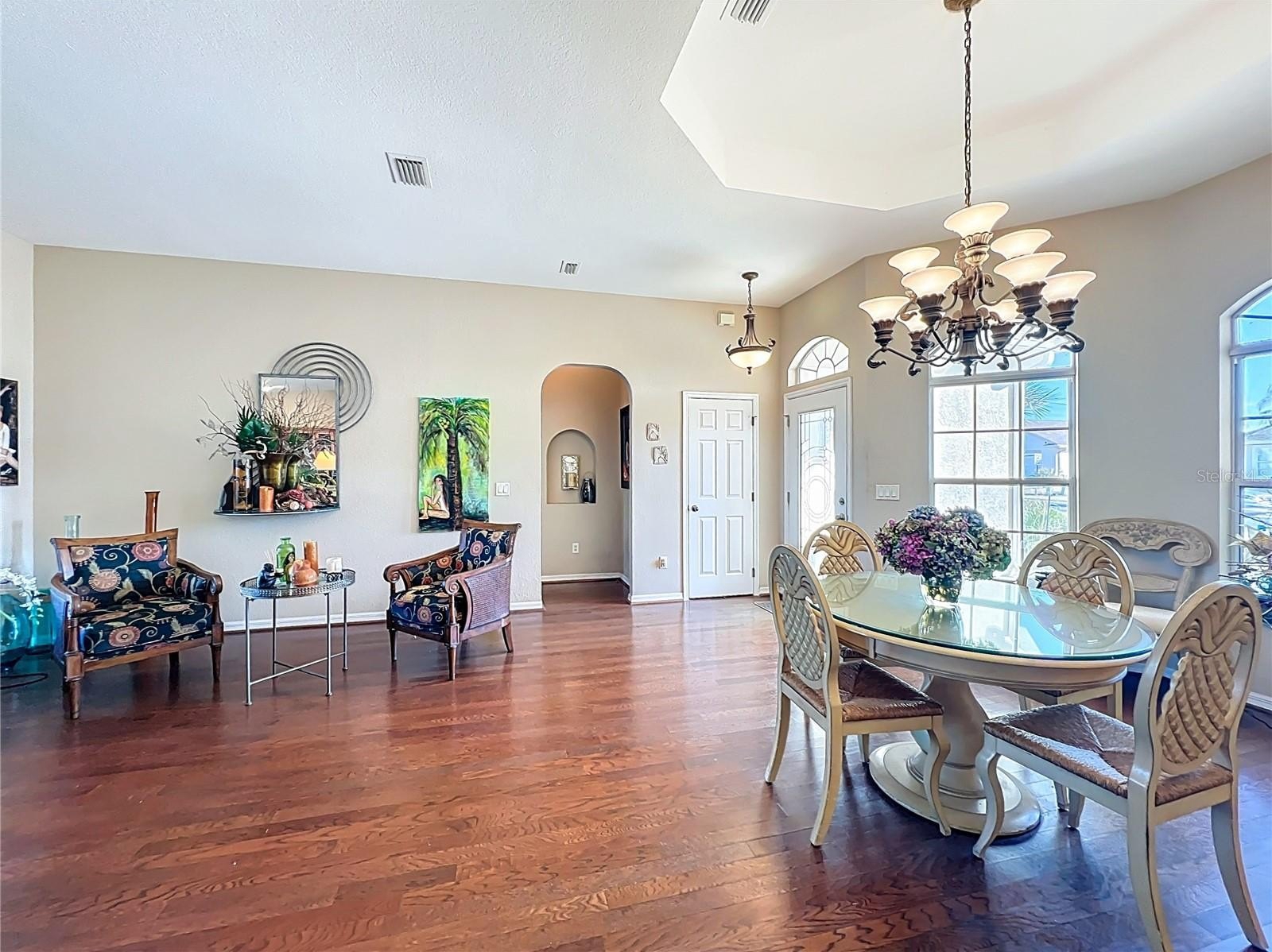 Step inside this 3-bedroom, 2-bath 2,031 square foot home in the premier Stonecrest 55+ gated golf community situated adjacent to The Villages. Designed with an open concept with plenty of room to entertain, this home boasts high ceilings, making the large kitchen and family room feel effortlessly inviting. The highlight of this home is the expansive screened-in pool area. This large lanai offers abundant space for lounging, dining, and entertaining guests. Best of all, it provides a picturesque, private view of peaceful pasture land, ensuring a quiet and beautiful backdrop for every sunset. Unwind in your spacious primary bedroom with access to your private pool, featuring a large bath including dual vanities, soaking tub, walk-in shower, and water closet. The garage includes space for your golf cart giving you quick access to the golf course, restaurant, pools, club house, and stores & restaurants.