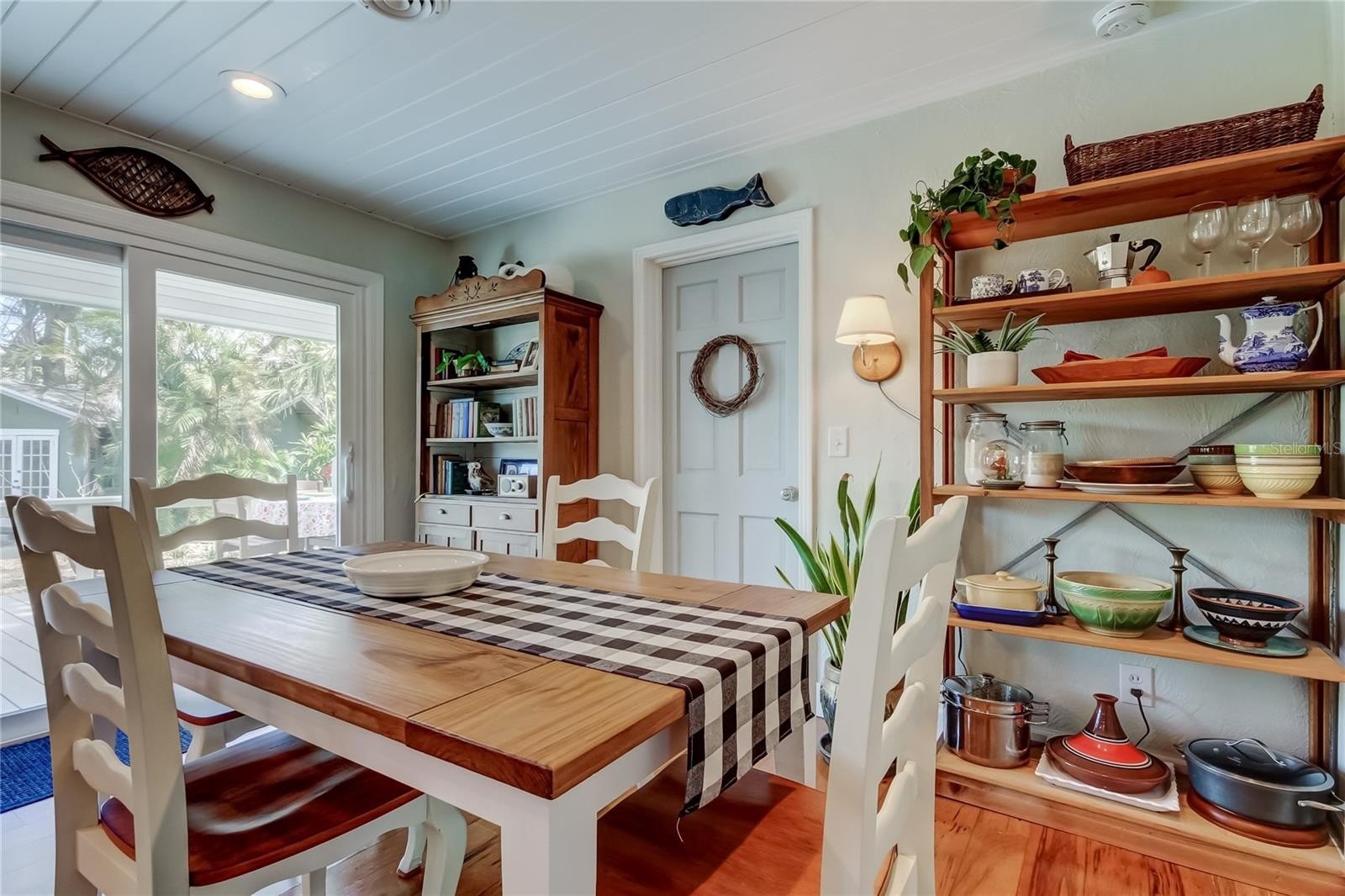 At the center of the home sits a charming kitchen that perfectly captures the Dunedin vibe. The light blue cabinetry paired with black granite countertops creates a cheerful, coastal feel while still offering a clean and classic look. It is the kind of kitchen that naturally becomes the gathering spot for conversation, coffee, and casual dinners with friends.