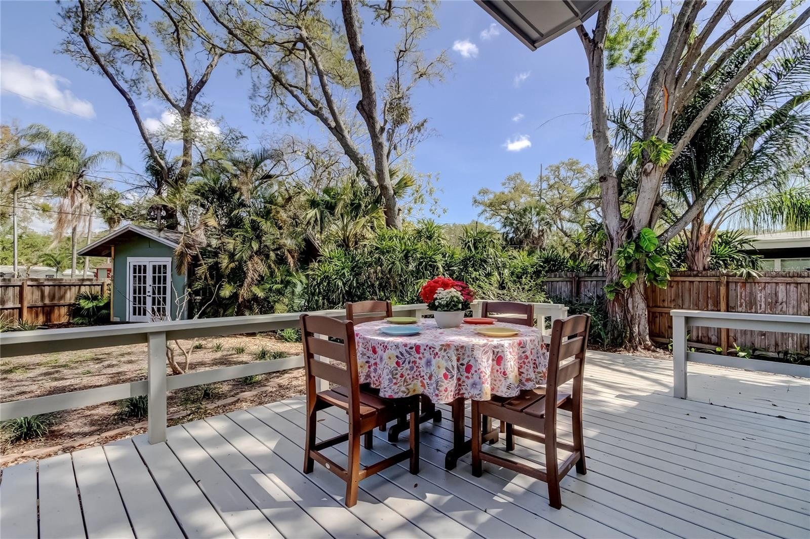 Tucked toward the back of the yard is a separate shed full of potential. With a little imagination it could become a cozy art studio, yoga retreat, workshop, or private man cave.