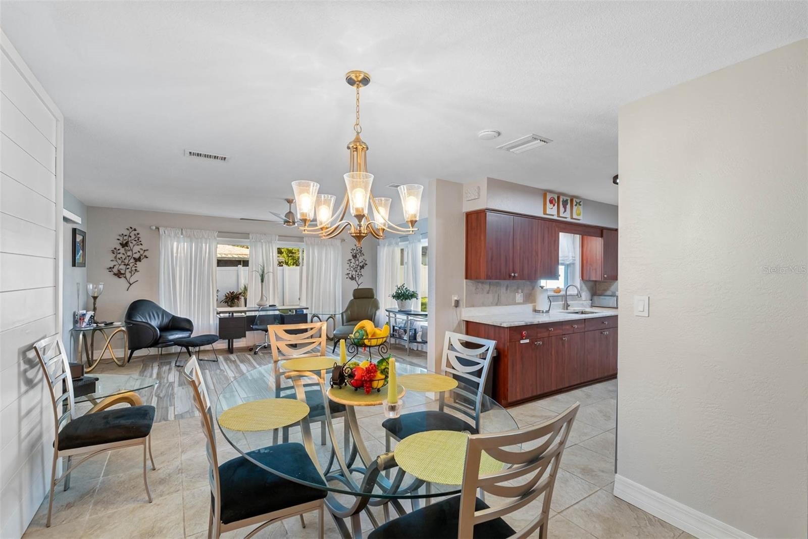 Additional upgrades include a new garage door and opener and a whole-house water filtration system. Major updates include new TRANE A/C and roof (2018), hurricane-rated windows (2022), new breaker box (2022), and all new appliances (2023). Enjoy Florida living just minutes from the beach, shopping, dining, and everything the Gulf Coast has to offer. Dinning Room Chandelier will not convey.