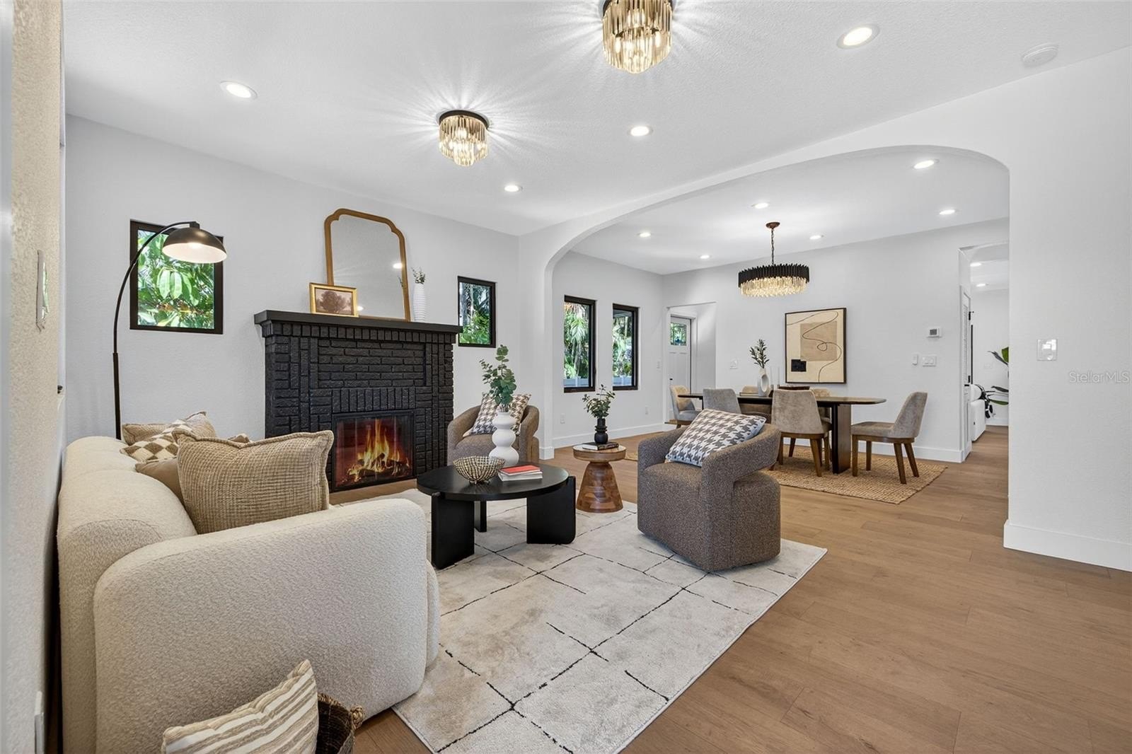 Nestled in the heart of Historic Old Northeast in flood zone X and NON evacuation zone! This beautifully renovated 1925 colonial seamlessly blends historic charm with modern luxury while maximizing every square foot of living space. Over 2500 square feet of refined luxury living in one of the most beloved neighborhoods. Featuring 4 bedrooms, 4 bathrooms, PLUS a loft flex space for an office/play room or craft space. With its inviting layout, living, dining and family rooms -- this picture perfect renovated home is a rare find. Imagine hosting holidays and family photos on the grand front porch! Greet your guests at your truly unique front porch or invite them to the back deck for a beverage in your low maintenance back yard -- already paved with room for a pool! A stunning fireplace enhanced the home's warmth and character, while honey hued engineered hard wood floors sing in the homes natural light. The chef’s kitchen boasts an island, custom cabinetry, new appliances, and ample built-in storage, perfect for entertaining. A spacious primary suite with its own fireplace awaits with a walk-in closet and an ensuite bath featuring dual vanity, walk in shower and soaking tub. Park in the detached garage from your alley-access. In addition to the designer interior finishes, additional updates include permitted home renovations 2025, HVAC 2023, and Roof 2021. An easy stroll to the waterfront or to the vibrant downtown St. Petersburg restaurants, dining and state of the art pier. Truly a jewel of Old Northeast--schedule a private showing today!