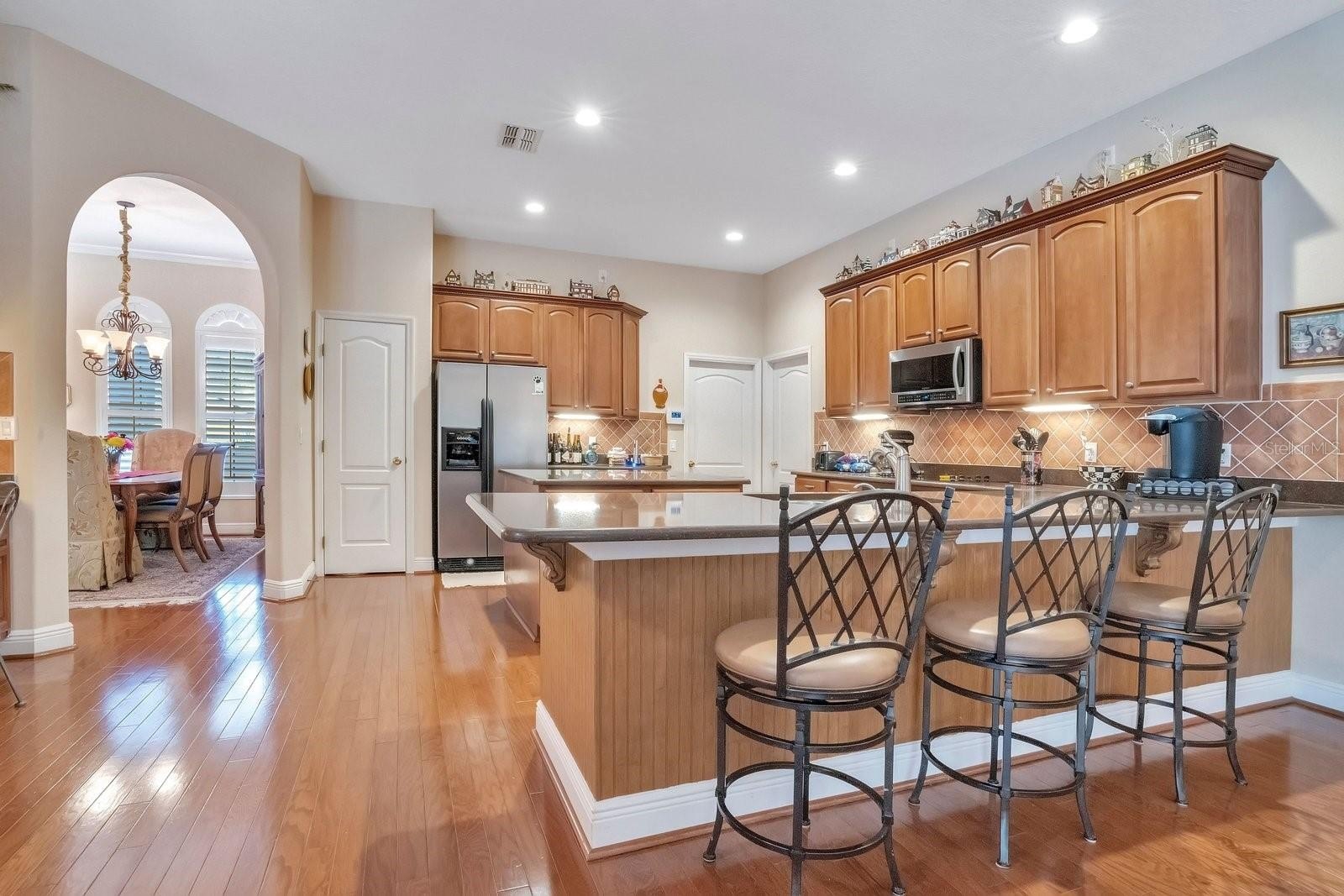 Transitioning to the outdoors, the home transforms into a premier venue for leisure and entertainment. The oversized lanai, adorned with high-quality pavers, houses a complete outdoor cooking area and a pristine pool, creating a seamless indoor-outdoor flow essential for the Florida climate. Sustainability is also prioritized through the integration of a recycled water system for irrigation, maintaining the lush landscaping with environmental efficiency. 444 Oaklanding is more than a mere dwelling; it is a residence of distinction that promises to be a point of enduring pride for its future owner.