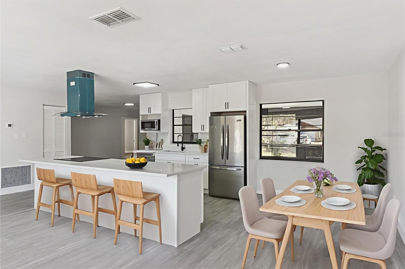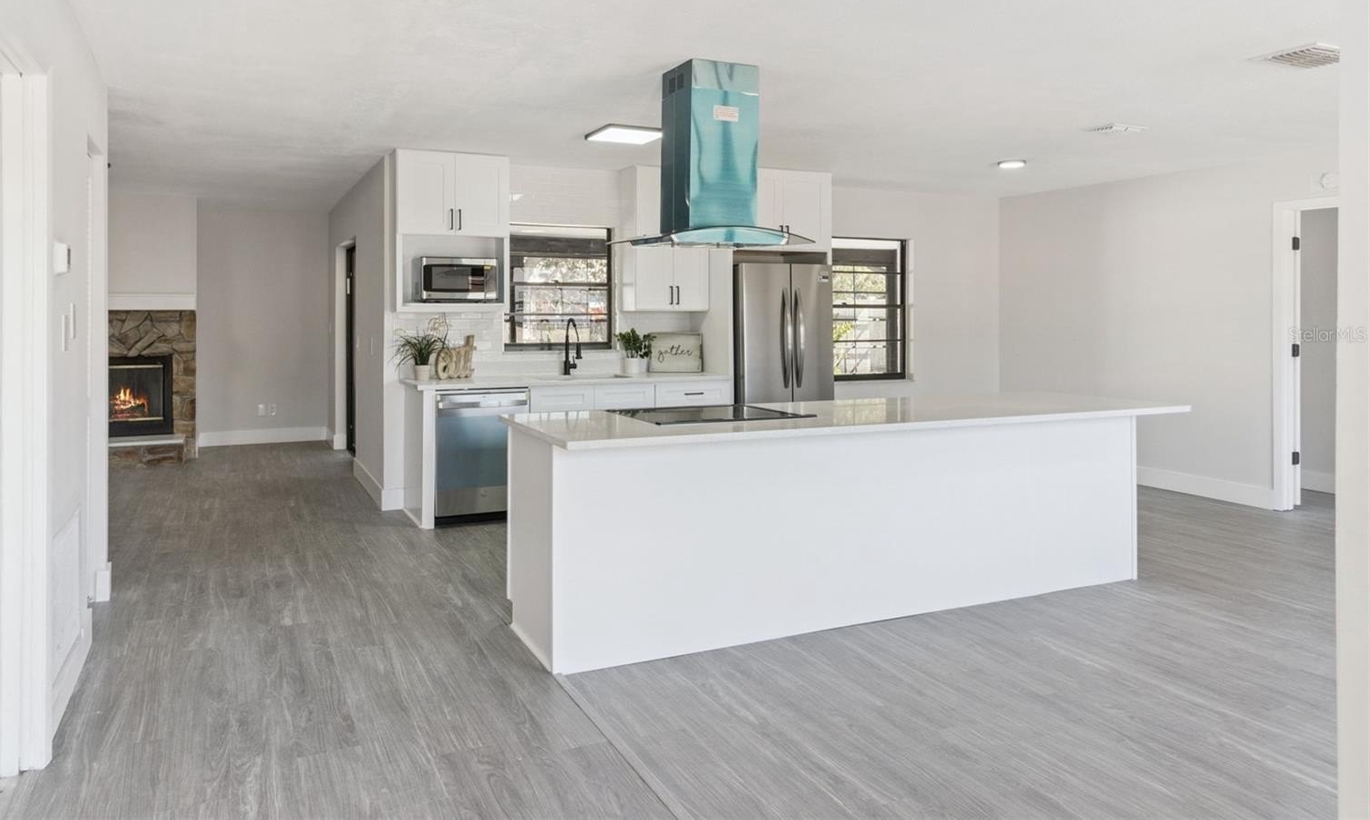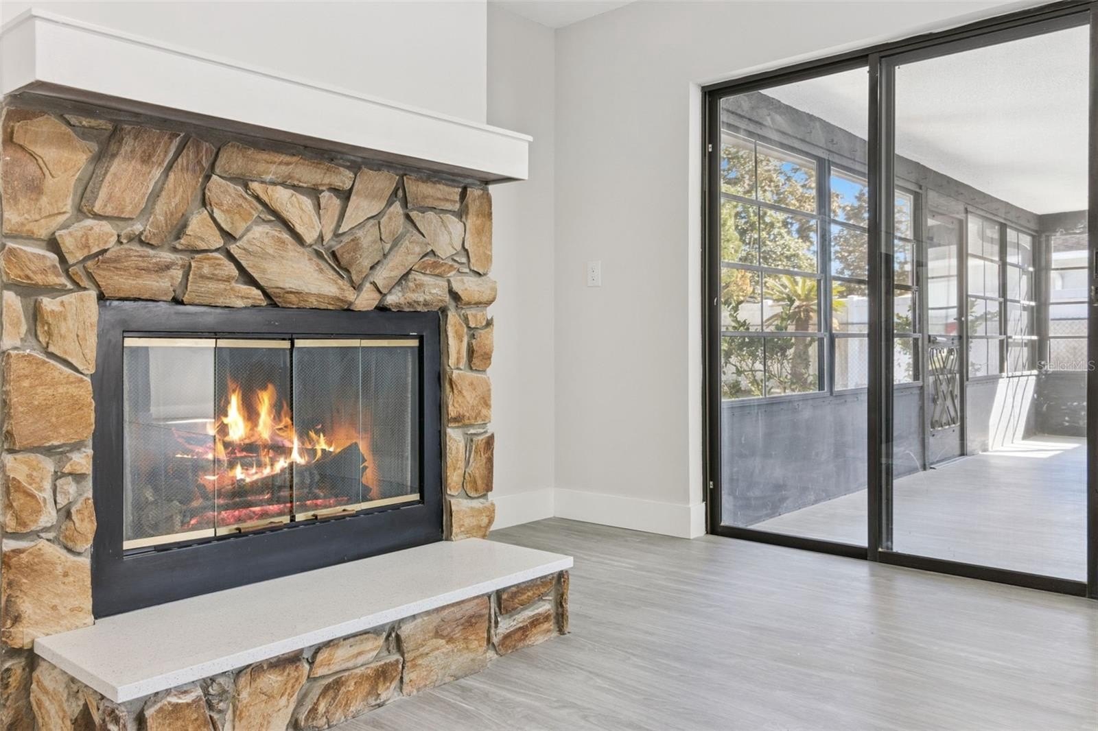 One or more photo(s) has been virtually staged. No HOA, Fully Renovated and Ready to Impress! This home has been extensively updated with a focus on clean design, modern finishes, and improved floor plan flow. Both the interior and exterior have been freshly painted, creating a crisp, cohesive look from the curb all the way through the interior. Inside, all flooring has been replaced with new waterproof vinyl, complemented by brand-new baseboards throughout for a sharp, finished feel. Walls were removed to open up the main living areas, allowing the front living room, dining space, and redesigned kitchen to connect seamlessly. The kitchen now features new cabinetry, new countertops, and all brand-new stainless steel appliances, giving the space a streamlined and functional layout that anchors the home. Toward the back, a separate living room offers additional flexibility and a wood-burning stone fireplace adds character and warmth. Sliding doors lead from this space to the expansive 23’ x 10’ covered and screened porch, extending the living area outdoors and providing an ideal setting for relaxing or entertaining year-round. Both bathrooms have been completely renovated with new cabinets, new countertops, updated fixtures, and modern finishes. The yard is fully fenced and the front landscaping has been refreshed following the recent freeze to enhance curb appeal. The garage features finished flooring, adding to the clean, well-maintained presentation. Major systems have been addressed as well, including a roof replaced in 2018 and an A/C system replaced in 2020. The water heater was replaced in 2012. Walking distance to many shops, schools and services this home is also located just a few minutes drive from Florida’s Turnpike, approximately 15 minutes to Orlando International Airport, and about 25 minutes to Disney parks and downtown Orlando. This home combines extensive upgrades with an exceptionally central Kissimmee location. Completely updated, thoughtfully redesigned, and on the market for the first time in four decades, 2533 Oak Run Blvd delivers modern living without HOA restrictions in a well-established neighborhood.