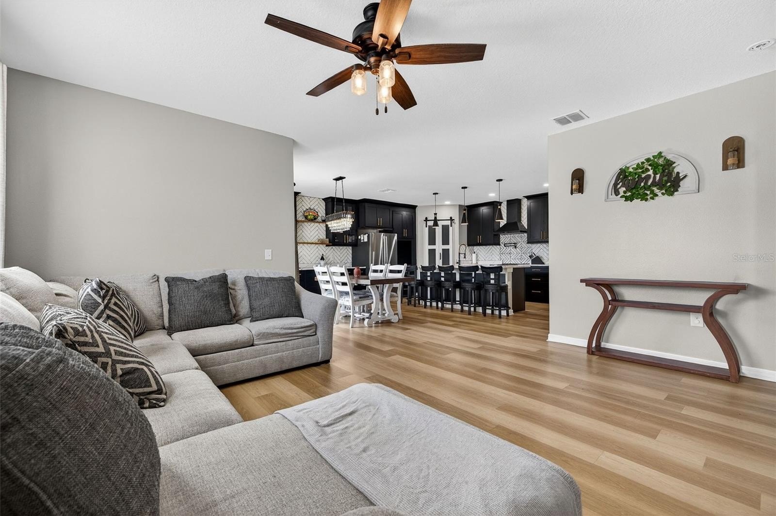 Meticulously maintained, like-new home built in 2017, nestled in the charming Alterra community in Plant City! This upgraded 4-bedroom, 3-bathroom, 2-car garage residence is a true gem. The attention to detail is evident from the moment you set eyes on the professionally landscaped yard, complete with an irrigation system and white vinyl privacy fenced backyard. The spacious entryway boasts not one, but two closets, offering ample storage space for your convenience. The thoughtfully designed split bedroom floorplan situates all secondary bedrooms towards the front of the home, each boasting generously sized closets. The secondary bathroom features a single sink vanity and a tub/shower combination. Towards the back of the home the open great room awaits. The kitchen is a chef's dream, equipped with solid surface countertops, a decorative glass back splash, a convenient island with a breakfast bar, walk-in pantry, and top-of-the-line appliances. Adjacent to the kitchen, the dining room offers slider access to the covered lanai and extended patio, perfect for outdoor entertaining. Tucked in the back of the home, just off the Living room is the primary bedroom, providing a serene retreat. The primary bedroom is complemented by an en-suite bathroom, featuring a dual-sink vanity, a shower stall, a water closet, and a spacious walk-in closet. Oversized storage shed perfect for all your toys and hobbies! Alterra community is perfectly located in Plant City, a town known for its quaint charm and its convenient proximity to lively metropolitan hubs like Tampa, Lakeland and Orlando. Its strategic positioning provides effortless access to major routes including I-75 and I-4, ensuring convenient commuting for residents.