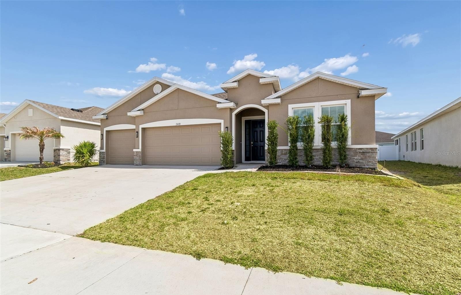 Experience contemporary elegance and effortless living in this stunning 2021-built, single-story home located in the gated enclave of Barrington at Sterling Hill. Offering 4 bedrooms, 3 full baths, 2,353 sq ft of heated living space, and a spacious 3-car garage, this residence blends modern design with everyday comfort. Step inside and immediately feel the openness with soaring ceilings, wide sightlines, and abundant natural light create a bright, welcoming atmosphere throughout. The heart of the home is the showpiece kitchen, thoughtfully designed with white shaker cabinetry, high-end countertops, soft ambient lighting, and sleek stainless-steel appliances. A large island anchors the space, making it ideal for gathering, cooking, or enjoying a quiet morning coffee. The living and dining areas flow seamlessly, offering a sense of connection and spaciousness perfect for entertaining or relaxing. Each of the three oversized secondary bedrooms provides generous closet space and flexibility for guests, hobbies, or a home office. The primary suite serves as a peaceful retreat, offering privacy, comfort, and modern finishes. Outside your door, Barrington at Sterling Hill offers a resort-style lifestyle with amenities including a community pool, fitness center, playgrounds, and more. The location is exceptional, close to shopping, dining, and everyday conveniences, and just a short drive to the Veterans Expressway, making trips to Tampa and surrounding areas incredibly convenient. This home delivers the perfect blend of style, space, and location in one of the area’s most desirable gated communities.