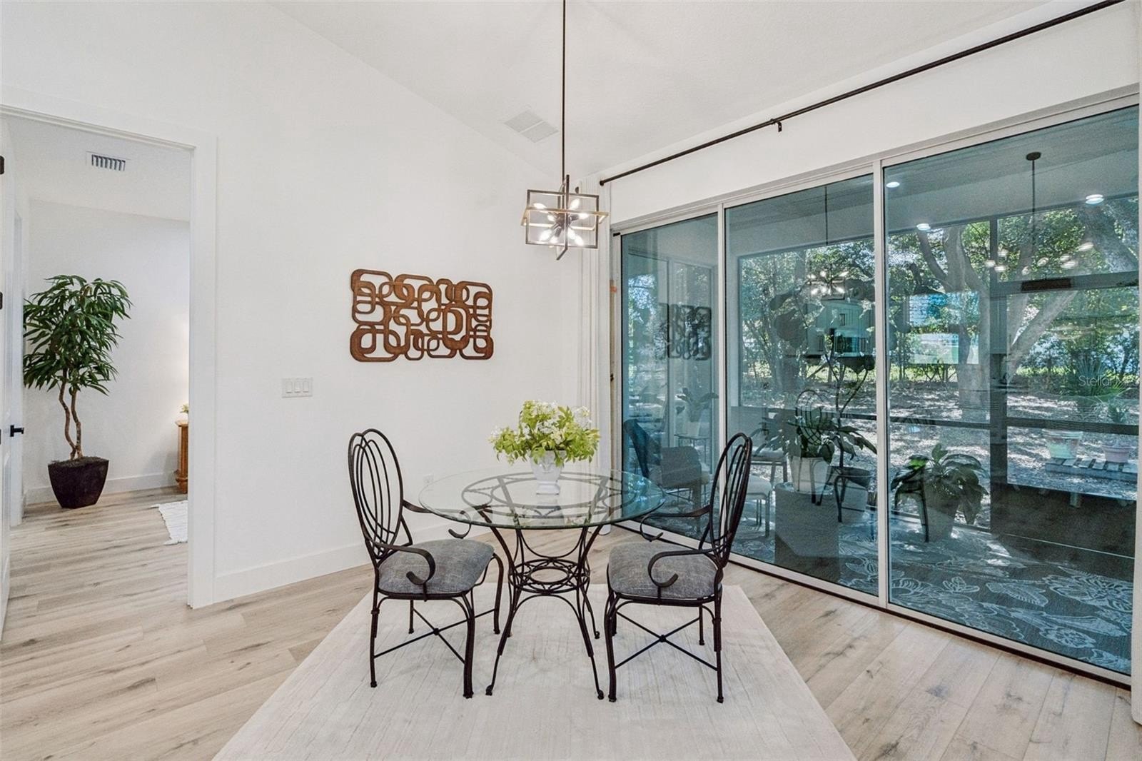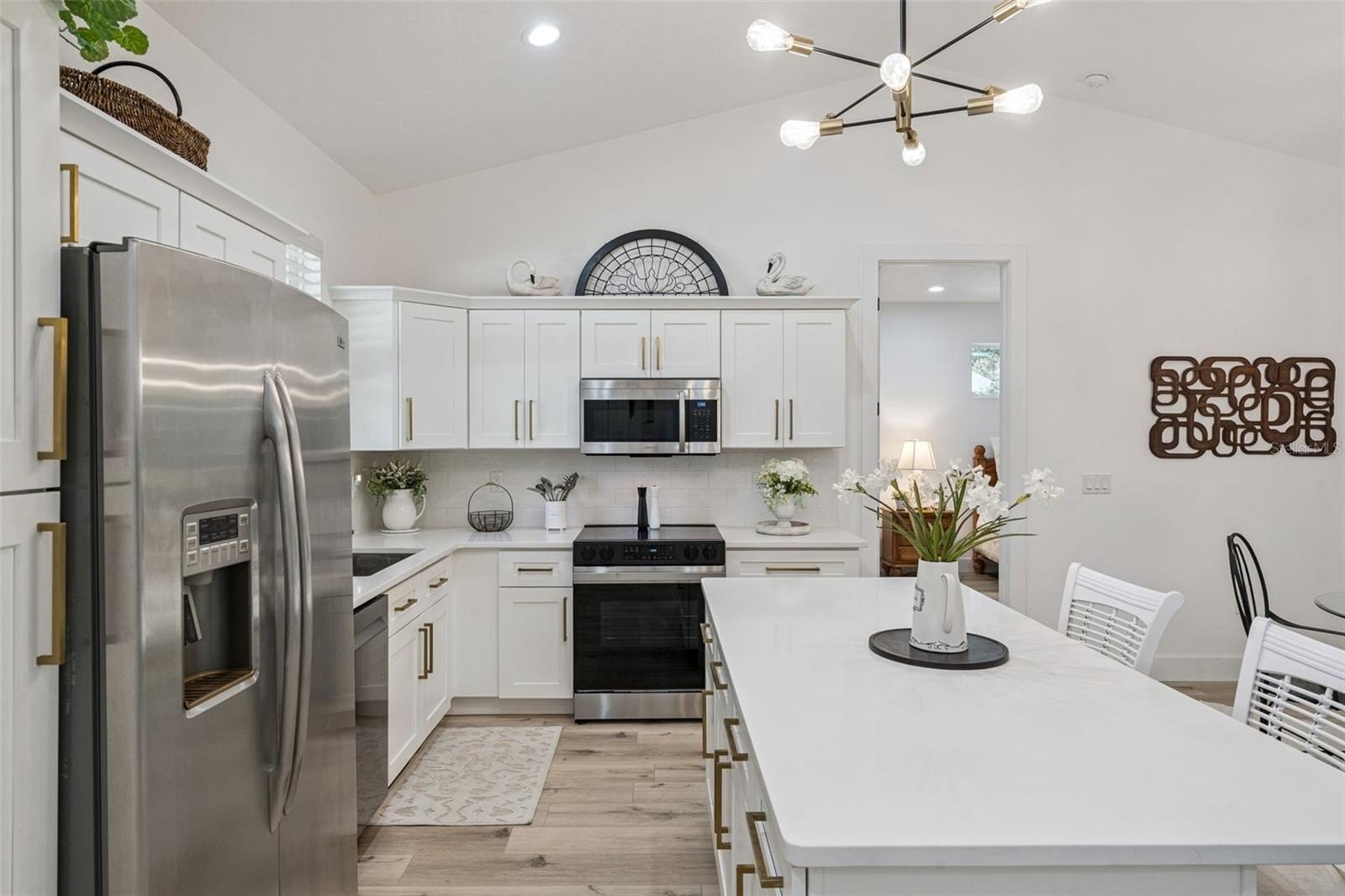 The perfect property has finally become available! Situated on .62 acres with No HOA, built in 2024 and offering 1,346 square feet of thoughtfully designed living space, this 2-bedroom, 2-bath home combines high-end finishes with functional layout. High ceilings, 8-foot doors, luxury vinyl plank flooring throughout, high baseboards, and quartz countertops create a clean, elevated aesthetic that feels both modern and timeless. The open-concept kitchen, family room, and dining area flow seamlessly together, overlooking an oversized screened lanai — ideal for indoor-outdoor Florida living. Whether you’re entertaining guests or enjoying a quiet evening at home, the expansive lanai extends your living space year-round. The spacious primary suite features a double vanity, an oversized walk-in shower, a large closet with custom built-ins, and smart pocket doors designed to maximize space and efficiency. On the opposite side of the home, the second bedroom and full bath with tub/shower provide privacy for guests or family. An interior laundry room offers convenient access to the detached 3-car garage — perfect for car collectors, hobbyists, small business owners, or those needing serious storage. Situated just minutes from Lake Minneola, shopping, dining, and Florida’s Turnpike, this location provides both convenience and tranquility. With .62 acres and no HOA restrictions, you have room to store your recreational vehicles, create your dream outdoor space, or potentially add an additional dwelling with proper approvals.