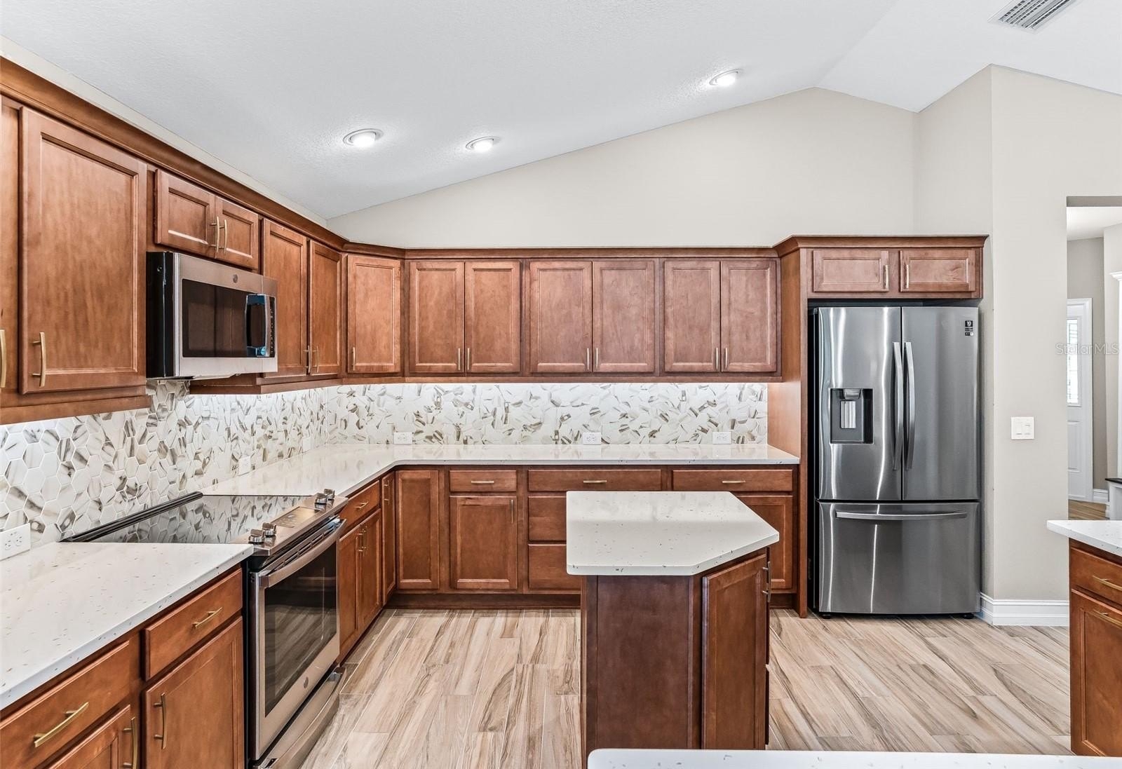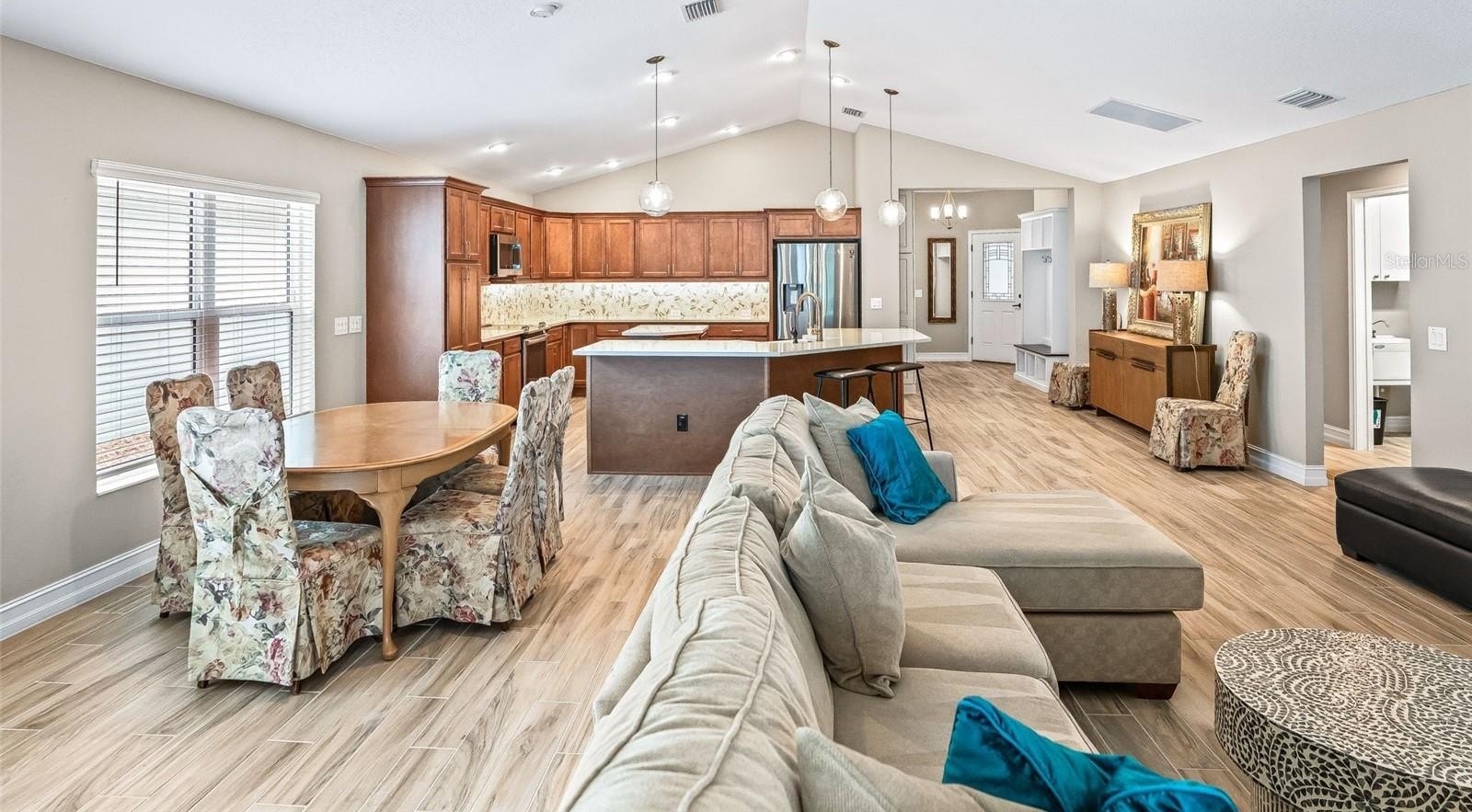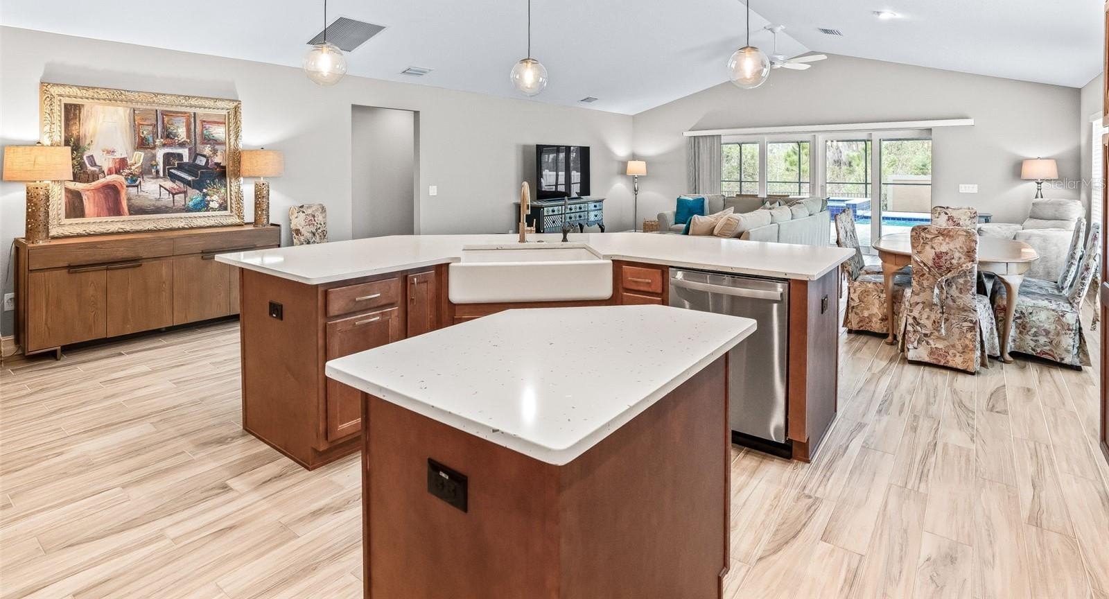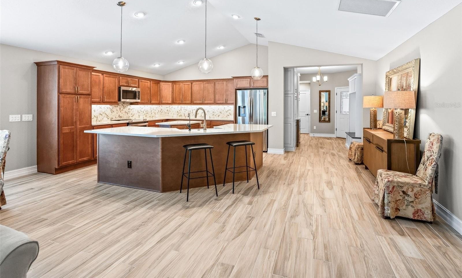 Stunning Turn Key Winslow model in The Village of Chitty Chatty. Features include screen enclosed pool and spa with brick paver patio. Screening is bug proof. Great location, backs up to preserve area (no homes behind). Open and spacious floor plan with ceramic plank tile flooring. Kitchen is a chef's dream with quartz counter tops, tile back splash, center island, stainless steel appliances, over and under cabinet lighting, cabinets with pull outs and soft close drawers with built in organizers, up-graded cast iron sink, and large pantry. There are custom built in's in closets and entryway. Primary bedroom has tray ceiling and primary bath features Roman shower, double sinks, granite counters, and walk in closet. Other features of the home include water filtration system and water softner, laundry room with utility sink and shelving, vaulted ceilings, pleated shades, two car garage plus golf cart garage, pull down attic stairs, screen enclosed front patio, and maintenance free landscaping with no grass to mow. MUST SEE!