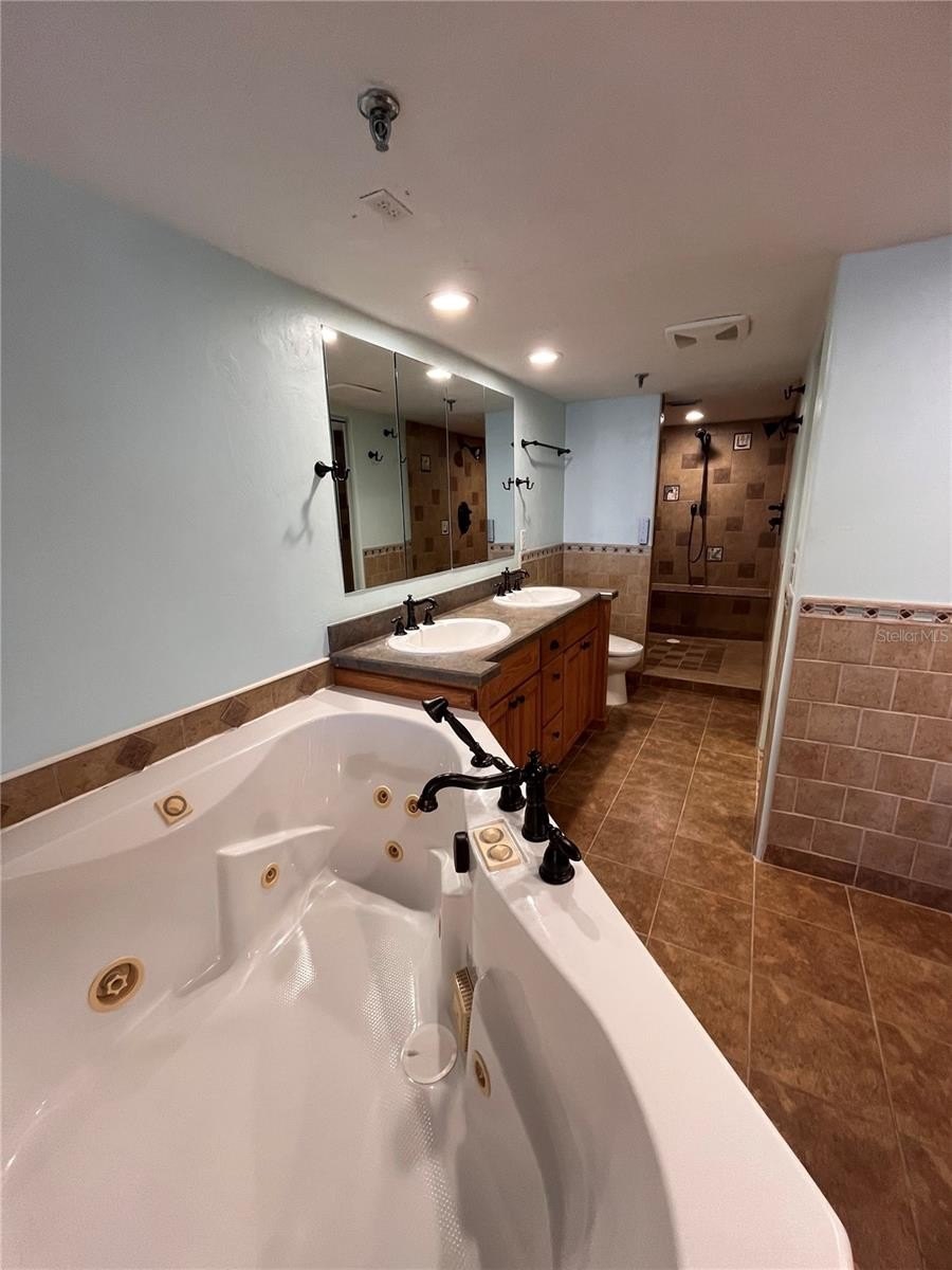 Inside, the condo features sleek tile flooring, granite countertops, and a chef’s kitchen with a built-in range, soft-close cabinetry, and direct oceanfront views from the kitchen. The expansive primary suite feels like a private retreat, complete with a jetted soaking tub, three-head walk-in shower, double vanity, and a spacious walk-in closet.