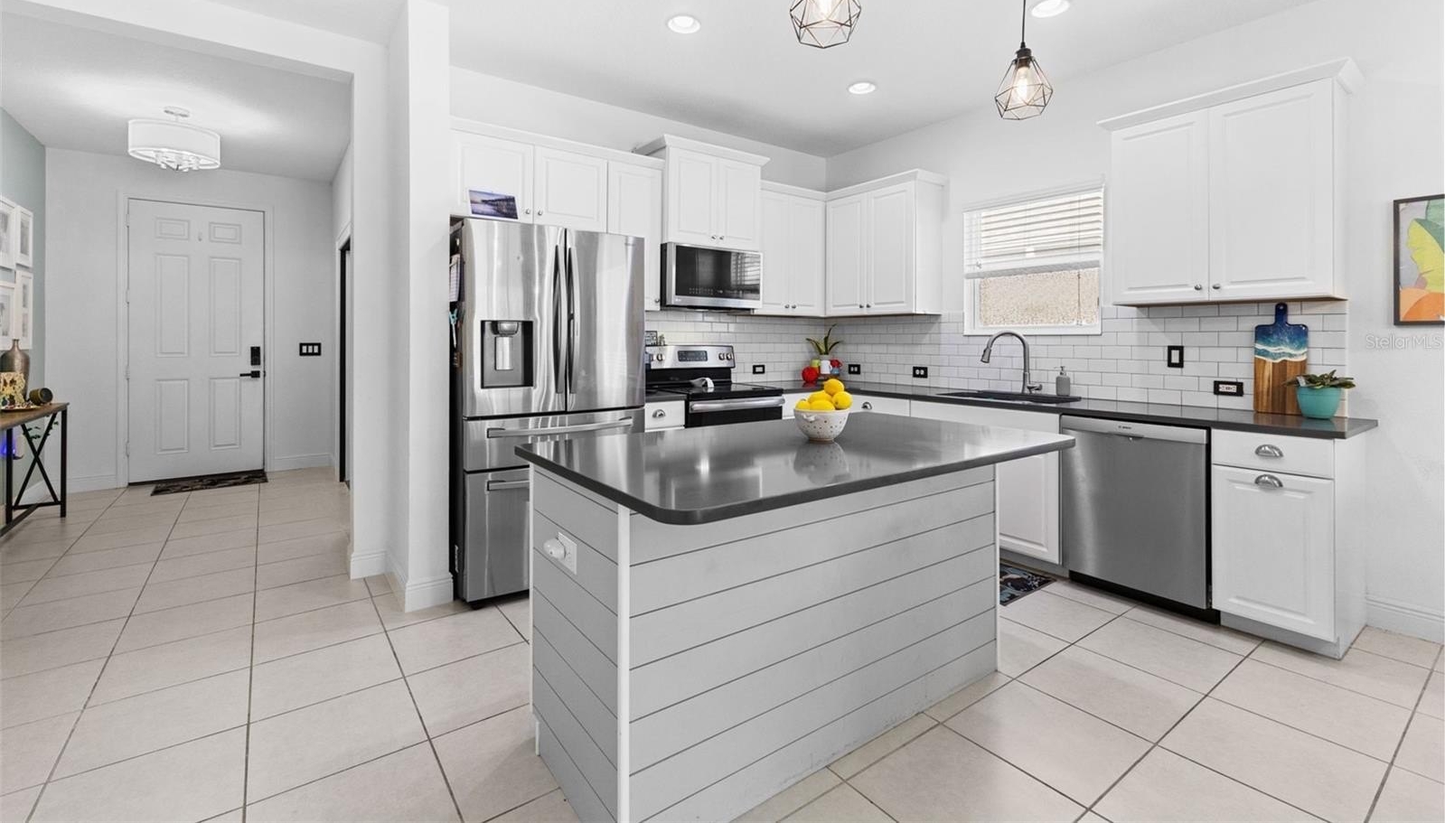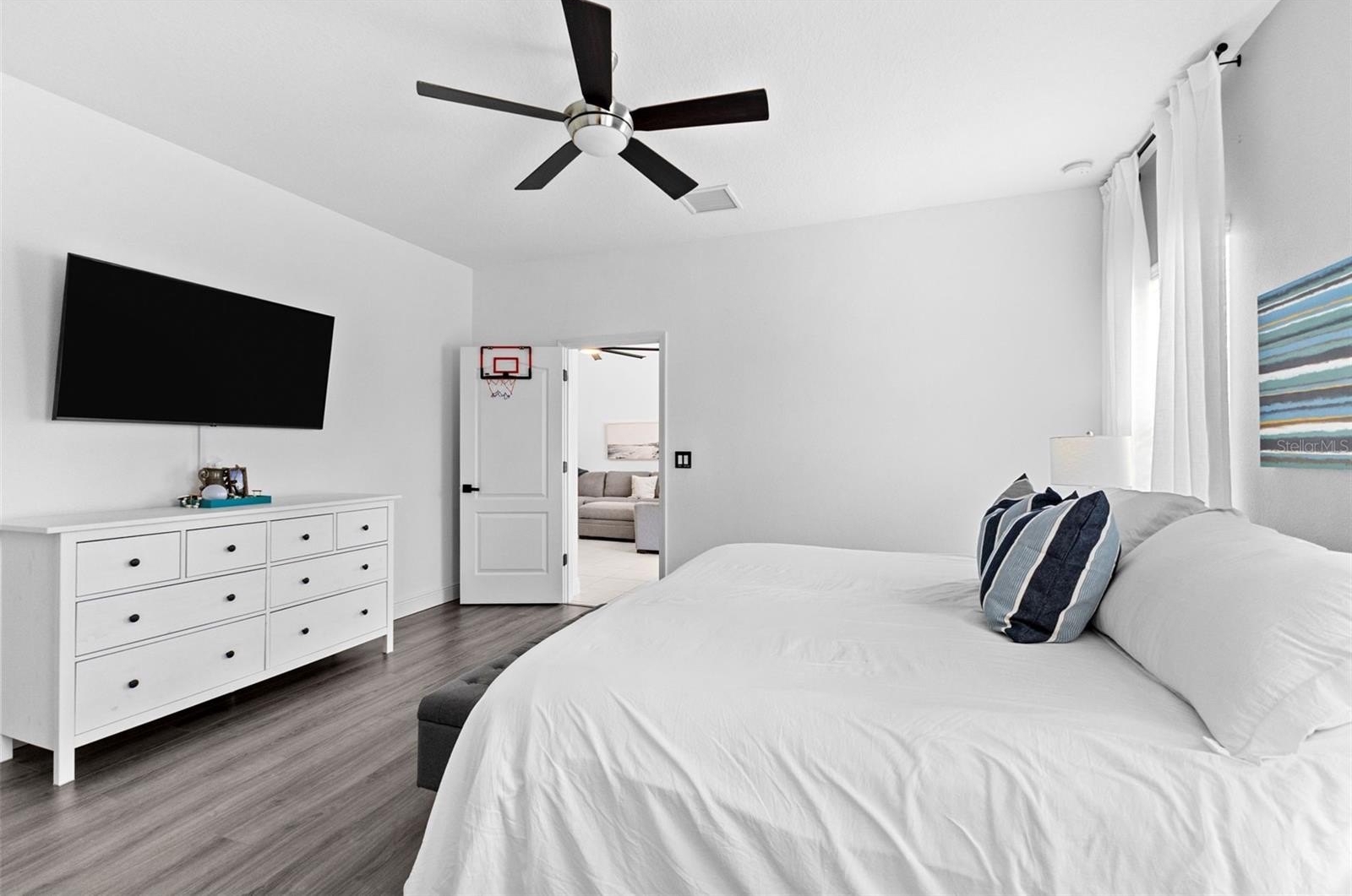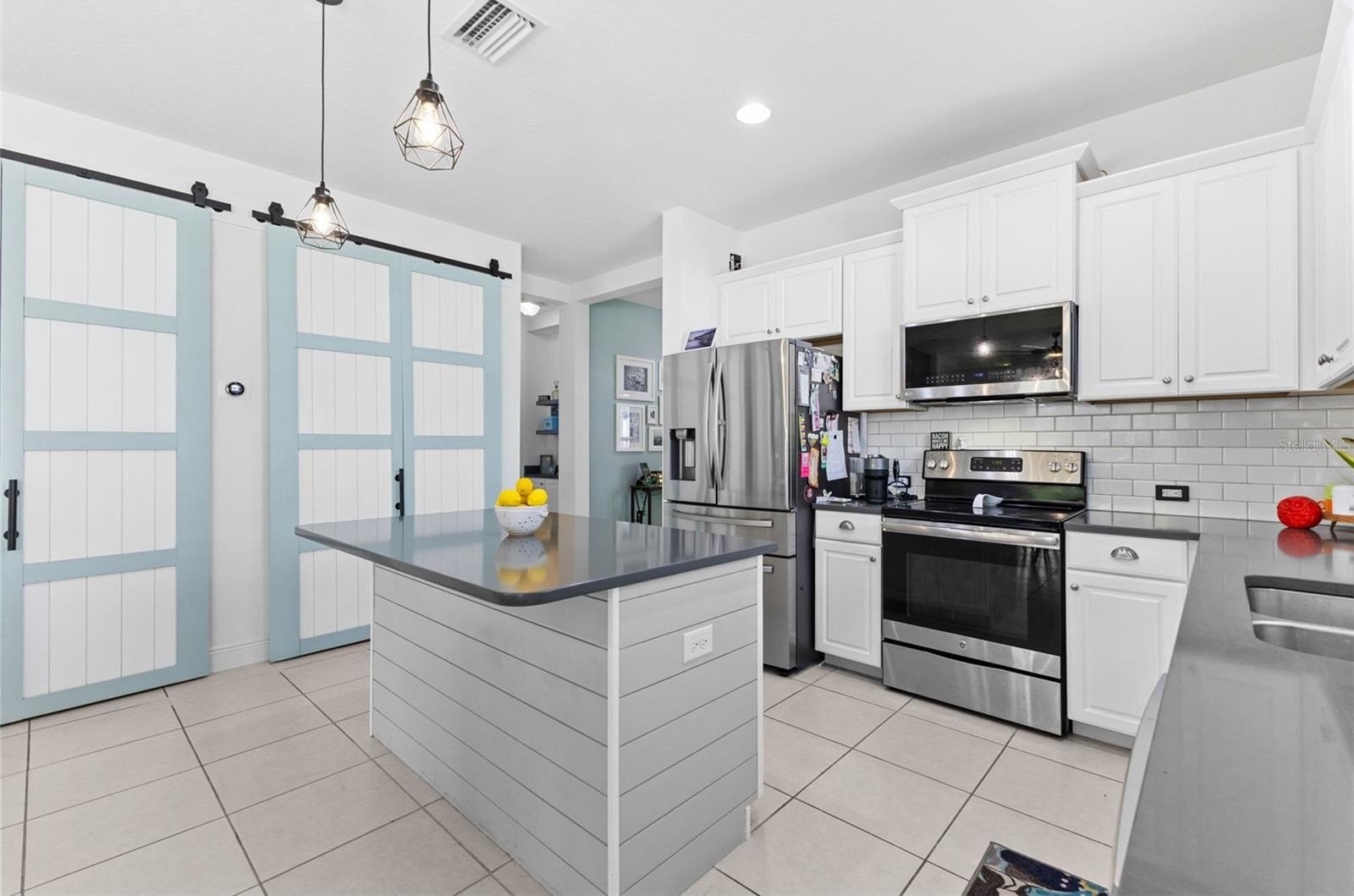 WELCOME HOME to this meticulously maintained Neal Communities "Sweetwater" model in the premier gated community of River's Reach. Spanning nearly 2,800 sq. ft., this 4-bedroom plus Den/Office floorplan offers the perfect blend of modern luxury and functional design. The chef-inspired kitchen features crisp white cabinetry, dual pantries, gray quartz countertops, and premium stainless steel appliances, anchored by an expansive entertaining island with designer pendant lighting. The open-concept family room serves as a true centerpiece, showcasing a custom shiplap accent wall and triple sliding glass doors that lead to your private outdoor oasis. Step outside to a backyard retreat that has been thoughtfully upgraded with professional pavers and a full perimeter fence—an expensive addition already completed for you. The primary suite is a true sanctuary, featuring a barn door entry to the en-suite bath, dual vanities, and a generous walk-in closet. Upstairs, the massive bonus room provides endless possibilities as a home theater, gym, or second family room. Additional upgrades include expanded under-stair storage, a garage utility sink, and enhanced attic ventilation for energy efficiency. Residents of River's Reach enjoy resort-style amenities including a community pool, hot tub, fitness center, and grilling area, all while being minutes from premier dining and shopping. Experience the perfect balance of community security and private serenity in this move-in-ready beauty.