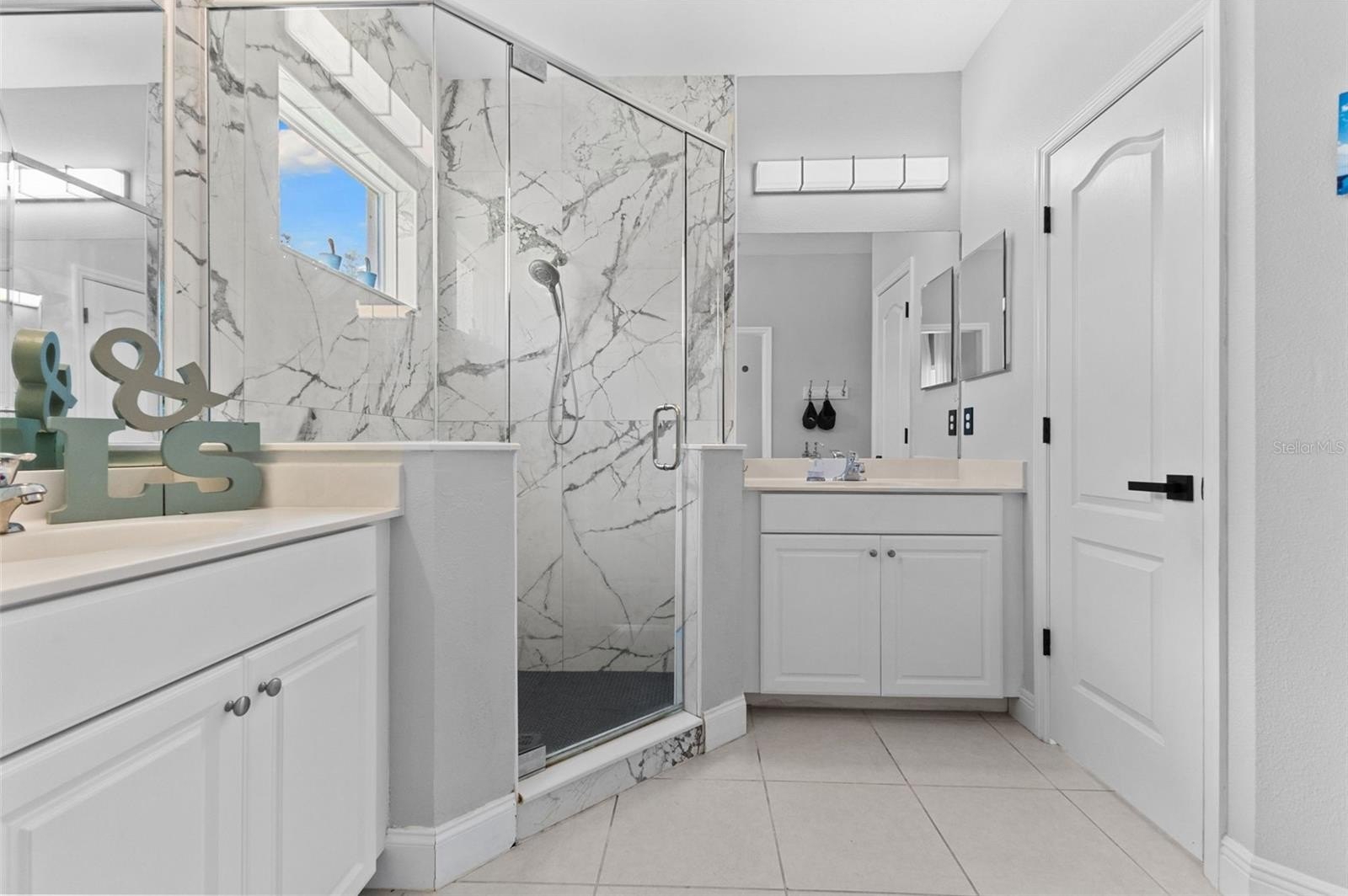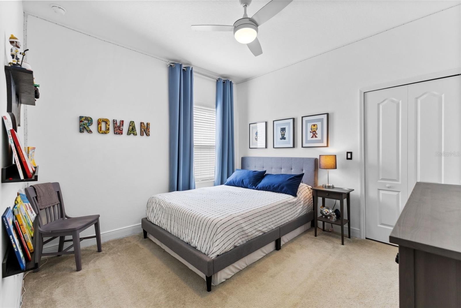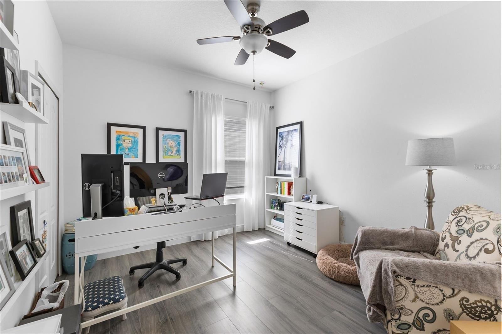 WELCOME HOME to this meticulously maintained Neal Communities "Sweetwater" model in the premier gated community of River's Reach. Spanning nearly 2,800 sq. ft., this 4-bedroom plus Den/Office floorplan offers the perfect blend of modern luxury and functional design. The chef-inspired kitchen features crisp white cabinetry, dual pantries, gray quartz countertops, and premium stainless steel appliances, anchored by an expansive entertaining island with designer pendant lighting. The open-concept family room serves as a true centerpiece, showcasing a custom shiplap accent wall and triple sliding glass doors that lead to your private outdoor oasis. Step outside to a backyard retreat that has been thoughtfully upgraded with professional pavers and a full perimeter fence—an expensive addition already completed for you. The primary suite is a true sanctuary, featuring a barn door entry to the en-suite bath, dual vanities, and a generous walk-in closet. Upstairs, the massive bonus room provides endless possibilities as a home theater, gym, or second family room. Additional upgrades include expanded under-stair storage, a garage utility sink, and enhanced attic ventilation for energy efficiency. Residents of River's Reach enjoy resort-style amenities including a community pool, hot tub, fitness center, and grilling area, all while being minutes from premier dining and shopping. Experience the perfect balance of community security and private serenity in this move-in-ready beauty.