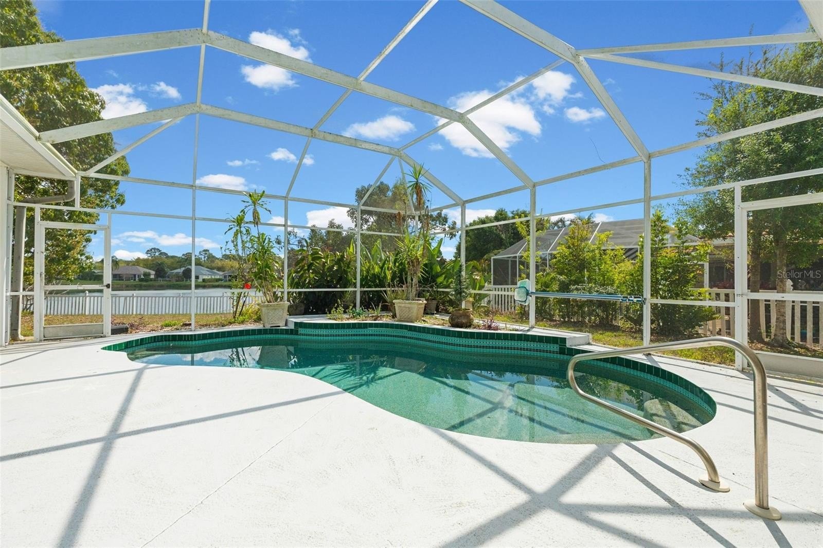 Your Waterfront Dream Awaits! This is a rare opportunity to secure a prime waterfront estate in the highly sought-after River Woods neighborhood at an unbeatable price. In a quiet neighborhood surrounded by large majestic trees and lush Florida landscaping, the property benefits from generous spacing between homes, creating a sense of tranquility without feeling isolated. This 3 car garage pool home, with waterfront views is sure to impress! The flowing floor plan includes a spacious primary suite featuring private slider access to the screened-in pool area. As soon as you walk in the front door you will see straight through to the pool area which is overlooking the large pond! Step outside to a massive lot and a newly refinished pool, all overlooking serene water views. With just a few cosmetic touches, this home will be the absolute crown jewel of the community! River Woods residents enjoy access to a community center with fitness equipment, a resort-style pool, tennis and pickleball courts, beautiful tree-lined streets, and NO CDD FEES! Newer roof in 2018 and newer LVP flooring throughout!