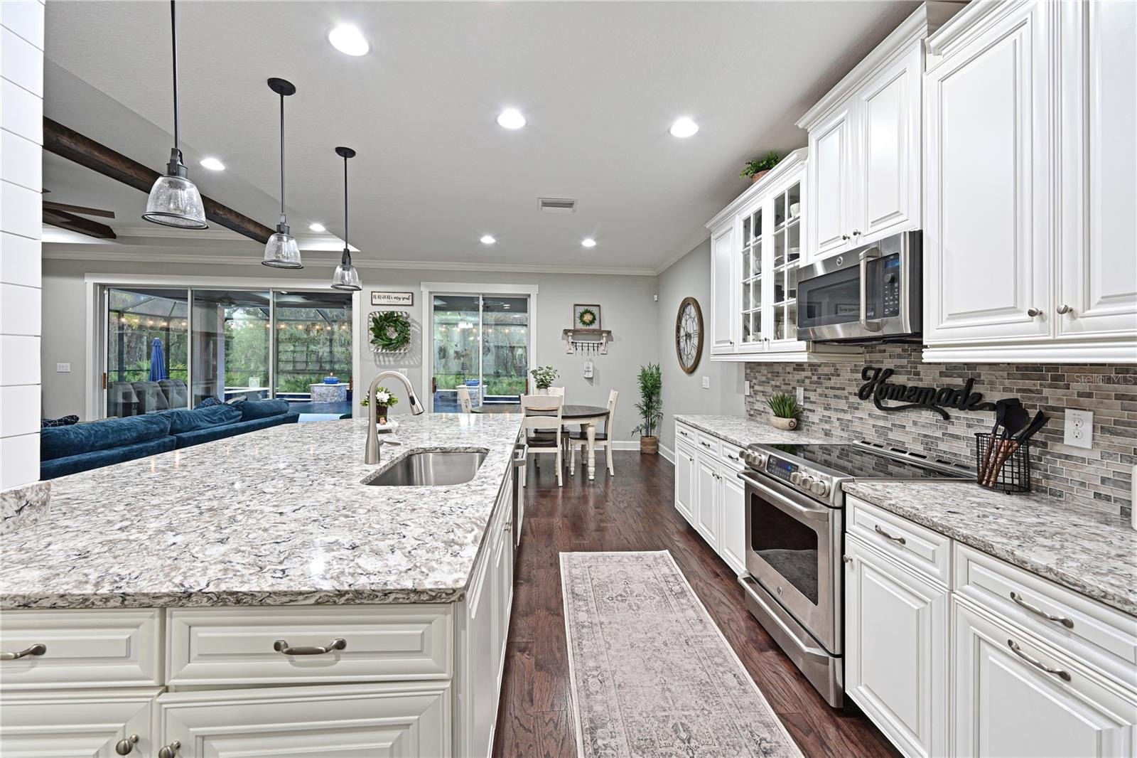 This isn't your standard suburban tract home. We’re looking at a two-story, three-car garage estate where the "luxurious updates" actually live up to the hype. Forget the fluff—here are the facts: The first floor features hardwood flooring, gorgeous woodwork, and quartz counters. You’ll notice the craftsmanship in the staggered bright kitchen cabinetry and the tray ceiling in the living room, which uses beams that match the flooring for visual symmetry. Step outside to your own private oasis where your new backyard features a private saltwater heated pool and spa designed for recreation and hosting. The details continue on with High-end finishes like plantation shutters, crown molding, and a paver driveway - they all can be found here. The Oakleaf Hammock neighborhood serves as a sanctuary, preserving Florida’s natural charm. With over 20 lakes and ponds and a canopy of mature oak trees, it’s like living in a Florida preserve. Low HOA fees come with a basketball court, multipurpose sports field, and pet-friendly walking trails right on-site. Here's one for the fiscally conservative —there are no CDD fees, and the quarterly HOA remains low because the community focuses on natural preservation rather than high-maintenance clubhouses.