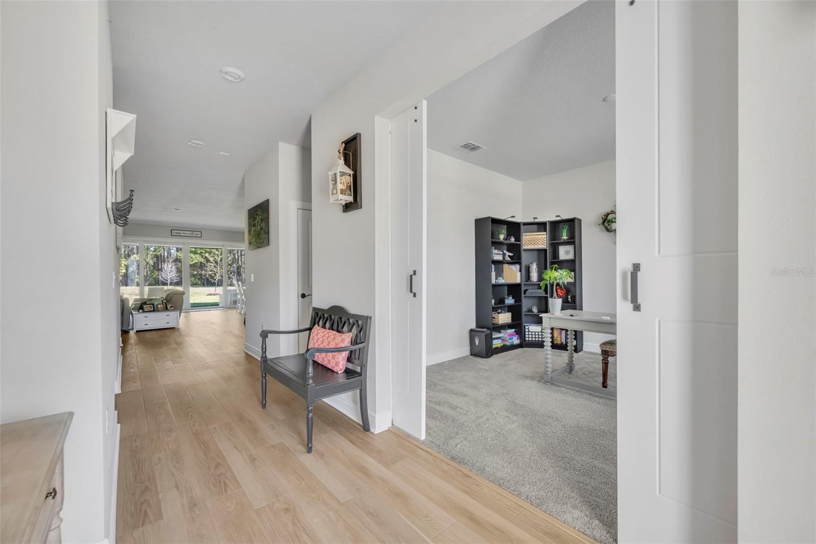 Welcome to this exceptional 4-bedroom, 3.5-bath, 2,964 sq. ft. residence featuring a loft, den, and generously appointed details throughout. From the moment you enter the foyer, you are greeted by bright natural light, warm neutral tones, and a modern, inviting aesthetic. The private study with elegant custom doors that create a versatile space perfect for a home office, library, or even a sophisticated wine room. A custom feature wall in the main living area adds a striking design element that elevates the home’s style.