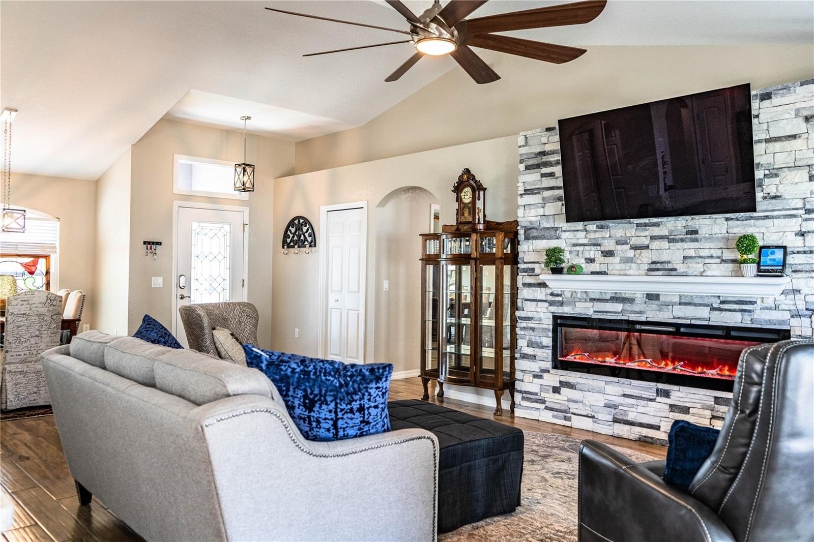 Welcome to this beautifully updated home in the welcoming North Lakeland community of Remington Oaks! This meticulously maintained property is truly move-in ready with major upgrades throughout. The home features a newer roof, newer AC, and a fully updated kitchen designed with both style and functionality in mind. Inside, you’ll find porcelain wood-look tile flooring throughout, adding warmth and durability to every space. Both bathrooms have been tastefully updated, and the home has been recently painted inside and out, giving it a crisp, modern feel. Additional highlights include updated windows, a newer hot water heater, vinyl fencing, and a striking electric stone fireplace that adds character and charm. Conveniently located near I-4, major hospitals, dining, shopping, and schools—and Publix is just minutes away—this home offers both comfort and convenience. Pack your bags and get ready to love where you live.