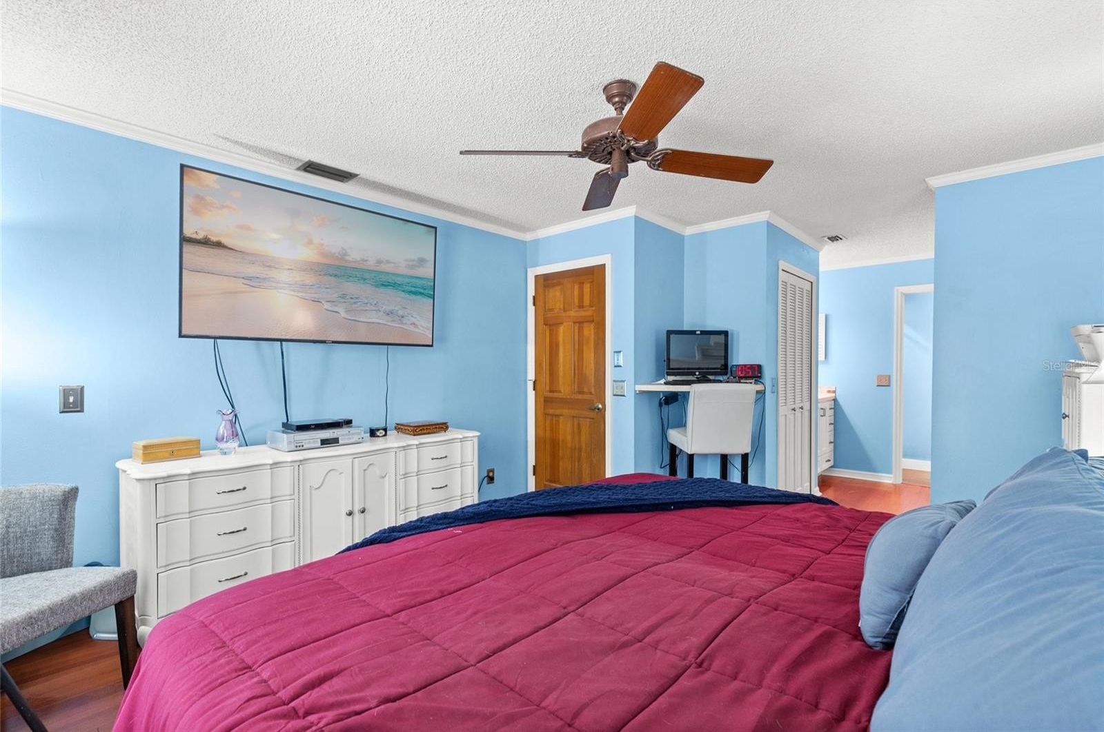 Inside, you’ll find a beautifully updated kitchen with solid wood cabinetry, ample storage, and quality finishes that make both everyday living and entertaining a pleasure. High-quality flooring runs throughout the home, creating a cohesive and durable living space.