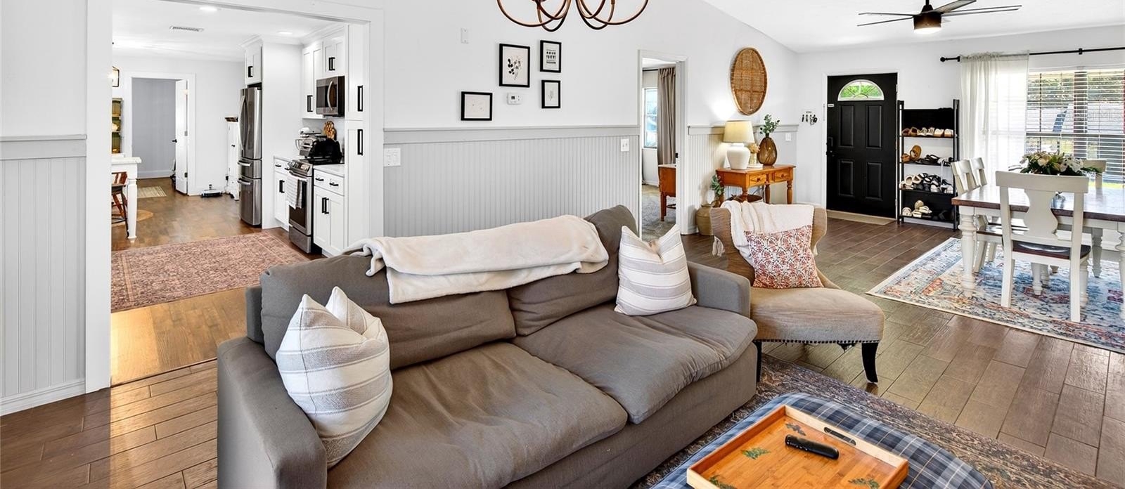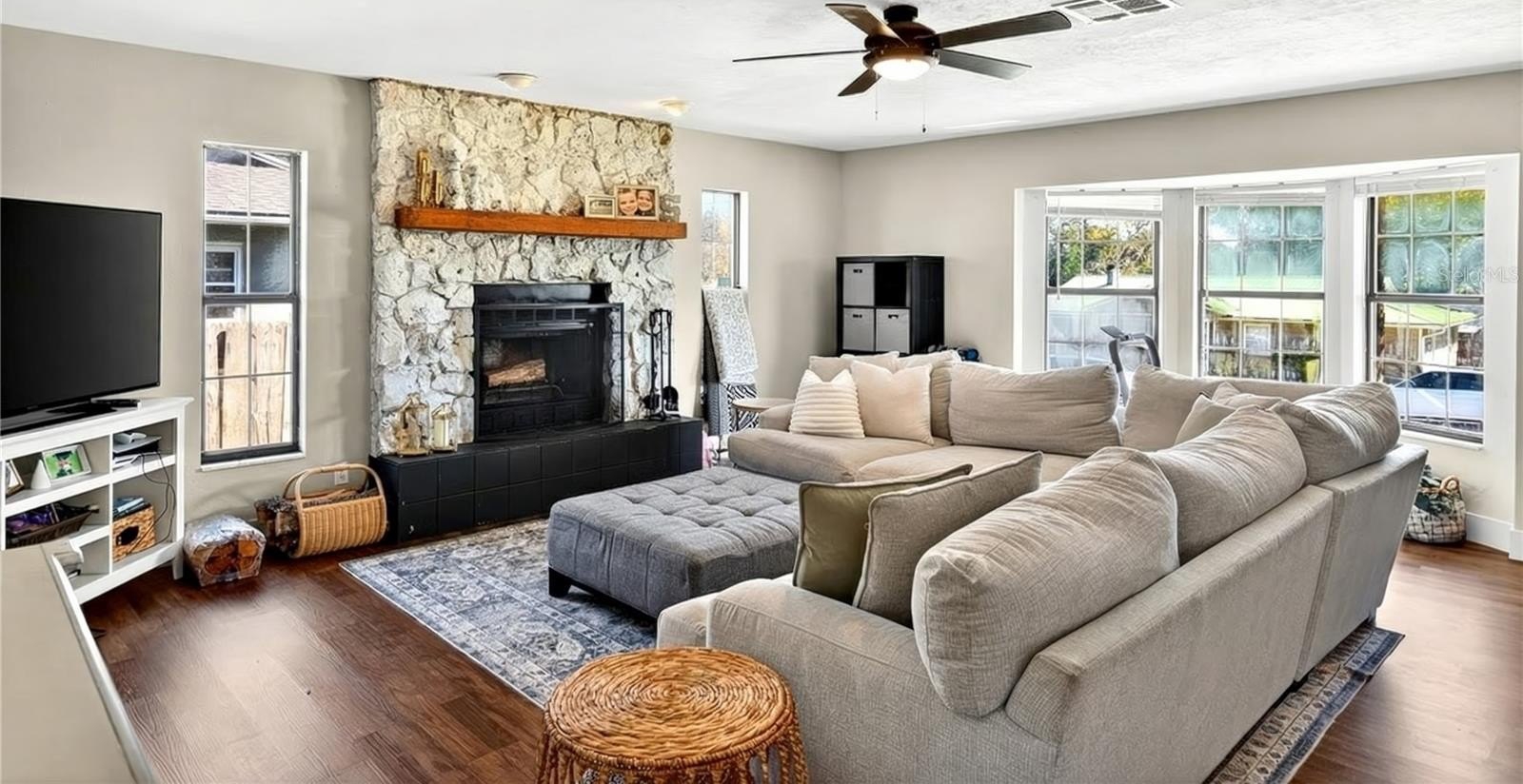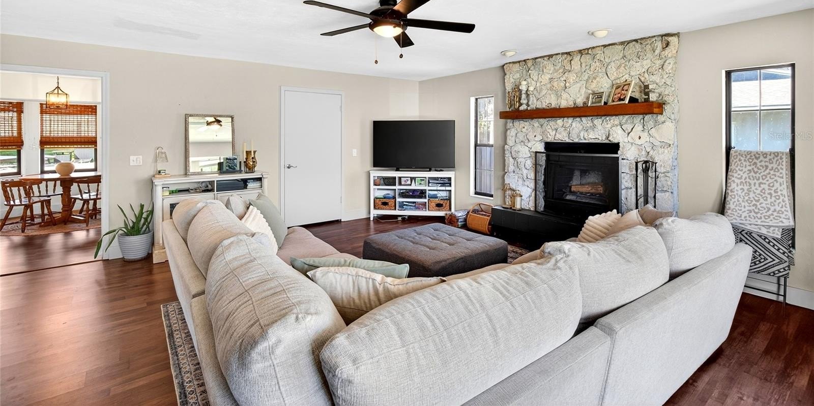 One or more photo(s) has been virtually staged. RENOVATED IN 2020 WITH BRAND NEW 2025 ROOF, OVER 2K SQUARE FEET WITH NO HOA AND A POOL AS WELL AS STORAGE SHED IN THE BACKYARD! THIS SPACIOUS OPEN FLOOR PLAN FEATURES SPLIT BEDROOM PLAN, WOOD FAUX TILE AND LUXURY VINYL PLANK FLOORS AND 2 LIVING ROOMS! STEP INSIDE TO DINING AREA OVERLOOKING THE 1ST LIVING ROOM WITH BEADBOARD ACCENT WALLS. THE PRIMARY BEDROOM TO RIGHT WITH COLOR ACCENT WALL, WALK IN CLOSET AND PRIMARY BATH WITH TILE SURROUND COMBO TUB SHOWER WITH BEADBOARD WALLS. ACROSS THE HOME IS THE 2 ADDITIONAL BEDROOMS SHARING THE 2ND BATH. LIVING ROOM LEADS TO AMAZING MODERN KITCHEN WITH ALL NEW 2020 CABINETS, STAINLESS STEEL APPLIANCES AND GRANITE COUNTERTOPS WITH PENINSULA ISLAND. CUSTOM BACKSPLASH. BREAKFAST AREA WITH BEAUTIFUL WINDOWS OVERLOOKING BACKYARD , THIS AREA LEADS TO THE OVERSIZED LAUNDRY ROOM, THE 2ND LIVING AREA IS SPACIOUS AND FEATURES STONE WOOD BURNING FIREPLACE! HEADING BACK THROUGH KITCHEN INTO LIVING ROOM YOU STEPM OUTSIDE THE FRENCH DOORS TO YOUR 20 X 16 PATIO WITH VININGS GROWING FROM THE ARBOR TRELLIS. THE PRIVACY,FENCED IN BACKYARD WITH ABOVE GROUND POOL WITH SUN SHADE AND NEW SUN DECK FOR THE ULTIMATE SUNTAN. 10 X 8 SHED , ALL NEW LIGHTING AND CEILING FANS. CARPET IN BEDROOMS. ROOF 2025, HVAC AND HOT WATER HEATER 2020.