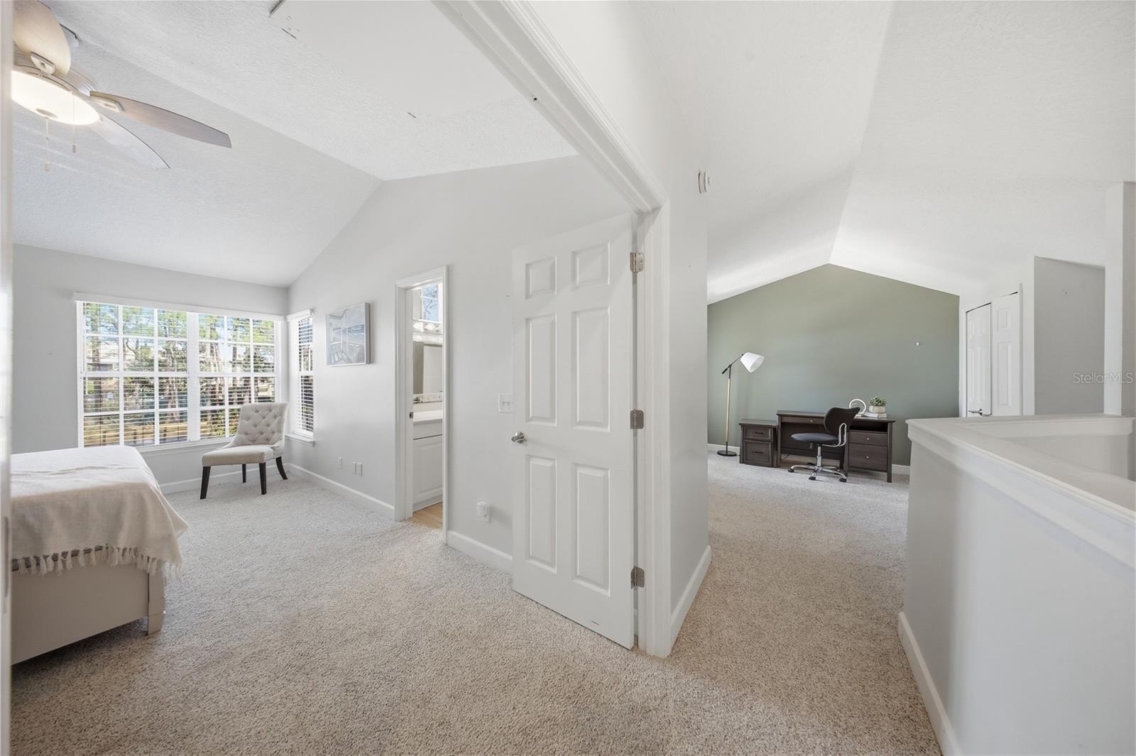 Located in gated Barclay Place, this end unit condominium offers a low-maintenance lifestyle in sunny Lake Mary, Florida. Inside the gates of Barclay Place, you will find elegant Mediterranean-style townhome-like condos with courtyard-style entryways. The community offers tennis courts, a clubhouse with a sparkling swimming pool and brand new pickleball courts will soon be completed. Just outside the community gate, you will find the Heathrow Country Club Athletic Center. If you desire, you can become a member of the Heathrow Country Club, whether as a golf, tennis or social member. The Country Club boasts 36 holes of Championship golf across two courses, over a dozen tennis courts, a resort style pool & two spacious clubhouses with year around dining. The 14-mile paved Seminole Wekiva Trail, ideal for walking, running or biking, is also conveniently located near the community, for athletic enthusiasts. The area truly offers the Florida lifestyle you've been dreaming of. Back inside this property, you will find double primary bedrooms: one on the main level and another upstairs. There is also a loft upstairs, which could easily be converted into a 3rd bedroom, if desired, or used as an office or flex space. On the main level, you will appreciate the vaulted ceilings, the open concept kitchen and living room and a cozy wood burning fireplace. The laundry is also located on the first floor. Slider doors lead out to a screened in patio, where you can enjoy the fresh air while sipping on your favorite refreshment. The lot is ideal; it's an end unit with ample green space beside and behind the building. The front courtyard offers more outdoor living space, featuring privacy walls, new pavers (2023) and string lights that complete the ambiance. Truly low maintenance, the community maintains the exterior of the homes, including the landscaping. Recent upgrades include: Roof replacement (2023). Exterior freshly painted (2023). Interior carpet for stairs and second level (2022). Interior freshly painted (2022). AC (2020). Water Heater (2019). As an added bonus, the current owners installed nearly $4,000 worth of ADT security in 2022, which include cameras, an alarm that can be armed & disarmed remotely with an app, a smart thermostat & it even includes specialized water and flood sensors, All of these ADT security features make managing the property from afar that much easier for those who call Florida their second home. Make sure to ask your real estate agent for a list of furniture that could convey with the property, if you desire. Just 45 minutes from the beaches & attractions, this property is prime Florida real estate. What are you waiting for? Start living the life you've dreamed of today!