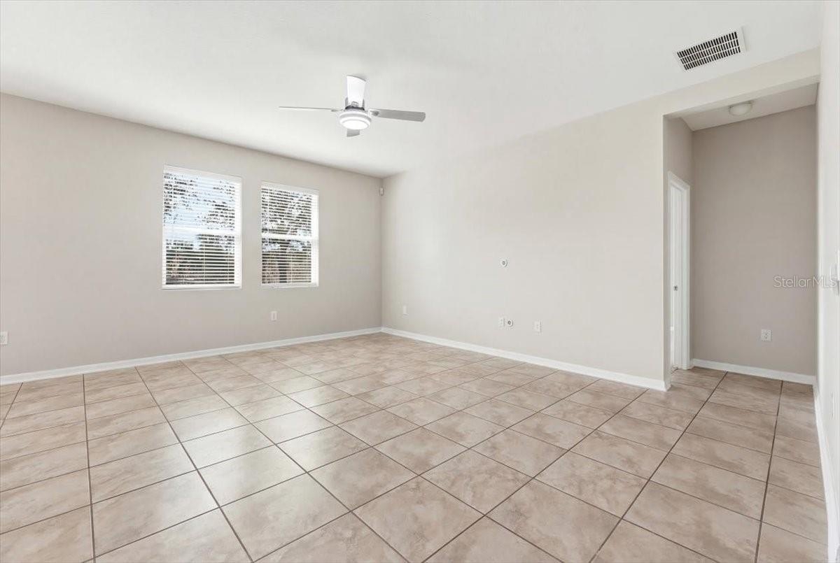 The kitchen offers a center island, generous pantry space, and overlooks the dining and living areas, creating a seamless and inviting gathering space. The spacious primary suite includes a large walk-in closet and a private en-suite bathroom. An oversized laundry room adds extra convenience and storage.