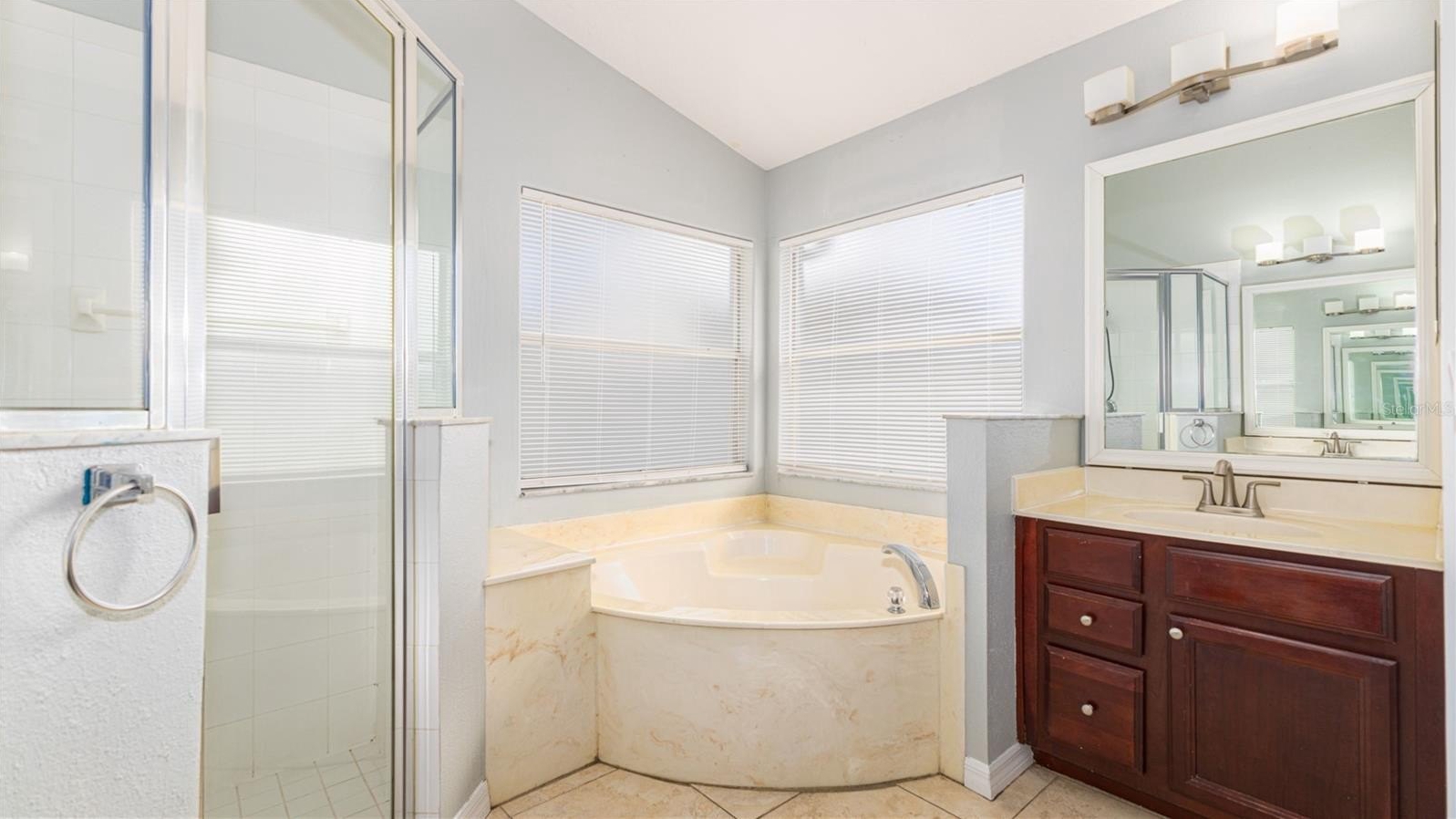 The private primary suite features high ceilings, a walk-in closet, and direct access to the patio through its own set of doors. The en-suite bathroom includes dual vanities, a separate shower, and a relaxing garden tub.Three additional bedrooms share a well-appointed bathroom with double vanities and a skylight that fills the space with natural light.