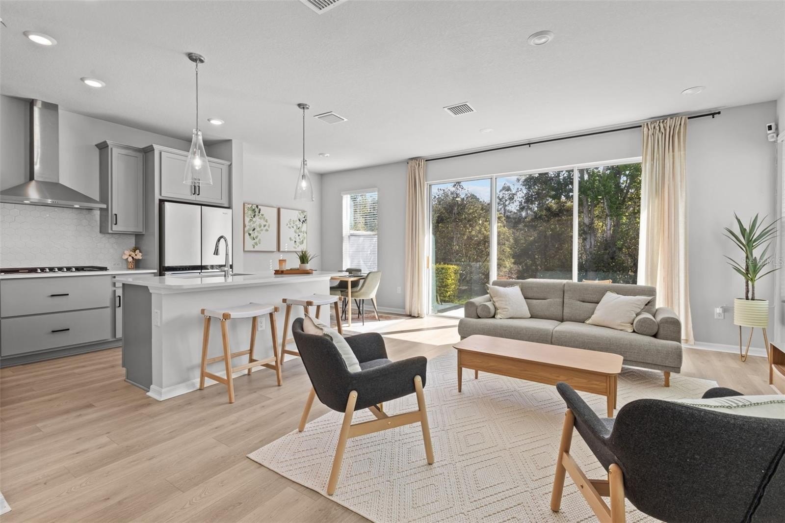 This rare end-unit David Weekley townhome in the award-winning Bexley community offers the spacious footprint and open feel of a single-family home with the low-maintenance lifestyle of a luxury townhome. Positioned on a scenic conservation lot with only one shared neighbor, this oversized floor plan stands out immediately with a unique side-entry foyer that creates a natural, open flow across the main level. To your left, a dedicated home office is tucked behind classic French doors which is perfect for remote work and conveniently located near the half bath and an expansive two-car garage that features extra width for a golf cart, workshop, or additional storage. The heart of the home is a bright, open-concept living area and chef’s kitchen featuring upgraded laminate flooring, quartz countertops, a large center island, and a premium gas cooktop with a wall oven and range hood. Natural light pours into the eat-in dining space which leads out to a rear patio overlooking peaceful green space. Upstairs, you are greeted by a versatile loft area that provides substantial extra living space rarely found in typical townhome layouts. This level also houses two additional bedrooms, a full bathroom, a laundry room, and the massive primary suite. This retreat features elegant tray ceilings and an ensuite bathroom that includes a garden tub, a large walk-in shower, and double sinks. Every inch of this home is built with the high-quality David Weekley style and attention to detail that truly makes it stand out from your typical townhome. Living in Bexley means enjoying resort-style amenities including miles of trails, multiple pools, a fitness center, and the community cafe while staying minutes from top-rated schools and the Suncoast Parkway. These specific units are a rare find on the market and are designed for buyers who want the space of a house without the exterior upkeep.