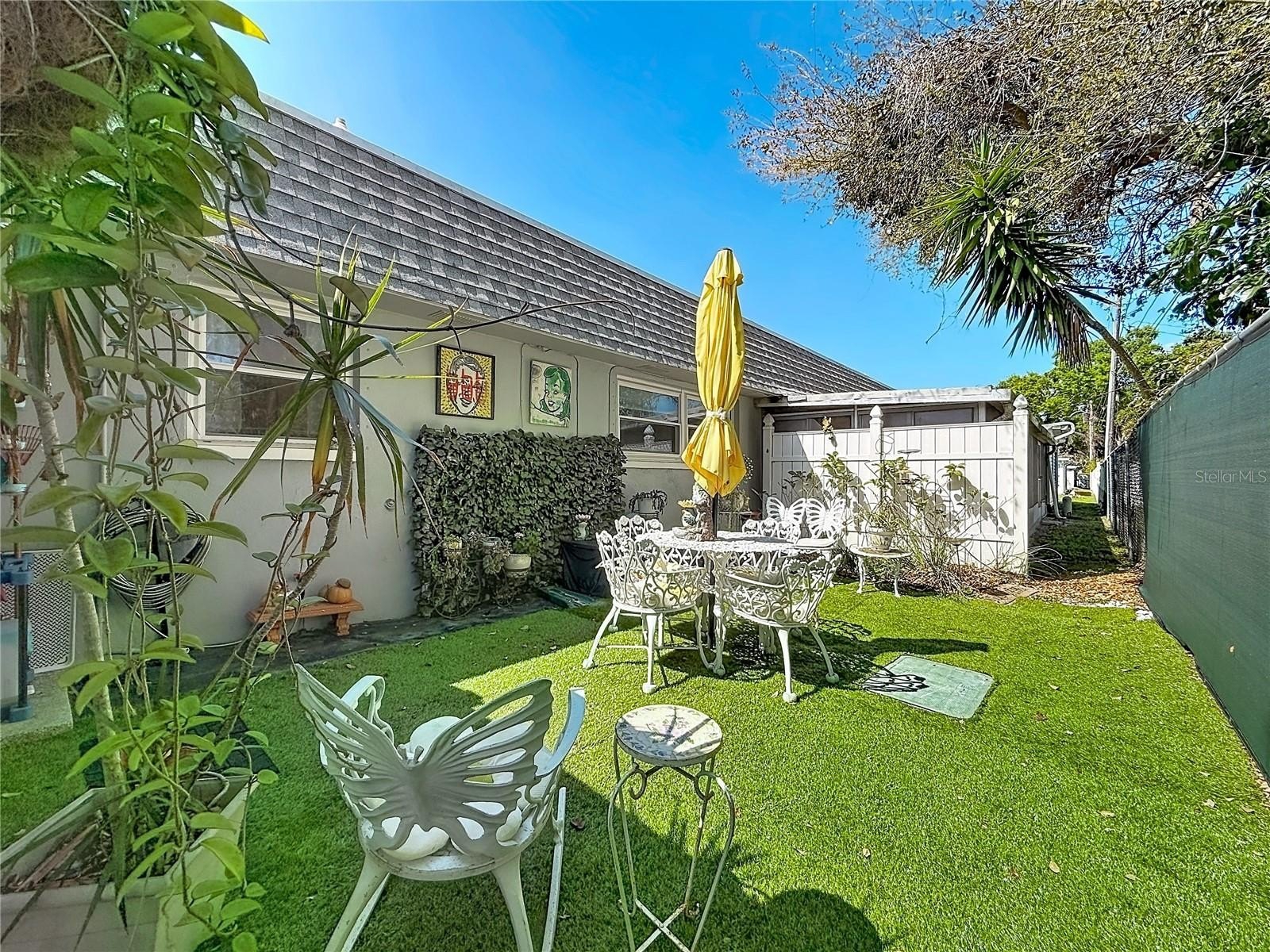 2023, Roof replaced 2016, Hot tub new in 2021. This unit has a nice semi-private back yard. The ground covering is artificial grass which is easy to maintain and always