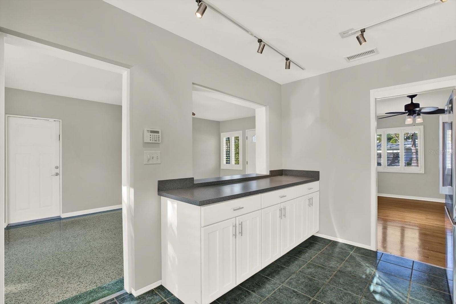 The home features a spacious dining room along with a versatile flex space perfect for a home office, breakfast nook, or creative studio. Plantation shutters throughout create a warm and versatile atmosphere that blends classic character with everyday functionality.