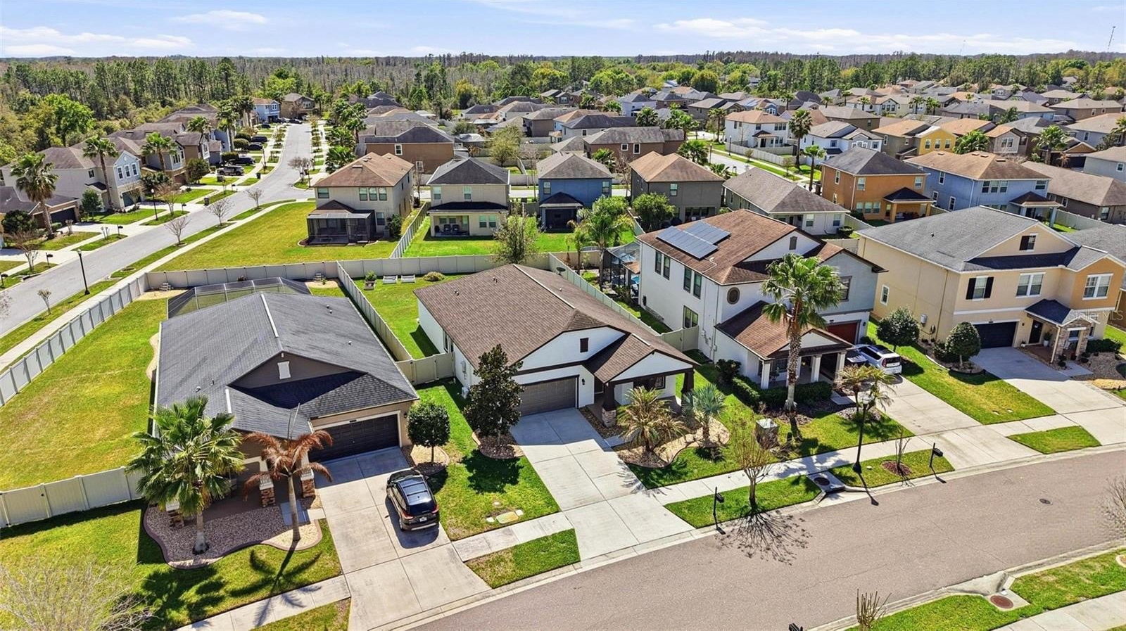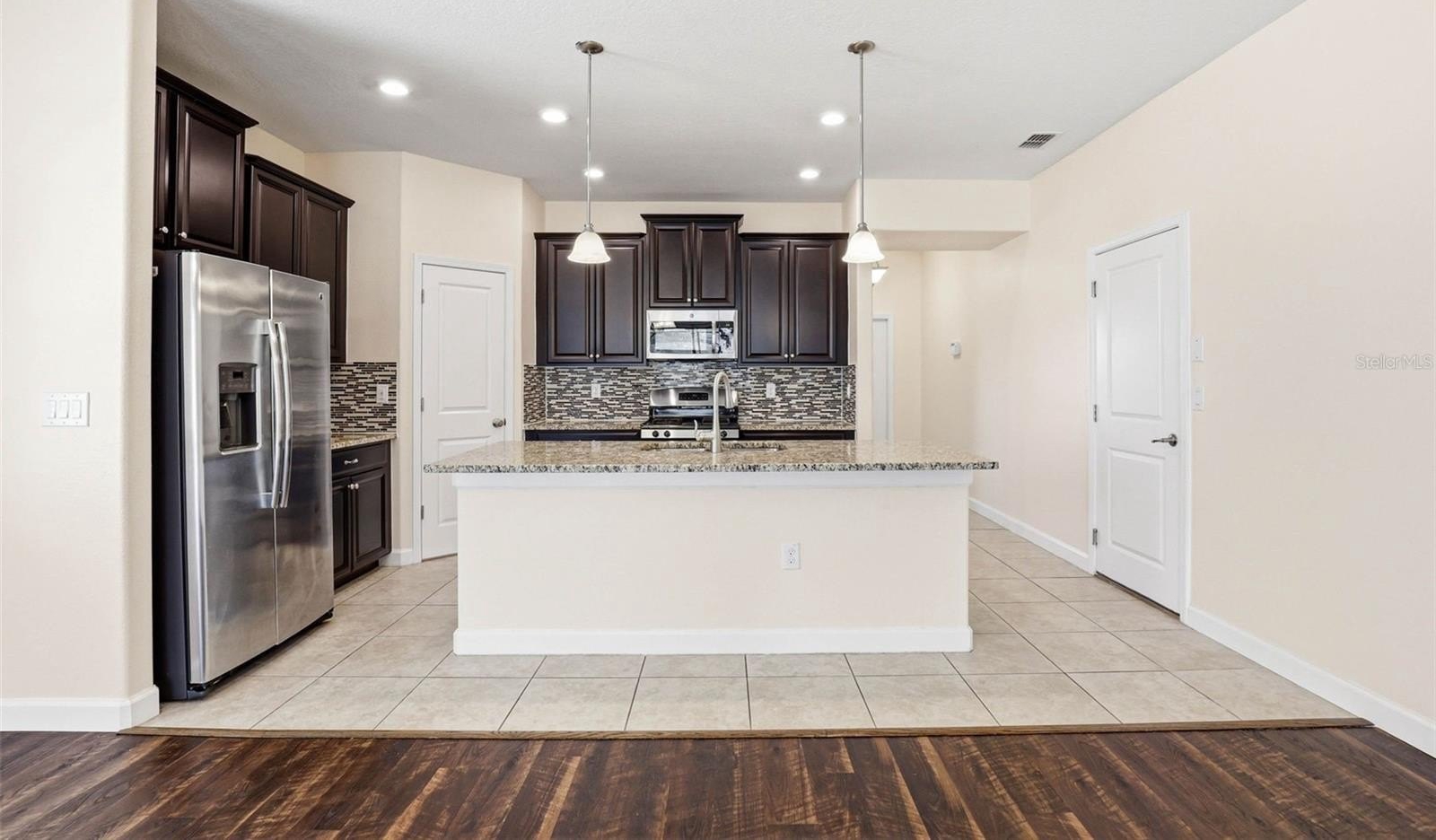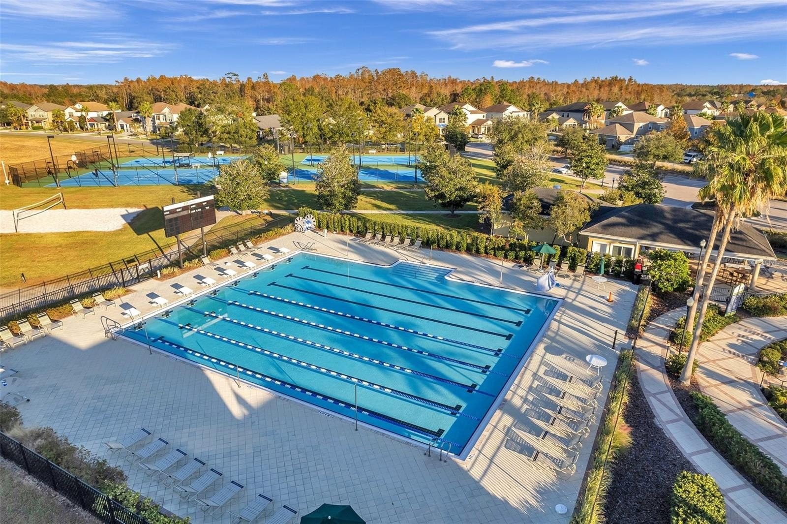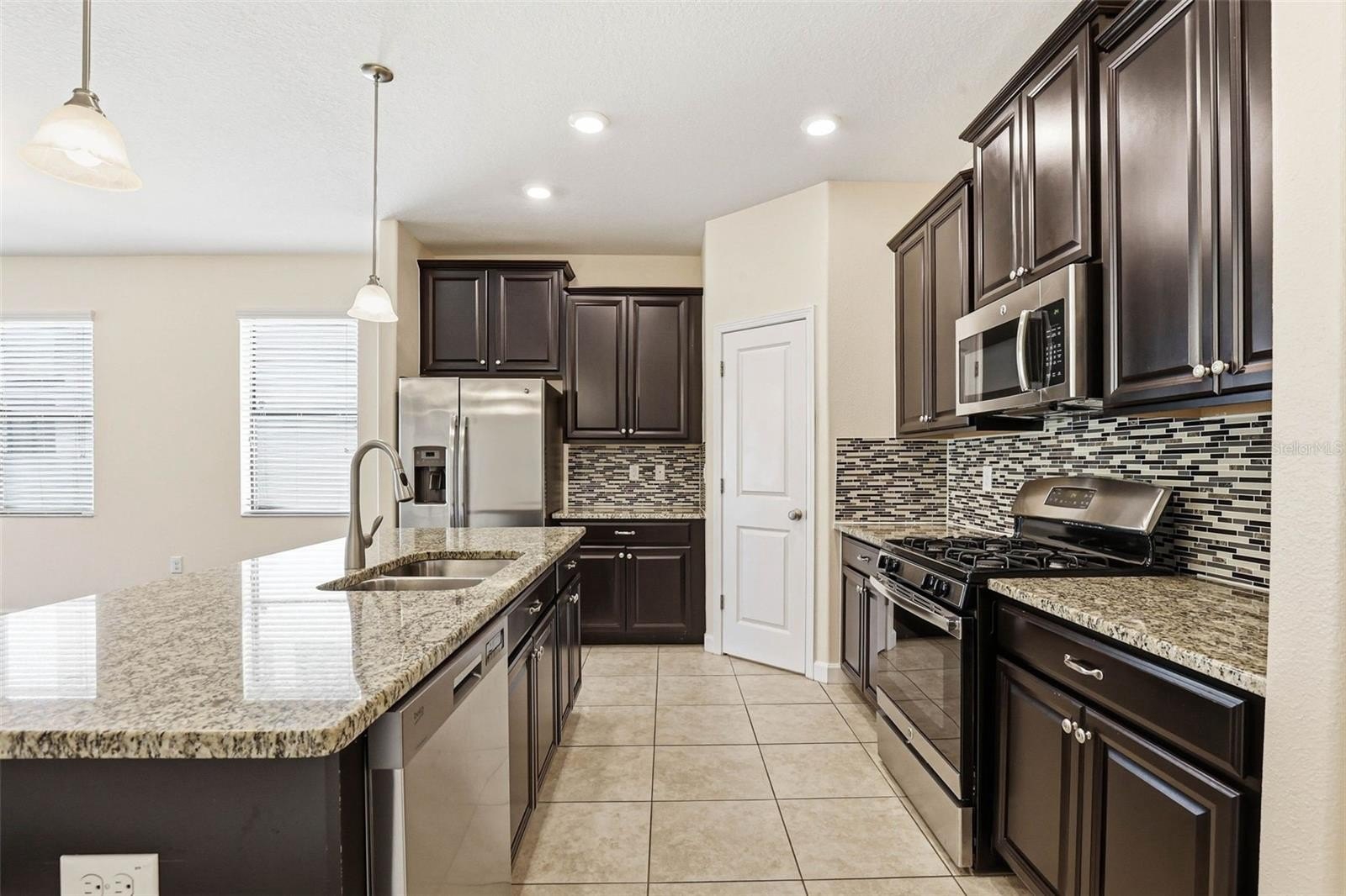 Images have been virtually staged for illustrative purposes. Move-In Ready! Welcome to this charming 3-bedrooms, 2-bathrooms home located in the desirable Connerton Subdivision, A Master Planned Community. As you arrive to the property, you’ll appreciate the inviting curb appeal and the large tiled front porch, the perfect spot to relax and enjoy the Florida lifestyle. Enter into the foyer with a versatile front room to your right that's ideal as a home office, formal dining room, or a flex space to fit your lifestyle. The home opens to a beautifully designed open-concept kitchen and living area, creating the perfect space for everyday living and entertaining. The well-appointed kitchen features an oversized island, granite countertops, solid dark wood cabinetry, a spacious pantry, a natural gas range and stainless steel appliances. The kitchen flows seamlessly into the casual dining area and comfortable living room with laminate flooring throughout offering a warm and connected living space. You notice the The primary suite is conveniently located to rear and offers privacy with the large walk in closet and the ensuite bath featuring: dual sinks, a spacious walk-in shower, a garden tub, and a separate water closet. Step outside to the fully fenced backyard, which provides plenty of room to add a pool, a garden, or outdoor entertaining space. Just off the garage entry, you’ll find the laundry room with washer and dryer that conveys with this purchase for added convenience. Additional upgrades include a water softener system, insulated garage door, mounted A/C unit in the garage, and overhead storage shelving. Life in Connerton offers the perfect balance of natural beauty and resort-style amenities, surrounded by miles of preserved landscapes, scenic walking and biking trails, lakes, and wetlands. Life in Connerton offers the perfect balance of natural beauty and resort-style amenities, surrounded by miles of preserved landscapes, scenic walking and biking trails, lakes, and wetlands. Residents enjoy access to exceptional community features including a resort-style pool, heated lap pool, splash park, fitness center, Connerton Café, Kidz Zone, beach volleyball, basketball and tennis & pickle ball courts, along with lots of activities for the whole family. This golf cart-friendly community also features low HOA and CDD fees, making it an ideal place to enjoy both comfort and convenience. Property within in minutes of the Suncoast Highway and Interstate 75. Schedule your private showing today and discover the vibrant lifestyle Connerton has to offer!