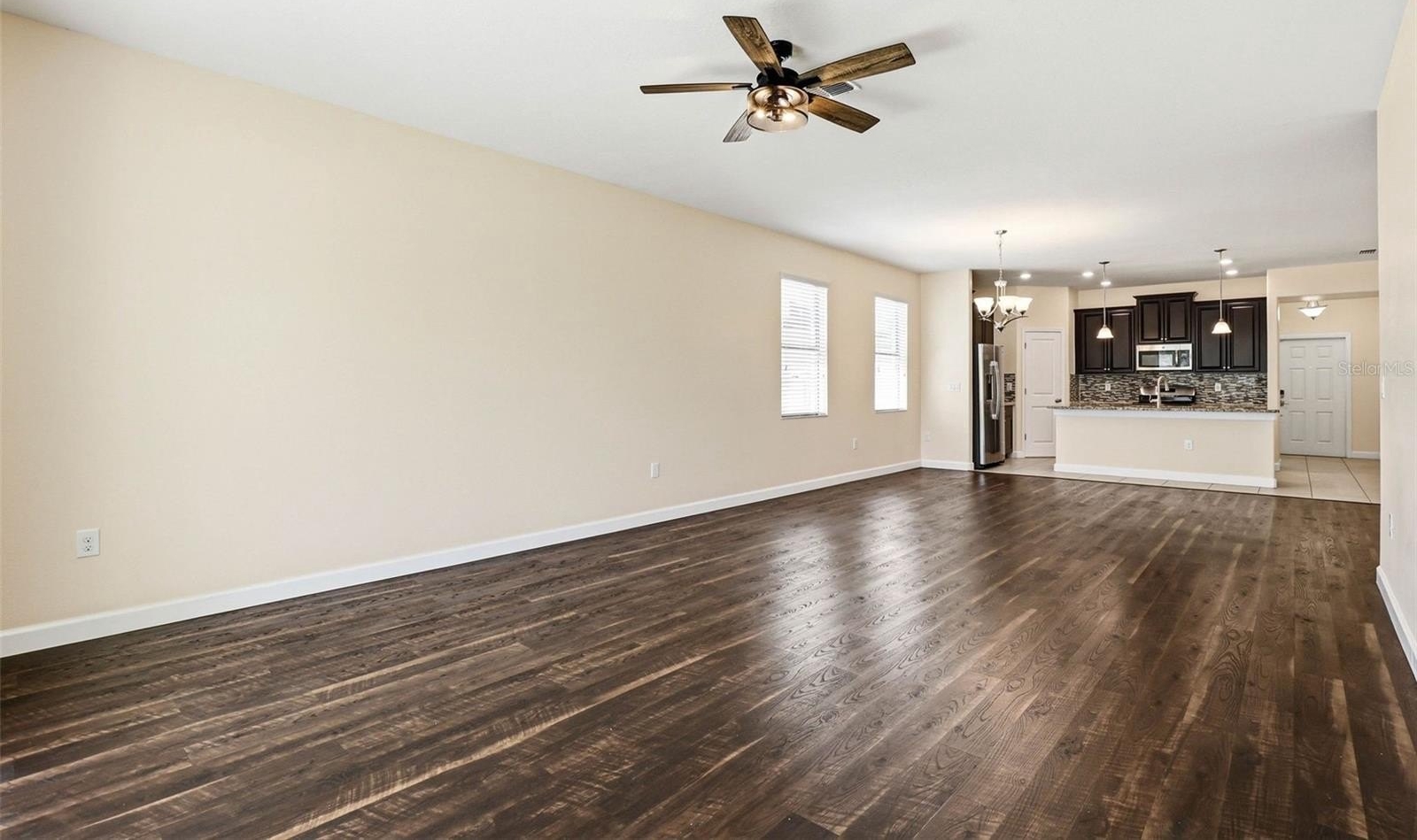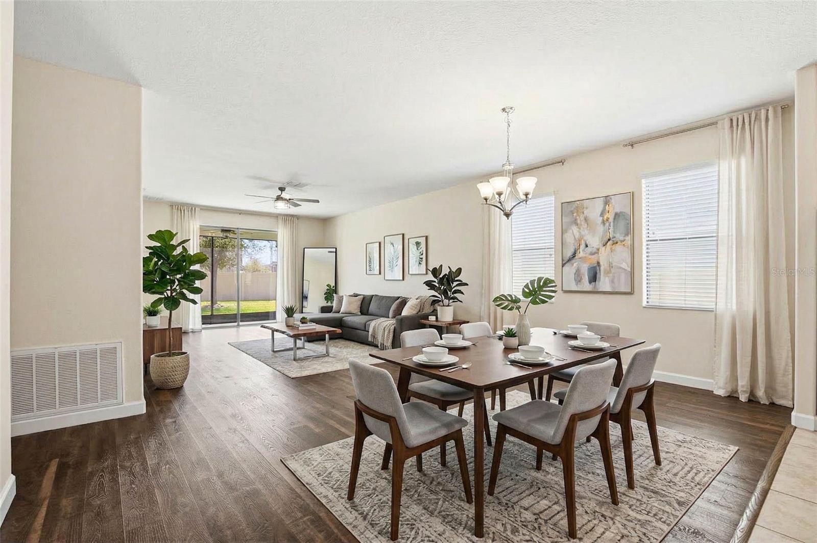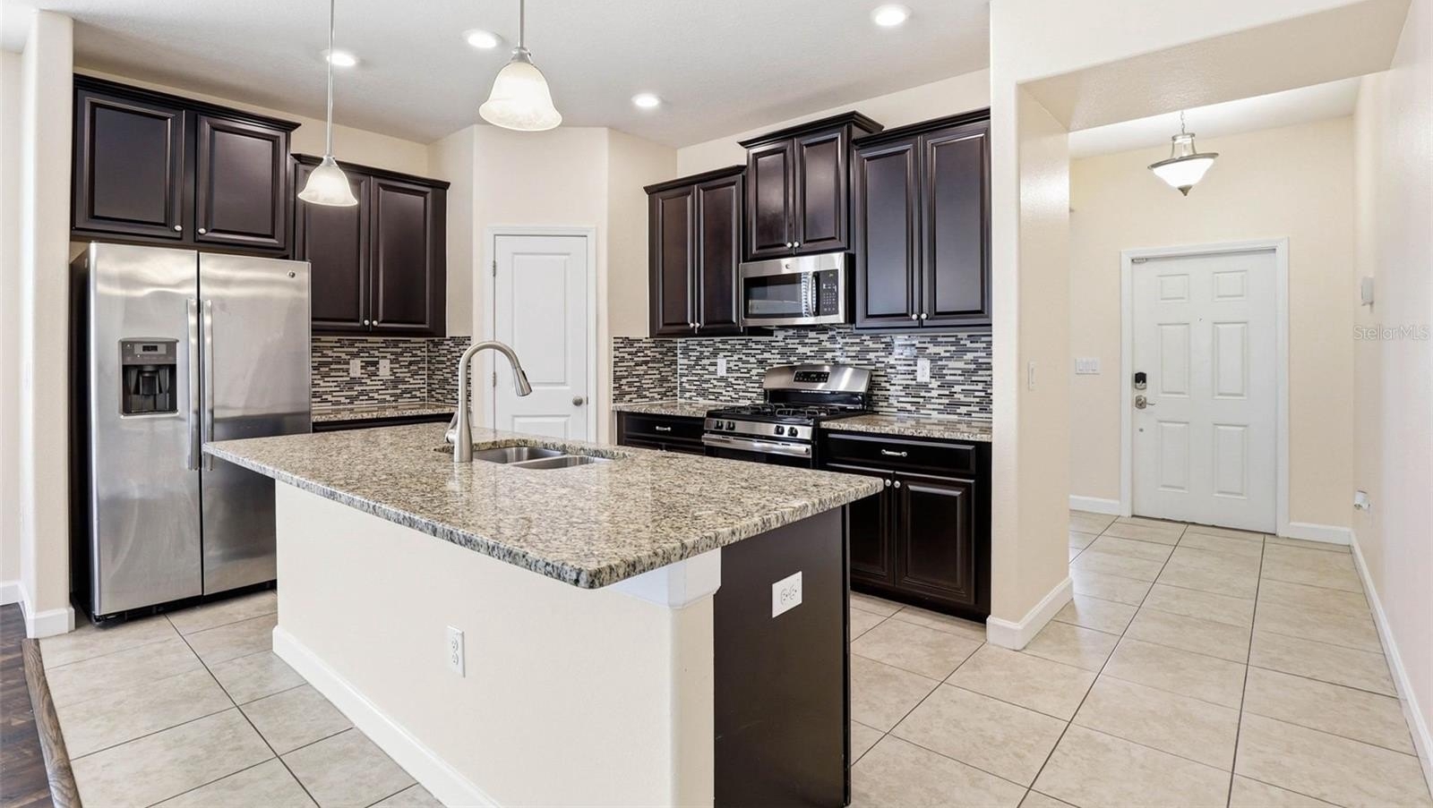Images have been virtually staged for illustrative purposes. Move-In Ready! Welcome to this charming 3-bedrooms, 2-bathrooms home located in the desirable Connerton Subdivision, A Master Planned Community. As you arrive to the property, you’ll appreciate the inviting curb appeal and the large tiled front porch, the perfect spot to relax and enjoy the Florida lifestyle. Enter into the foyer with a versatile front room to your right that's ideal as a home office, formal dining room, or a flex space to fit your lifestyle. The home opens to a beautifully designed open-concept kitchen and living area, creating the perfect space for everyday living and entertaining. The well-appointed kitchen features an oversized island, granite countertops, solid dark wood cabinetry, a spacious pantry, a natural gas range and stainless steel appliances. The kitchen flows seamlessly into the casual dining area and comfortable living room with laminate flooring throughout offering a warm and connected living space. You notice the The primary suite is conveniently located to rear and offers privacy with the large walk in closet and the ensuite bath featuring: dual sinks, a spacious walk-in shower, a garden tub, and a separate water closet. Step outside to the fully fenced backyard, which provides plenty of room to add a pool, a garden, or outdoor entertaining space. Just off the garage entry, you’ll find the laundry room with washer and dryer that conveys with this purchase for added convenience. Additional upgrades include a water softener system, insulated garage door, mounted A/C unit in the garage, and overhead storage shelving. Life in Connerton offers the perfect balance of natural beauty and resort-style amenities, surrounded by miles of preserved landscapes, scenic walking and biking trails, lakes, and wetlands. Life in Connerton offers the perfect balance of natural beauty and resort-style amenities, surrounded by miles of preserved landscapes, scenic walking and biking trails, lakes, and wetlands. Residents enjoy access to exceptional community features including a resort-style pool, heated lap pool, splash park, fitness center, Connerton Café, Kidz Zone, beach volleyball, basketball and tennis & pickle ball courts, along with lots of activities for the whole family. This golf cart-friendly community also features low HOA and CDD fees, making it an ideal place to enjoy both comfort and convenience. Property within in minutes of the Suncoast Highway and Interstate 75. Schedule your private showing today and discover the vibrant lifestyle Connerton has to offer!