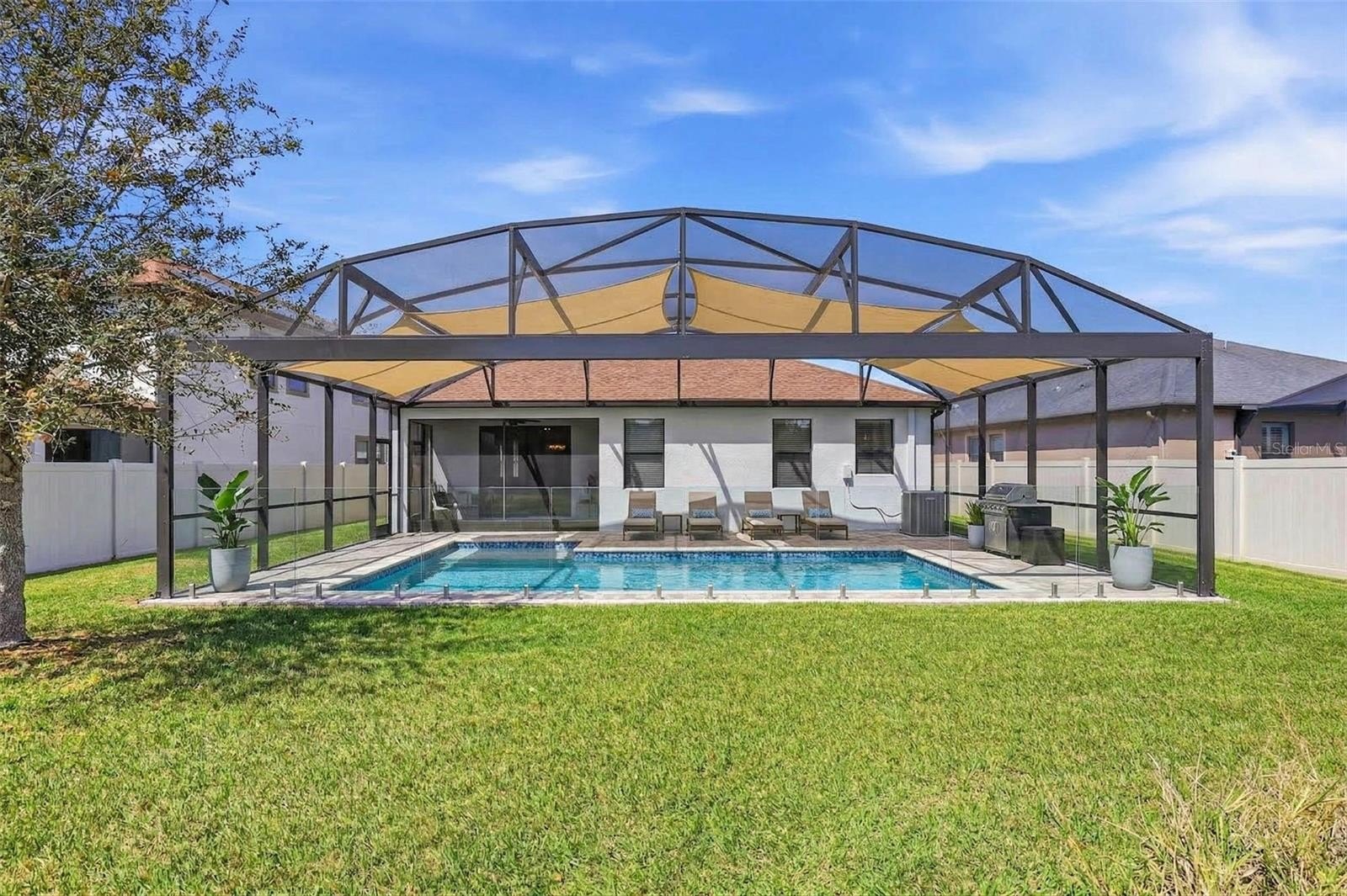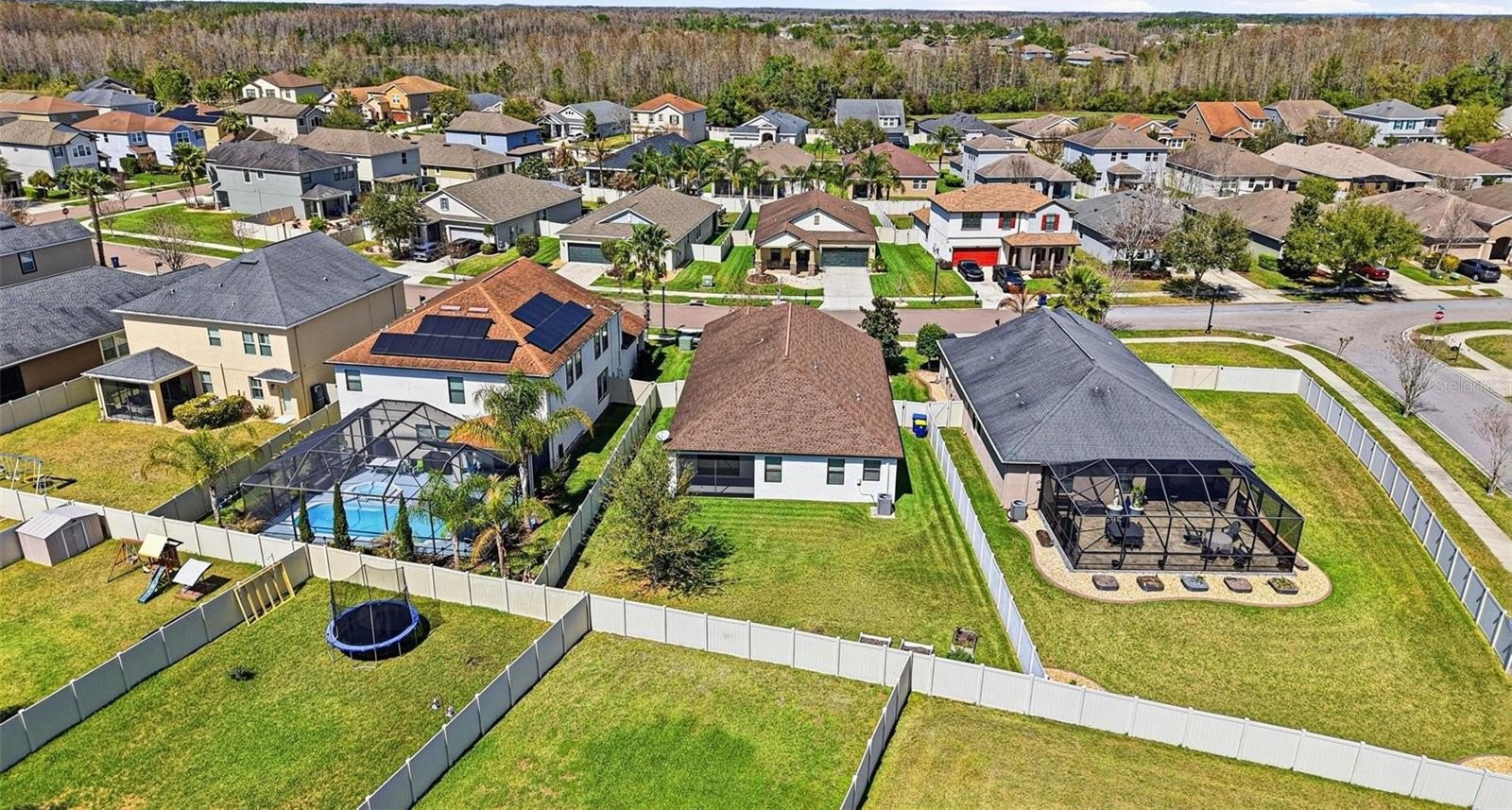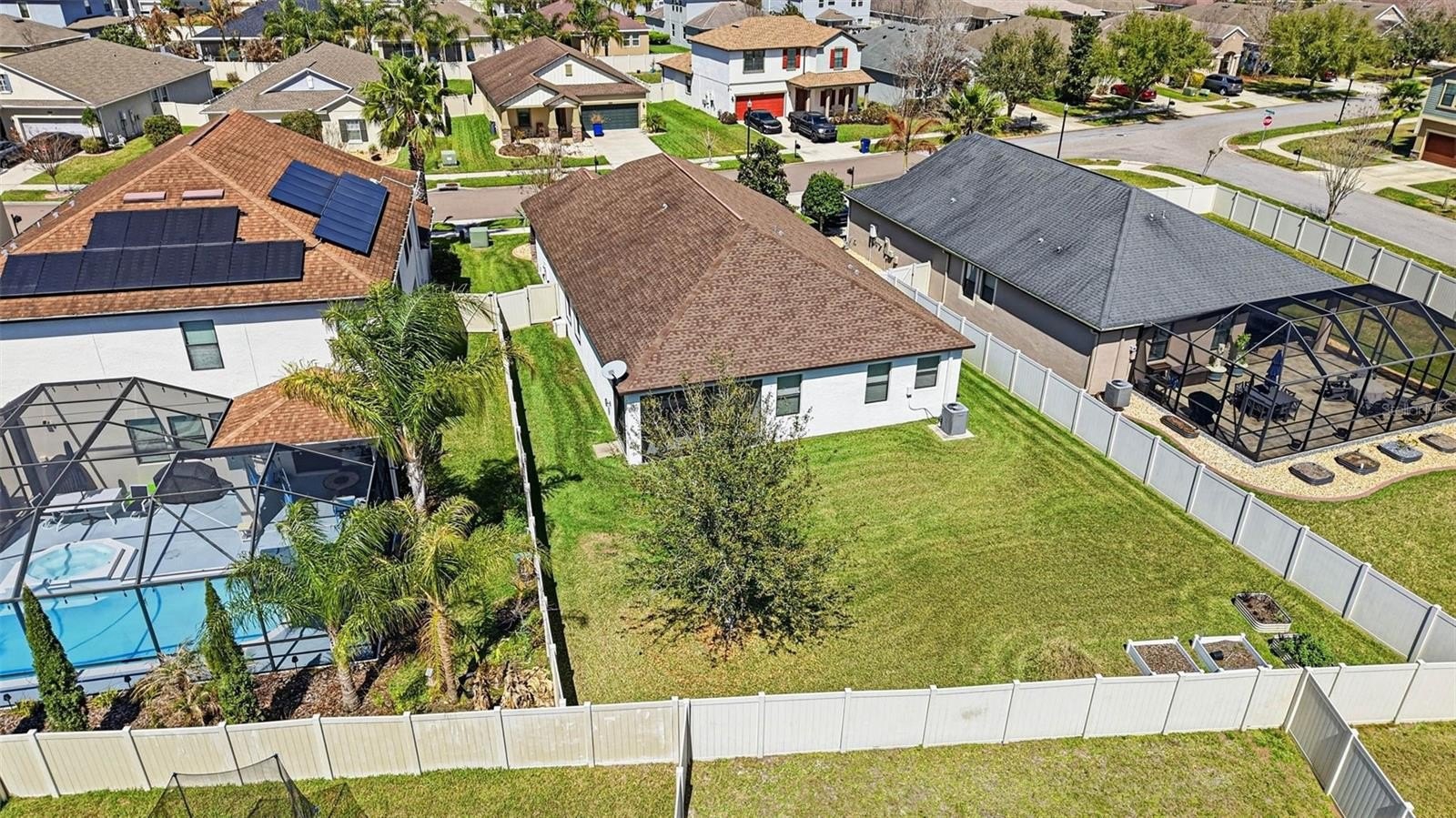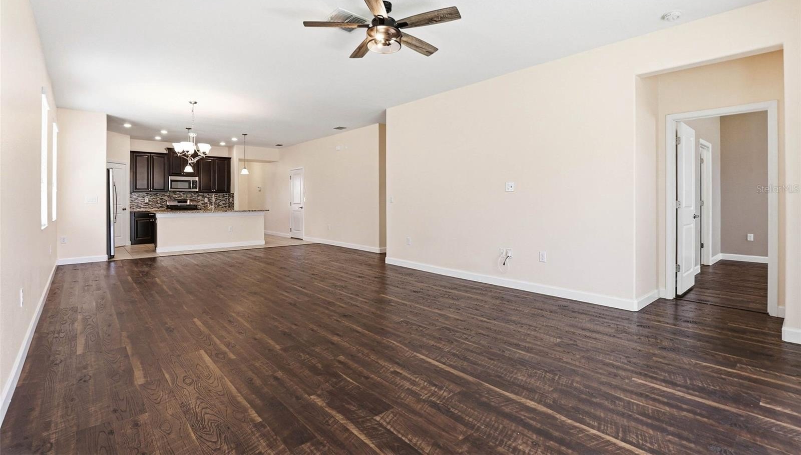 Images have been virtually staged for illustrative purposes. Move-In Ready! Welcome to this charming 3-bedrooms, 2-bathrooms home located in the desirable Connerton Subdivision, A Master Planned Community. As you arrive to the property, you’ll appreciate the inviting curb appeal and the large tiled front porch, the perfect spot to relax and enjoy the Florida lifestyle. Enter into the foyer with a versatile front room to your right that's ideal as a home office, formal dining room, or a flex space to fit your lifestyle. The home opens to a beautifully designed open-concept kitchen and living area, creating the perfect space for everyday living and entertaining. The well-appointed kitchen features an oversized island, granite countertops, solid dark wood cabinetry, a spacious pantry, a natural gas range and stainless steel appliances. The kitchen flows seamlessly into the casual dining area and comfortable living room with laminate flooring throughout offering a warm and connected living space. You notice the The primary suite is conveniently located to rear and offers privacy with the large walk in closet and the ensuite bath featuring: dual sinks, a spacious walk-in shower, a garden tub, and a separate water closet. Step outside to the fully fenced backyard, which provides plenty of room to add a pool, a garden, or outdoor entertaining space. Just off the garage entry, you’ll find the laundry room with washer and dryer that conveys with this purchase for added convenience. Additional upgrades include a water softener system, insulated garage door, mounted A/C unit in the garage, and overhead storage shelving. Life in Connerton offers the perfect balance of natural beauty and resort-style amenities, surrounded by miles of preserved landscapes, scenic walking and biking trails, lakes, and wetlands. Life in Connerton offers the perfect balance of natural beauty and resort-style amenities, surrounded by miles of preserved landscapes, scenic walking and biking trails, lakes, and wetlands. Residents enjoy access to exceptional community features including a resort-style pool, heated lap pool, splash park, fitness center, Connerton Café, Kidz Zone, beach volleyball, basketball and tennis & pickle ball courts, along with lots of activities for the whole family. This golf cart-friendly community also features low HOA and CDD fees, making it an ideal place to enjoy both comfort and convenience. Property within in minutes of the Suncoast Highway and Interstate 75. Schedule your private showing today and discover the vibrant lifestyle Connerton has to offer!