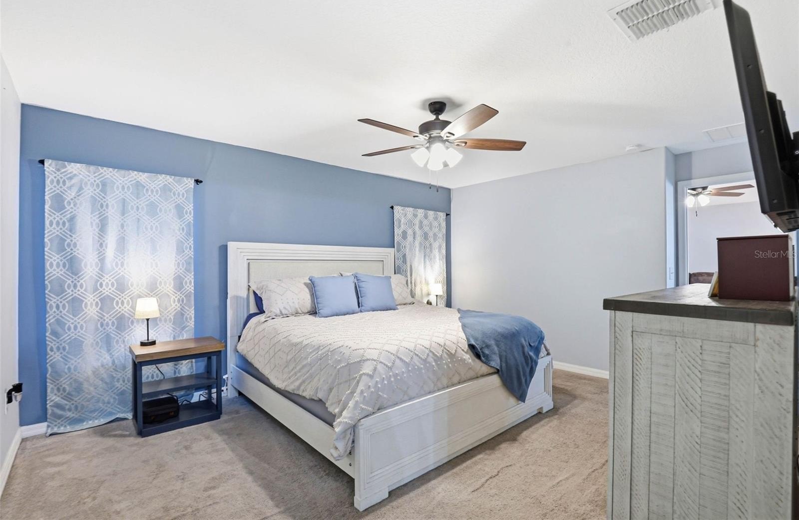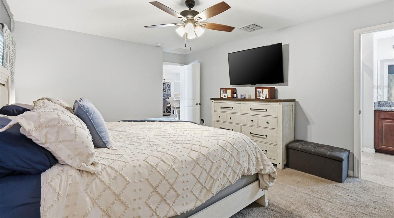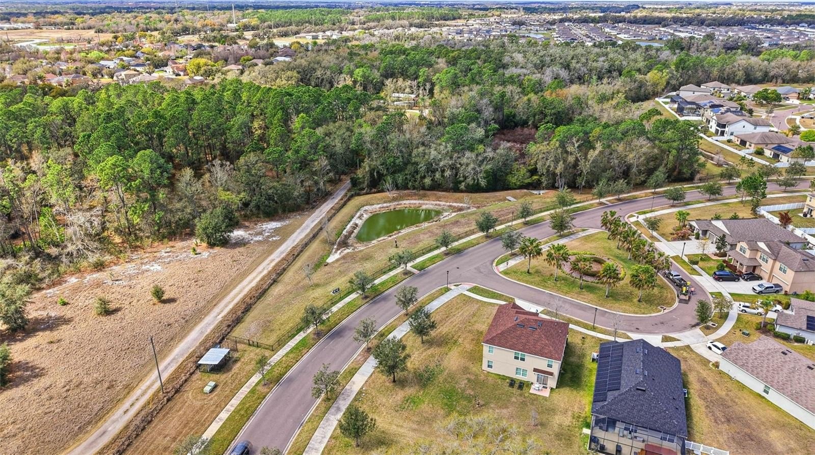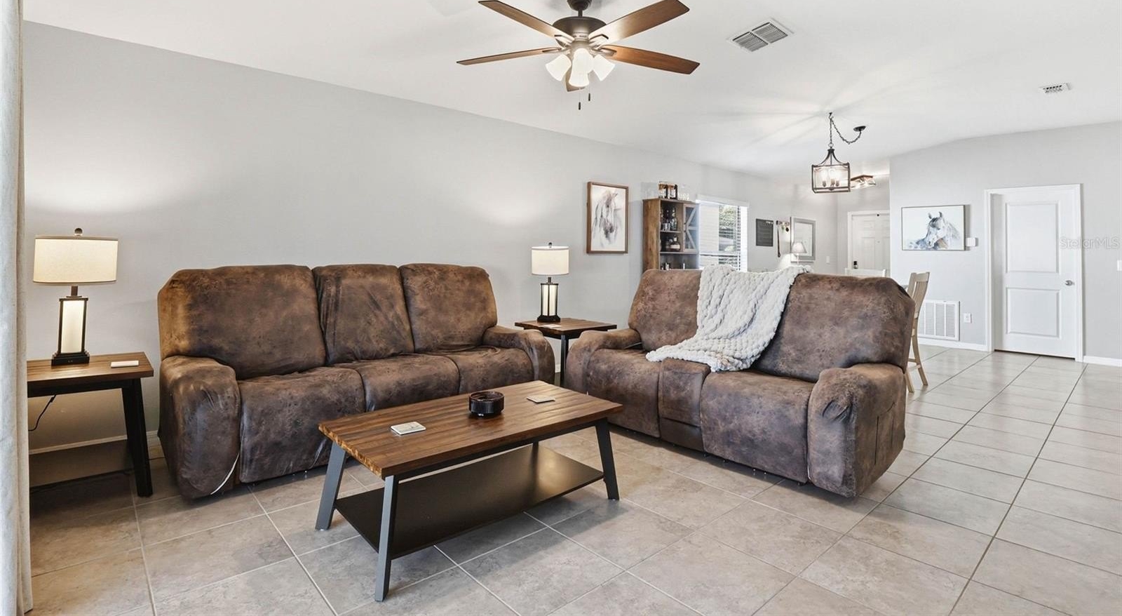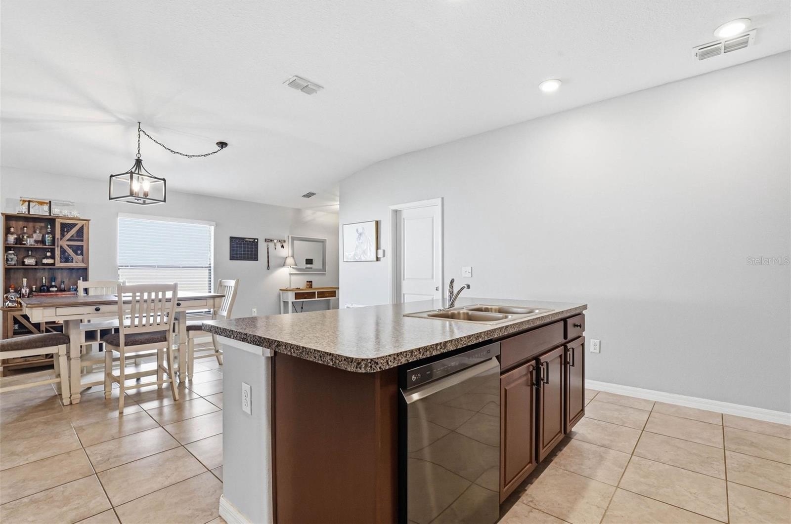 One or more photo(s) has been virtually staged. 6637 Wagon Trail Street, Zephyrhills, FL 33541 — Situated on a quiet cul-de-sac in the desirable Silverado Ranch community, this beautifully maintained Harrisburg model by Lennar offers 4 bedrooms, 2 bathrooms, 1,817 square feet of living space, a 2-car garage, and owned solar panels (2025) designed to help maximize energy efficiency. As you approach the residence, Florida-friendly landscaping, fresh mulch beds, and a six-zone irrigation system create a polished first impression. The driveway leads to a covered entryway accented with solar-powered lighting, setting the tone for the thoughtful details found throughout the home. Step inside to a welcoming foyer filled with natural light and enhanced by an updated lighting fixture. The foyer opens seamlessly into the dining room, where another updated fixture creates an inviting setting for gatherings and everyday meals. Designed with an open-concept layout, the dining area flows effortlessly into the heart of the home, the kitchen. The kitchen is both stylish and functional, featuring recessed lighting, solid wood cabinetry, porcelain tile flooring, stainless steel appliances, and a large center island perfect for meal preparation or casual seating. An eat-in kitchen space provides additional room for everyday dining and entertaining. Just off the kitchen is a conveniently located laundry room equipped with a 2024 washer and dryer and upper shelving for added storage and organization. Adjacent to the laundry room are three spacious secondary bedrooms, each offering expansive closets and flexible space for family, guests, or a home office. A full bathroom serves this wing of the home and includes an updated lighting fixture. On the opposite side of the residence, the living room provides a comfortable space for relaxation and entertaining. Sliding glass doors fill the room with natural light and provide direct access to the outdoor living area. Tucked just off the living room is the expansive primary suite, designed as a private retreat with views of the backyard. The suite features a large walk-in closet complete with a custom closet system and a built-in Liberty Safe. Rated for 1200 degrees for 60 minutes, EMP-resistant elec. lock, weighs 690 lbs empty, and measures 60.5"x42"x27.5". The primary ensuite bath offers recessed lighting, updated fixtures, a dual-sink solid wood vanity, and a glass walk-in shower. Outdoor living continues on the covered and screened rear patio, creating the perfect space to enjoy Florida’s year-round sunshine. The fully fenced backyard with durable PVC fencing offers plenty of room for outdoor activities, gardening, pets, or future enhancements. Notable features and updates include: Roof (2018), HVAC (4 ton) (2024) with updated ductwork and infrared lighting installed, Water Heater (2018), Refrigerator (2024), Range (2024), Dishwasher (2024), Disposal (2018), Microwave (2018), Updated ceiling fans, Vivint Security System, app-controlled garage door system, and owned solar panels (2025). Residents of Silverado Ranch enjoy low quarterly HOA fees of $223, which include basic internet and cable, along with access to community amenities such as a pool, playground, dog park, and scenic walking trails. Conveniently located with quick access to I-75, this home is just minutes from Downtown Zephyrhills and Downtown Dade City, multiple fitness centers, and approximately 20 minutes from premier shopping and dining at The Shops at Wiregrass and Tampa Premium Outlets.