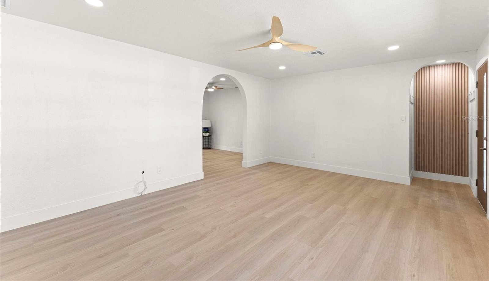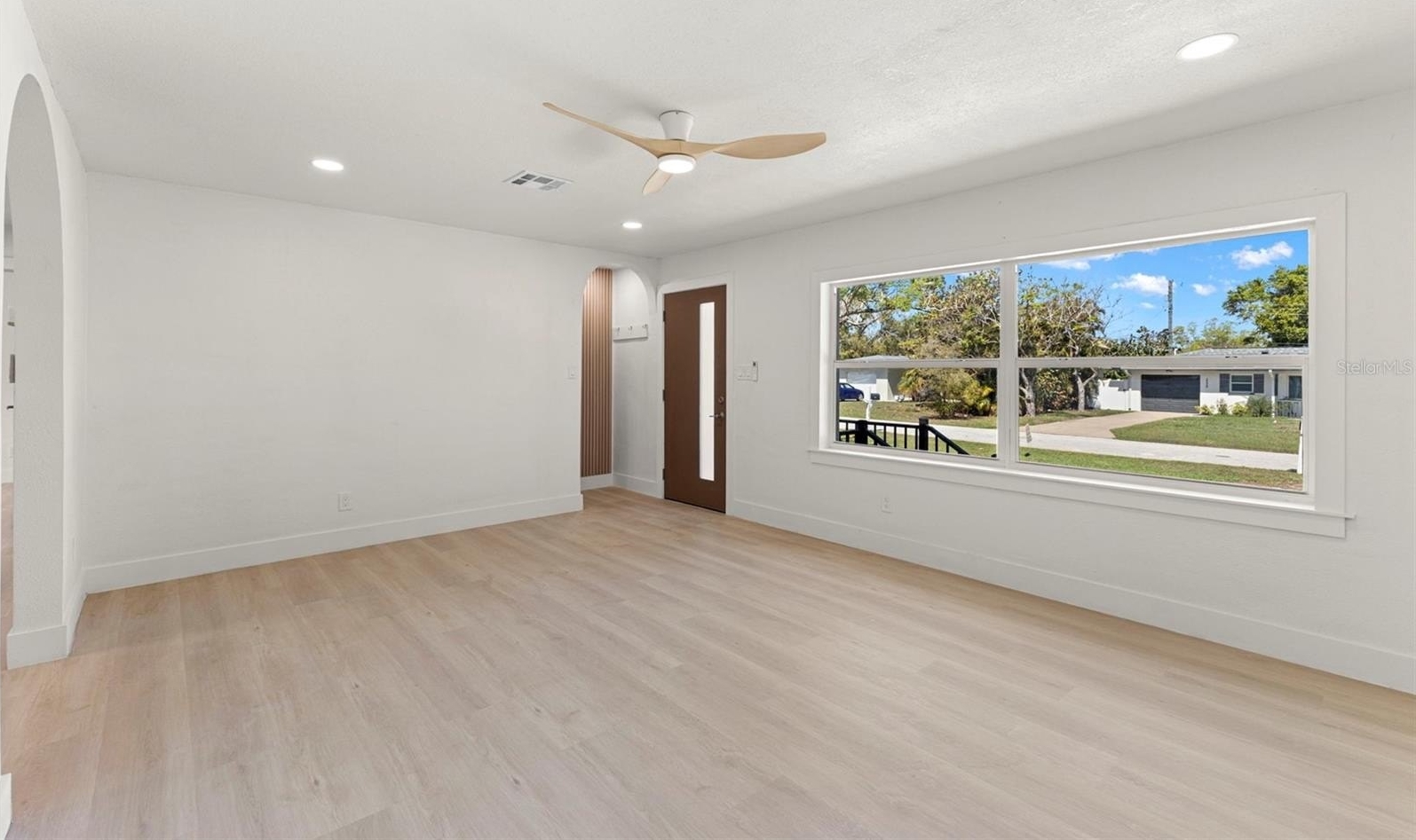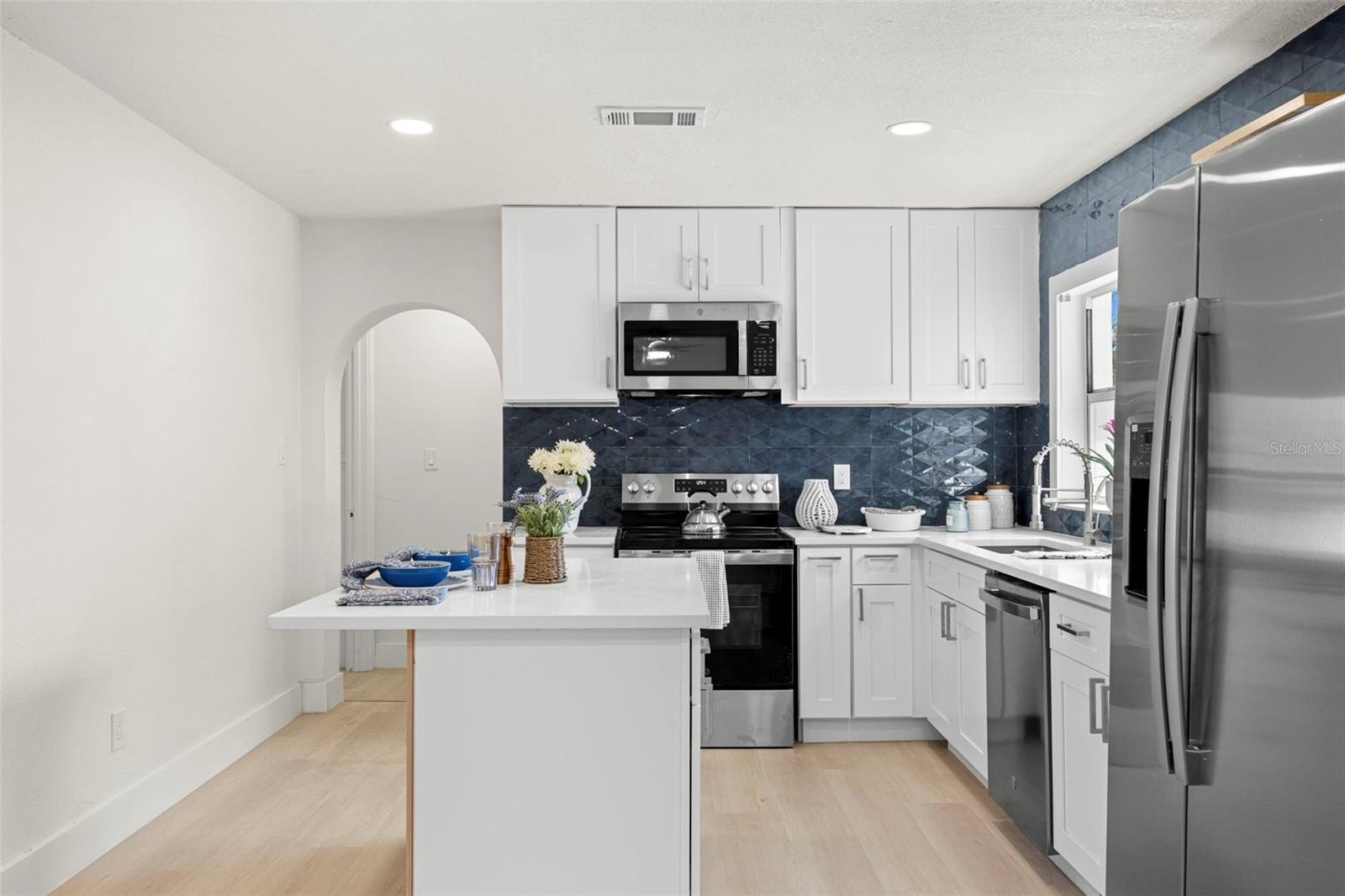 One or more photo(s) has been virtually staged. Welcome home to this completely updated three-bedroom, two-bath home in a fantastic Clearwater location, close to shopping, dining, beaches, and everything the area has to offer. Thoughtfully renovated from top to bottom, this home combines modern upgrades with charming architectural details, giving you the feel of a brand-new home with character. Beyond the beautiful cosmetic updates, this home has been extensively upgraded where it matters most. Major improvements include a brand-new roof, new electrical system, new plumbing, a new hot water heater, new paint throughout, new doors and hardware, and durable luxury vinyl plank flooring across the entire home. The electrical and plumbing upgrades also include a five-year transferable warranty, providing added peace of mind for the new owner. All kitchen appliances are brand new and come with a two-year warranty. Step through the front door into a light-filled, open-concept living space. Just inside the entry, you’ll notice a beautifully designed architectural alcove with enough space for a bench, shelves or more - creating the perfect drop zone for coats, bags, and shoes. Custom archways added throughout the home enhance the character and flow between rooms. Continue into the stunning kitchen and dining area, designed to be both stylish and functional. The kitchen features gorgeous quartz countertops, recessed lighting, soft-close white shaker cabinetry, and a striking blue designer tile backsplash that adds a pop of color and personality. Floating shelves complement the backsplash while offering display space, and the center island provides additional storage along with a convenient breakfast bar for casual dining. The kitchen is fully equipped with brand-new stainless steel appliances, including a side-by-side refrigerator, range, microwave, and dishwasher. To the right side of the home are two spacious guest bedrooms, both filled with natural light. The rear bedroom features a generously sized wall closet, while the front bedroom is larger and offers two wall closets for exceptional storage. These bedrooms share a beautifully updated full bathroom with a tub and shower combination. On the opposite side of the home, the private primary suite provides a relaxing retreat. The bedroom includes a walk-in closet and a completely remodeled en-suite bathroom featuring an oversized step-in shower and a stylish updated vanity. Just across the hall, you’ll find the convenient laundry room. At the rear of the home, a bright bonus room offers incredible flexibility. With windows on every wall, this sun-filled space overlooks the fully fenced backyard (fence is new too!) and can easily serve as a sunroom, home office, playroom, or additional living area. The yard has recently been seeded and is already beginning to grow into a lush outdoor space. The home is elevated on a crawlspace and connected to septic, adding to its functionality and efficiency. With all the major systems updated and thoughtful design touches throughout, this move-in-ready home offers modern comfort, style, and convenience in one of Clearwater’s most desirable locations. Come see it today and fall in love with everything this beautifully renovated home has to offer.