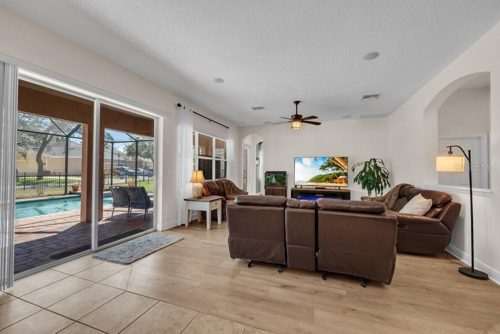 WESTBAY POOL HOME - Located in the heart of FishHawk Ranch’s highly desirable Garden District, this elegant WestBay Caladesi III pool home offers 5 bedrooms, 4 bathrooms, a 3-car garage, and 3,811 sq. ft. of thoughtfully designed living space. A private gated entrance and fully fenced yard welcome you to this spacious two-story home featuring oversized rooms and numerous upgrades, including a NEW ROOF (2025 with 10-year transferable warranty). A grand double-door entry opens to a formal foyer and dining room with volume ceilings, tile flooring, and 8-foot glass French doors leading to a large den—perfect for a home office or study. The gourmet kitchen is designed for both entertaining and everyday living with stainless steel appliances, gas cooktop, separate wall oven and microwave, granite countertops, a center prep island, and 42” cabinetry, while the breakfast nook and expansive family room overlook the covered lanai, sparkling pool, and large backyard through energy-efficient windows and sliding glass doors. A first-floor game room with adjacent full bath provides flexible living space and could easily serve as a sixth bedroom, guest suite, or mother-in-law suite. Upstairs, the impressive primary suite features double-door entry, a bright sitting area, and a luxurious bath with dual granite vanities, garden tub, walk-in shower, water closet, and two oversized walk-in closets. Four additional bedrooms, two full baths, and the laundry room complete the second floor. Recent improvements include new carpets, fresh interior and exterior paint, hot tub pump, pool timer, pool screens, pool heater, upstairs A/C, and a tankless water heater. Ideally located within walking distance to Park Square, the Aquatic Center, FishHawk Creek Elementary, shopping, and dining, residents enjoy world-class amenities including resort-style pools, nature trails, tennis and basketball courts, playgrounds, and top-rated A-rated schools in one of Tampa Bay’s most sought-after master-planned communities.