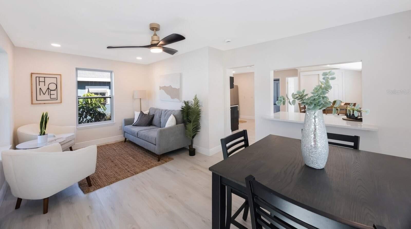 Welcome to a beautifully updated 2-bedroom 1 bathroom bungalow in the desirable Magnolia Heights neighborhood. Option to Buy property with Detached Garage as a Remodeled 324 sq ft ADU Studio with a full bathroom, kitchen, and separate laundry from main house. Architect Plans have already been done and currently owners are just waiting on Permits which will be done very soon. This property can be sold with The ADU fully done for 500k making the house a 3 bed 2 bath. Perfect for guests or live in one and rent out the other. Get this opportunity before it goes to market for a higher price. Overall the house blends modern updates with timeless charm, offering an inviting open floor plan and stylish finishes throughout. Step onto the cozy front porch, then walk into a bright and airy living area that seamlessly flows into a fully remodeled kitchen featuring quartz countertops, gold fixtures, stainless steel appliances, and a breakfast bar with extra cabinet space. The entire home boasts luxury vinyl flooring, providing both durability and elegance. The stunning bathroom is a true showstopper, with floor-to-ceiling tile, a sleek walk-in shower with glass doors, and a designer dresser vanity with a white countertop, all complemented by matching gold fixtures. This home is not just beautiful—it’s built to last! Enjoy peace of mind with hurricane-proof windows, 2018 Roof, 2017 A/C, and all New Electrical. Walk out into a Large screened-in patio perfect for relaxing or entertaining. There is a spacious yard as well with plenty of parking. Located just 5 minutes from 4th Street and 10 minutes from Downtown St. Pete, you’ll have easy access to top-rated restaurants, shopping, and entertainment. Don’t miss out on this beautifully upgraded home in one of St. Pete’s most desirable neighborhoods! Schedule your showing today!