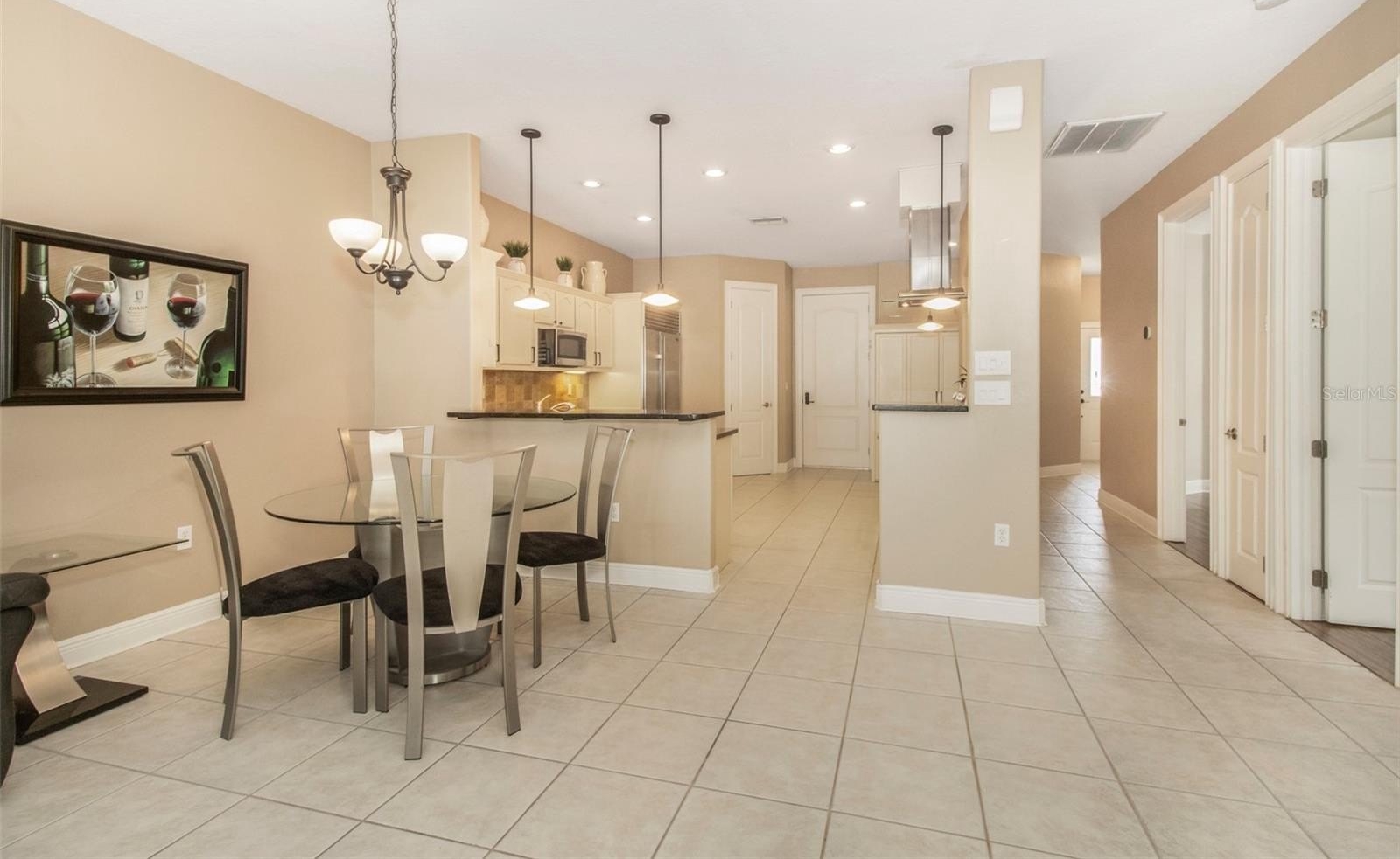 Welcome to 19331 Haskell Place in Land O' Lakes, a beautifully maintained 3-bedroom, 2-bath home offering 1,626 square feet of comfortable living inside a desirable gated community. With modern upgrades, stylish finishes, and resort-style amenities nearby, this home delivers the perfect balance of comfort and convenience. Step inside to find an inviting interior featuring neutral paint tones, elegant 8-foot doors, and durable flooring throughout with no carpet, creating a clean and cohesive look that’s easy to maintain. The open layout makes everyday living and entertaining feel effortless. The kitchen is a standout feature, equipped with stainless steel appliances including a premium Sub-Zero refrigerator, a wine fridge, and a large pantry that provides plenty of storage. Whether you're preparing a weeknight dinner or hosting friends, this space is designed to handle it all with style. The primary suite offers a relaxing retreat, complete with a custom closet system designed for maximum organization and functionality. Two additional bedrooms provide flexibility for guests, a home office, or growing households. Enjoy Florida living year-round in the private screened and caged lanai, perfect for morning coffee, evening relaxation, or outdoor dining while enjoying the breeze. Recent upgrades add extra peace of mind, including a new AC system installed in 2025 and a gas water heater replaced in 2023. Residents of the community enjoy access to exceptional amenities, including a clubhouse, resort-style pool, splash pad, fitness center, tennis courts, pickleball courts, and basketball courts, creating opportunities for recreation and connection just minutes from home. Conveniently located close to shopping, dining, and everyday essentials, this home offers both tranquility and accessibility in one of the area's most desirable settings.