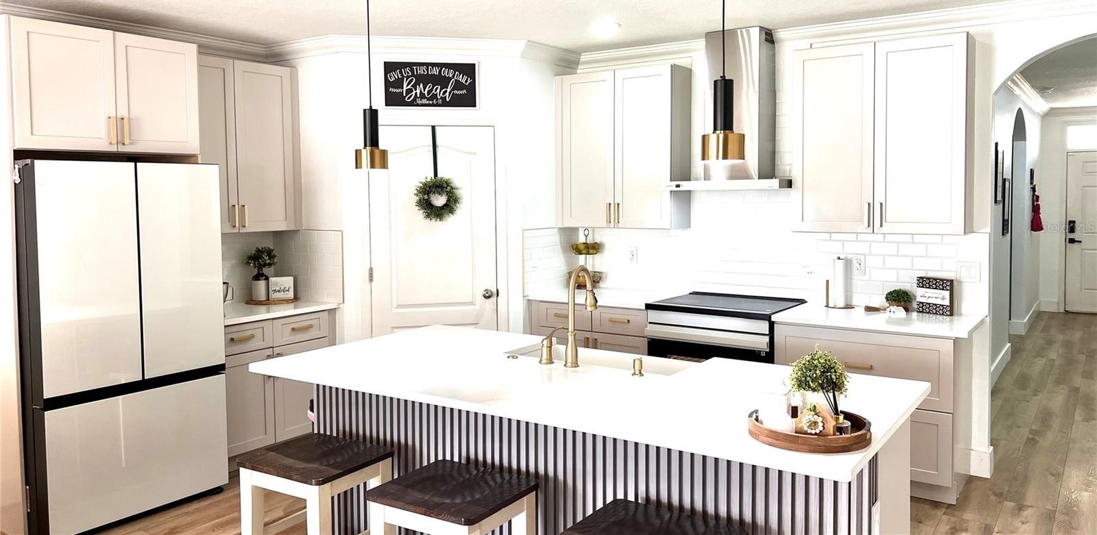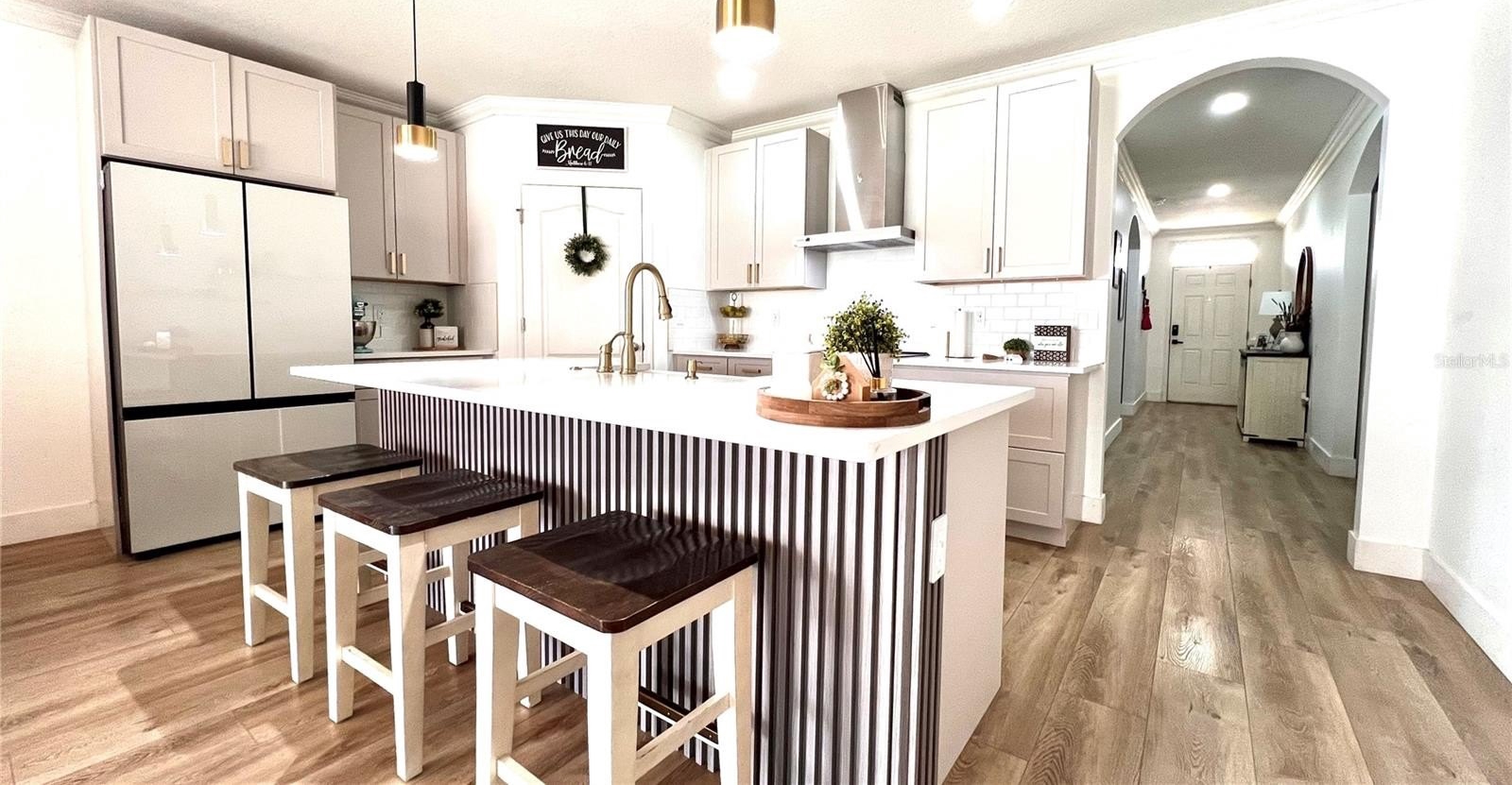 Beautifully upgraded home located in the heart of Orange City offering comfort, flexibility, and impressive outdoor living space. This well-maintained property features an open and bright layout with new luxury vinyl flooring throughout, elegant crown molding, and a fully renovated kitchen with brand-new cabinetry, modern finishes, and high-end appliances included.