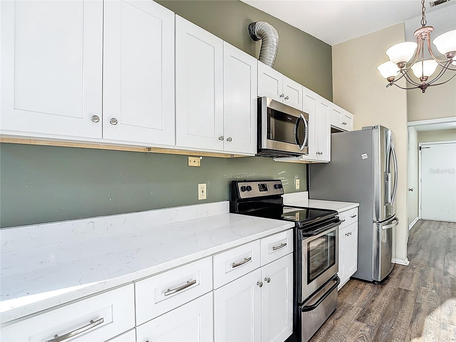 The heart of the home is the updated kitchen, boasting sleek stainless steel appliances and durable Corian counters, perfect for both everyday meals and entertaining. Outdoors, enjoy your own private oasis on this spacious corner lot with a screen-enclosed inground pool, a covered patio for shaded relaxation, and a fully fenced rear yard offering privacy and space for play or gardening. Recent updates provide exceptional peace of mind, including a brand-new 2025 roof, 2025 air conditioning system, and 2022 water heater.
