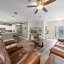 Additional highlights include a 2021 roof with a transferable lifetime warranty, 2017 A/C (10-yr warranty), a 2020 repiped plumbing system (25-yr warranty), and 2017 quartz countertops in the kitchen with refaced cabinets. Natural light flows through solar tubes, and the garage offers newer screen doors, a speckled/sealed floor, and modern finishes. Outdoor living is enhanced by a sealed decorative driveway and well-maintained landscaping.