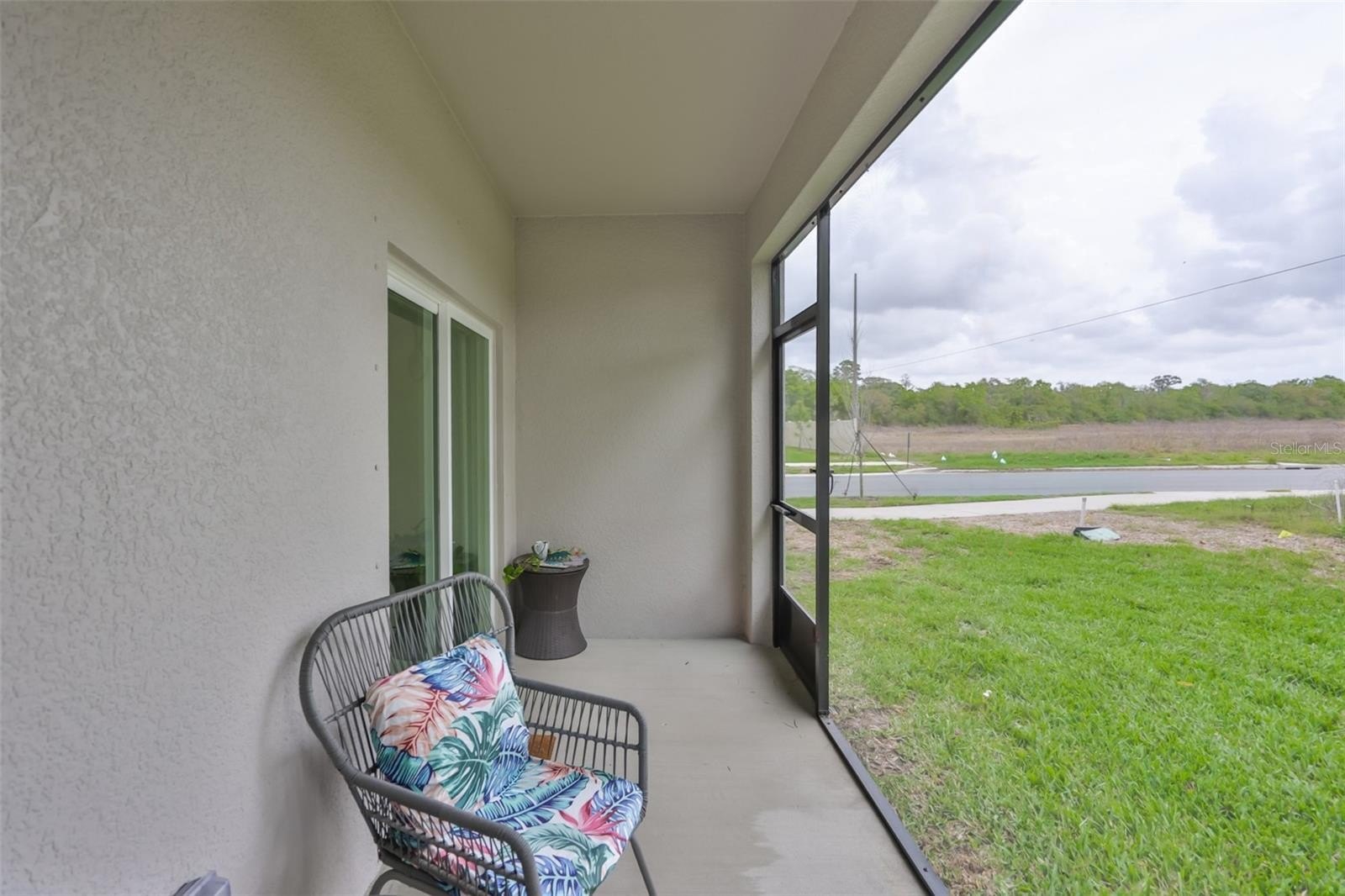 A welcoming foyer leads into an open-concept living and dining area filled with natural light, enhanced by the additional windows that come with an end unit. Sliding glass doors open to a screened lanai—perfect for enjoying morning coffee or relaxing evenings outdoors.
