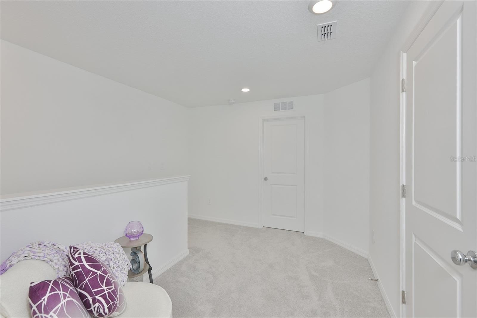 Upstairs, the spacious primary suite offers a peaceful retreat with a large walk-in closet and an elegant en-suite bath featuring dual vanities with quartz countertops and a beautifully tiled walk-in shower. A versatile loft provides additional living space ideal for a home office, media room, or cozy lounge area. The second bedroom also features a walk-in closet and a private en-suite bath with tub and shower combination, creating a comfortable space for guests or family.