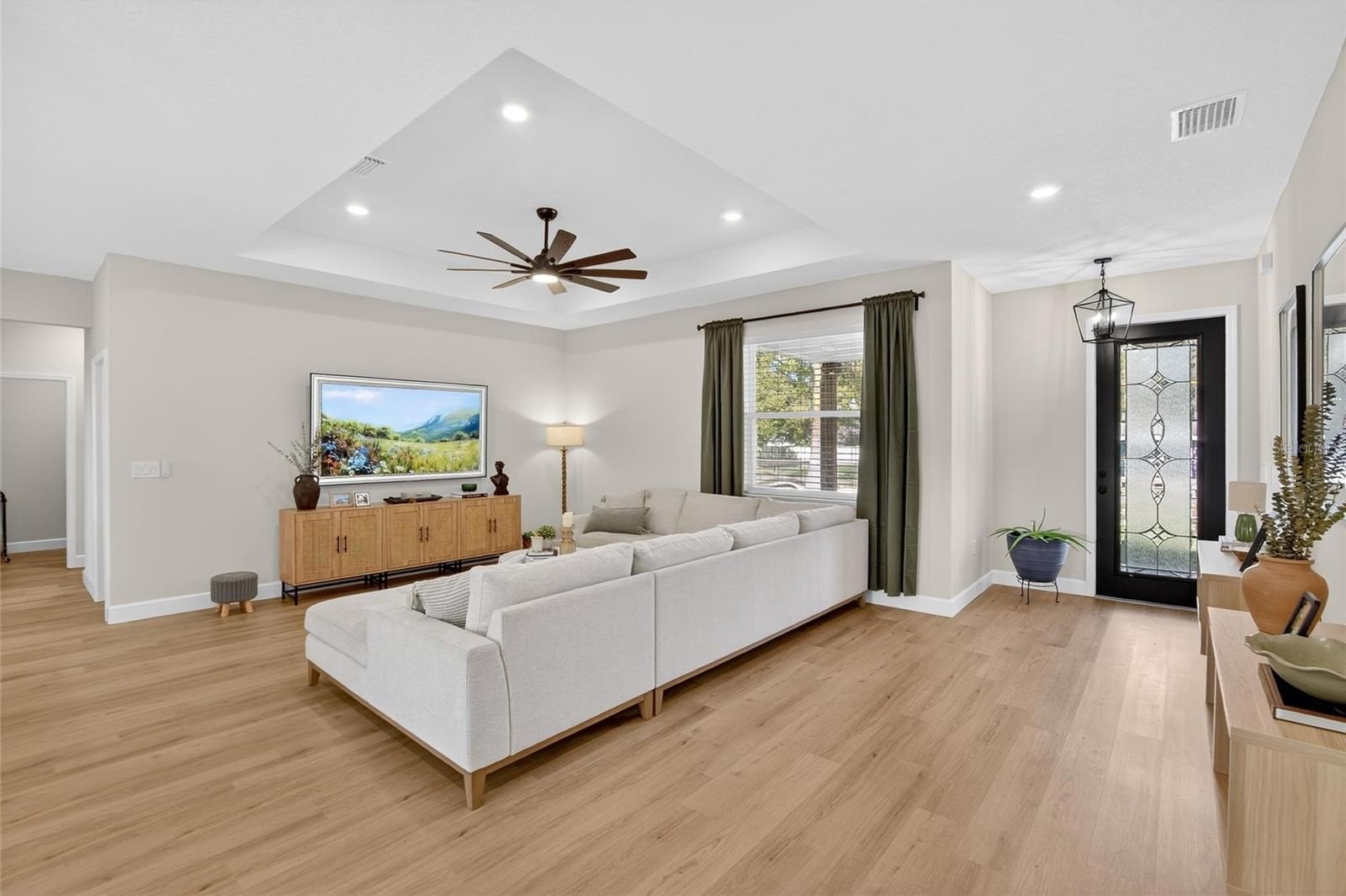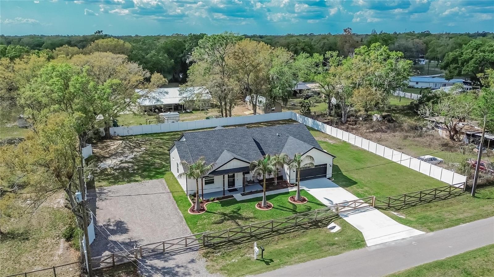 Welcome to your private half-acre retreat in Plant City! Built just 2 years ago, this move-in ready home offers modern living with space, privacy, and endless possibilities. Step inside to a bright open-concept layout perfect for entertaining, with a large oversized pantry that can easily function as a butler’s pantry, coffee station, prep kitchen, or incredible storage space. The property has been thoughtfully upgraded with front fencing for added privacy, gutters, whole-home water filtration, window blinds, and a camera security system. Outside you’ll love the gorgeous landscaping with irrigation and the convenience of two driveways, including a new crushed asphalt driveway with plenty of room for guests and extra vehicles. Bring your RV, boat, trailers, and all the toys—this property has the space! With a half-acre lot, there’s also potential for a detached garage, workshop, or future ADU. Relax on the porch and enjoy peaceful surroundings, where you’ll hear birds chirping and chickens singing in this quiet neighborhood filled with nature. If you’re looking for a newer home with space to create your own oasis, this is it.